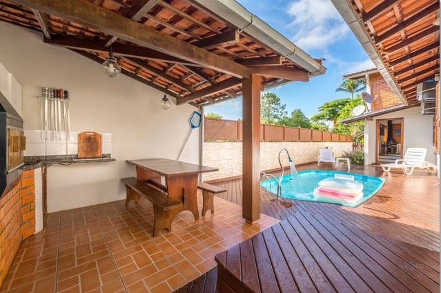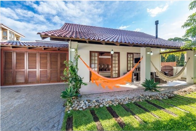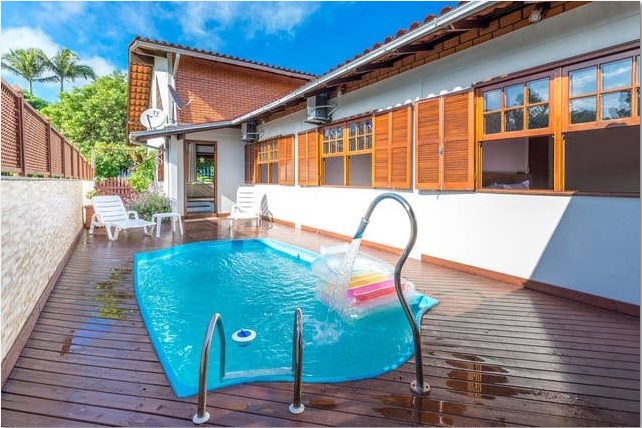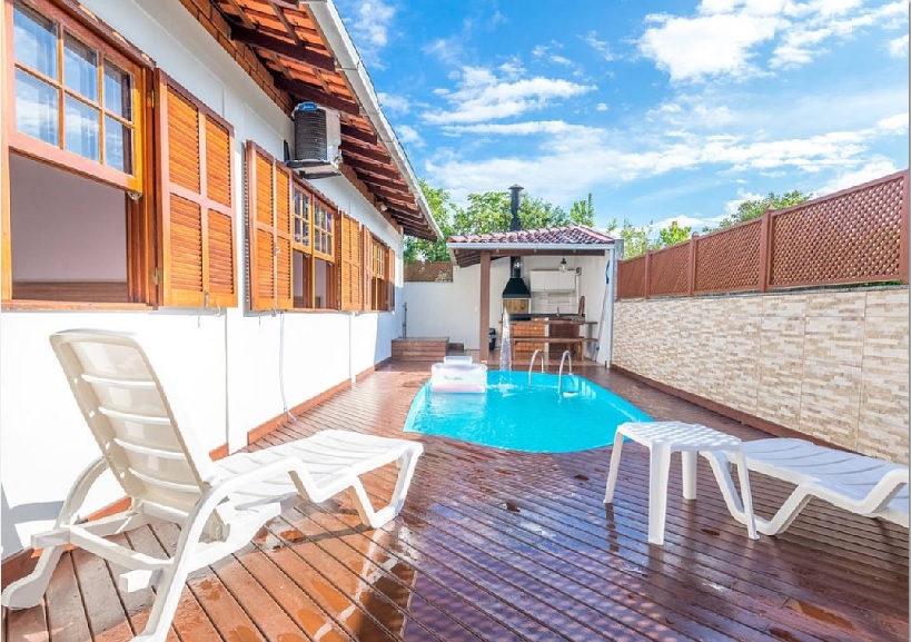 Excelente localização. Casa com 4 dormitórios sendo 2 suítes, 4 ar condicionados, hidromassagem, piscina, churrasqueira, internet WIFI, TV a cabo, netflix, apple TV, redes na varanda, 2 bikes (adulto e infantil), máquina de lavar roupa e 2 vagas de garagem.