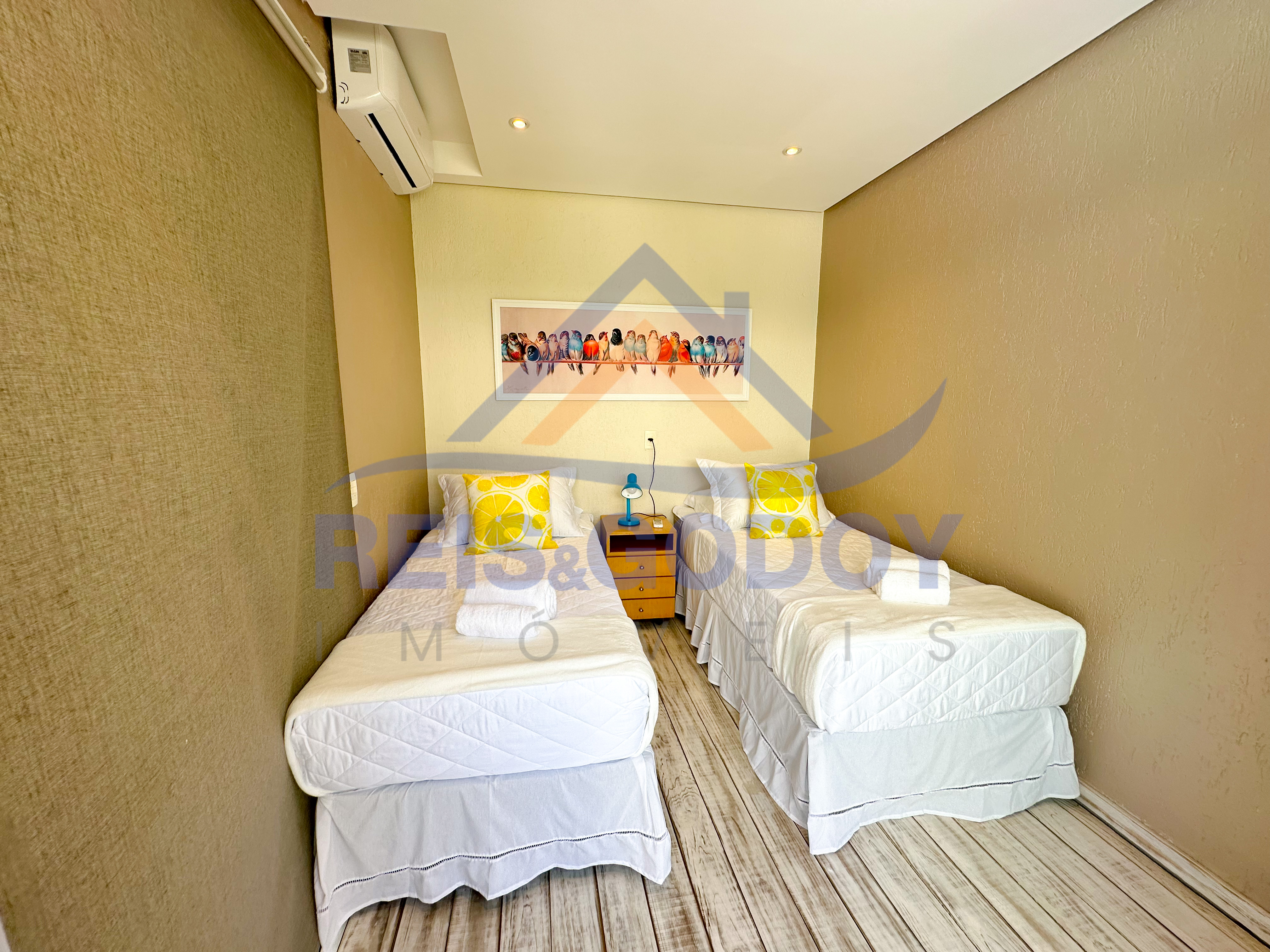 Disposição das camas: 3 camas de casal e 3 camas de solteiro.