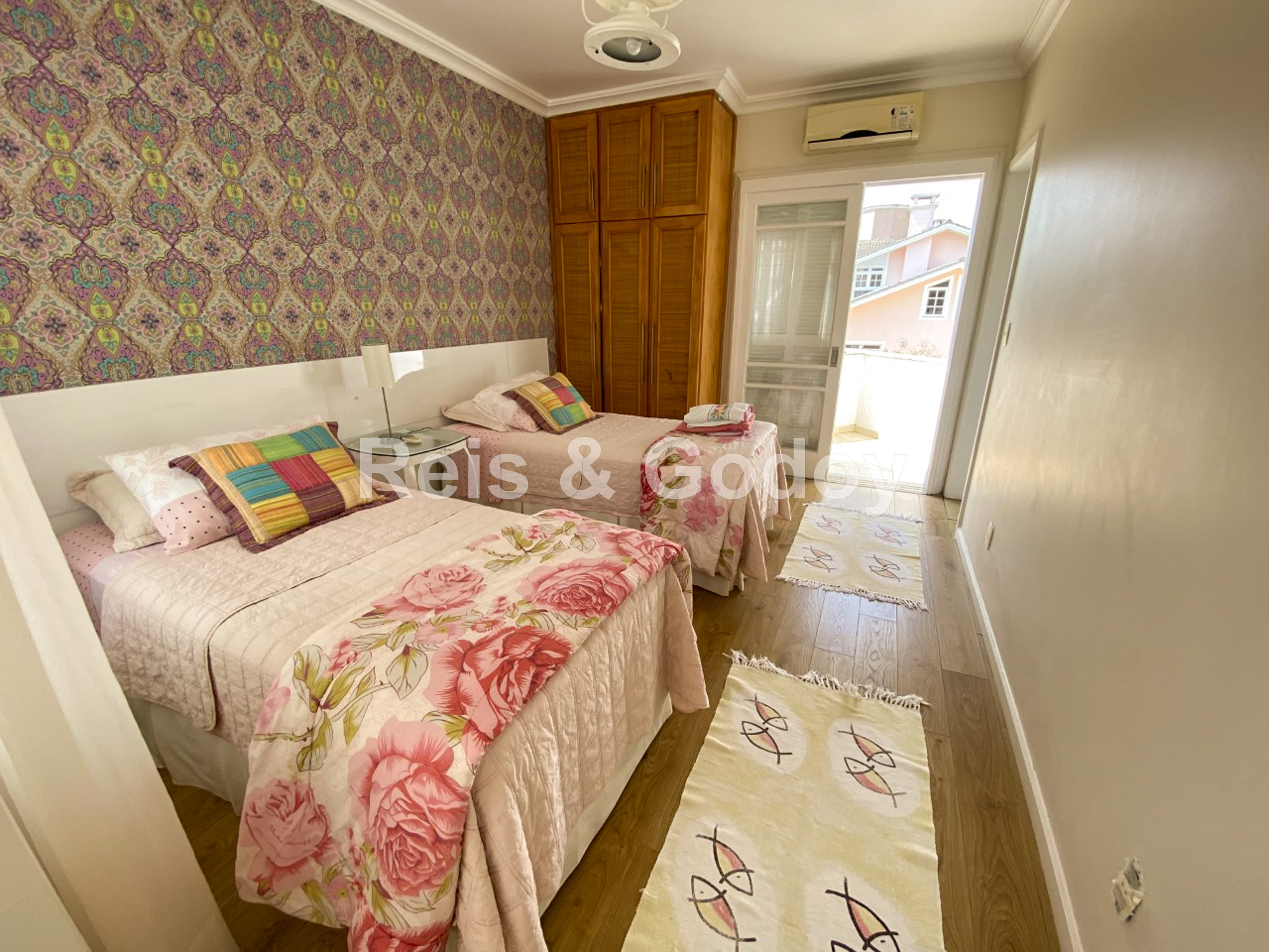Disposição das camas: 3 camas de casal, 2 camas de solteiro e 1 cama de solteiro na dependência.
