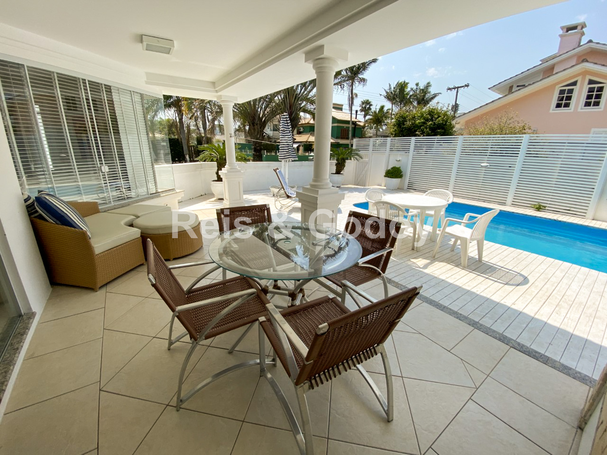 Ar Condicionado, Piscina, TV a cabo, Internet WIFI, Churrasqueira, Hidromassagem, Microondas, Geladeira, Fogão, Forno, Máquina de Lavar Roupa, Máquina de Secar Roupa, Alarme, Freezer