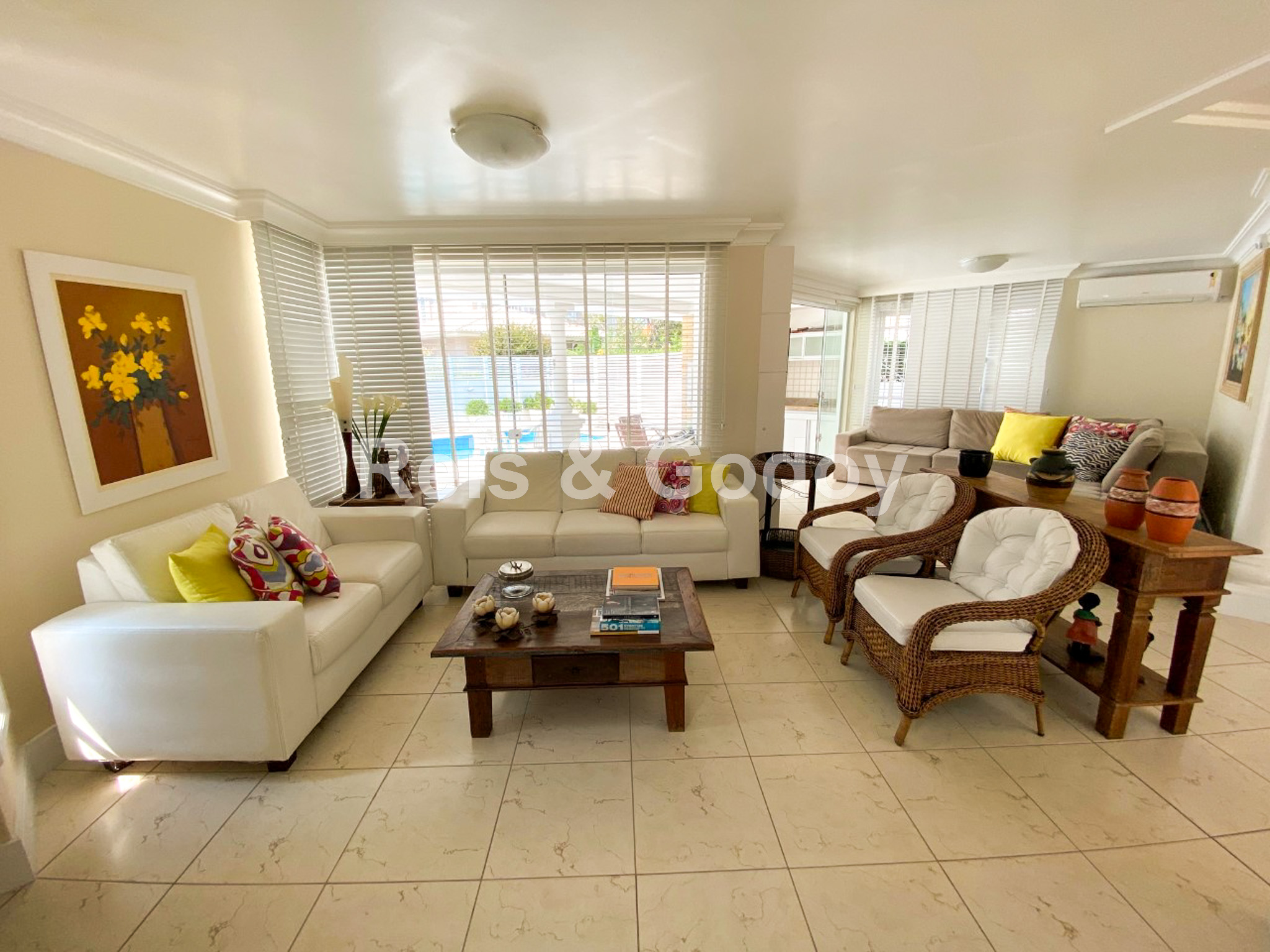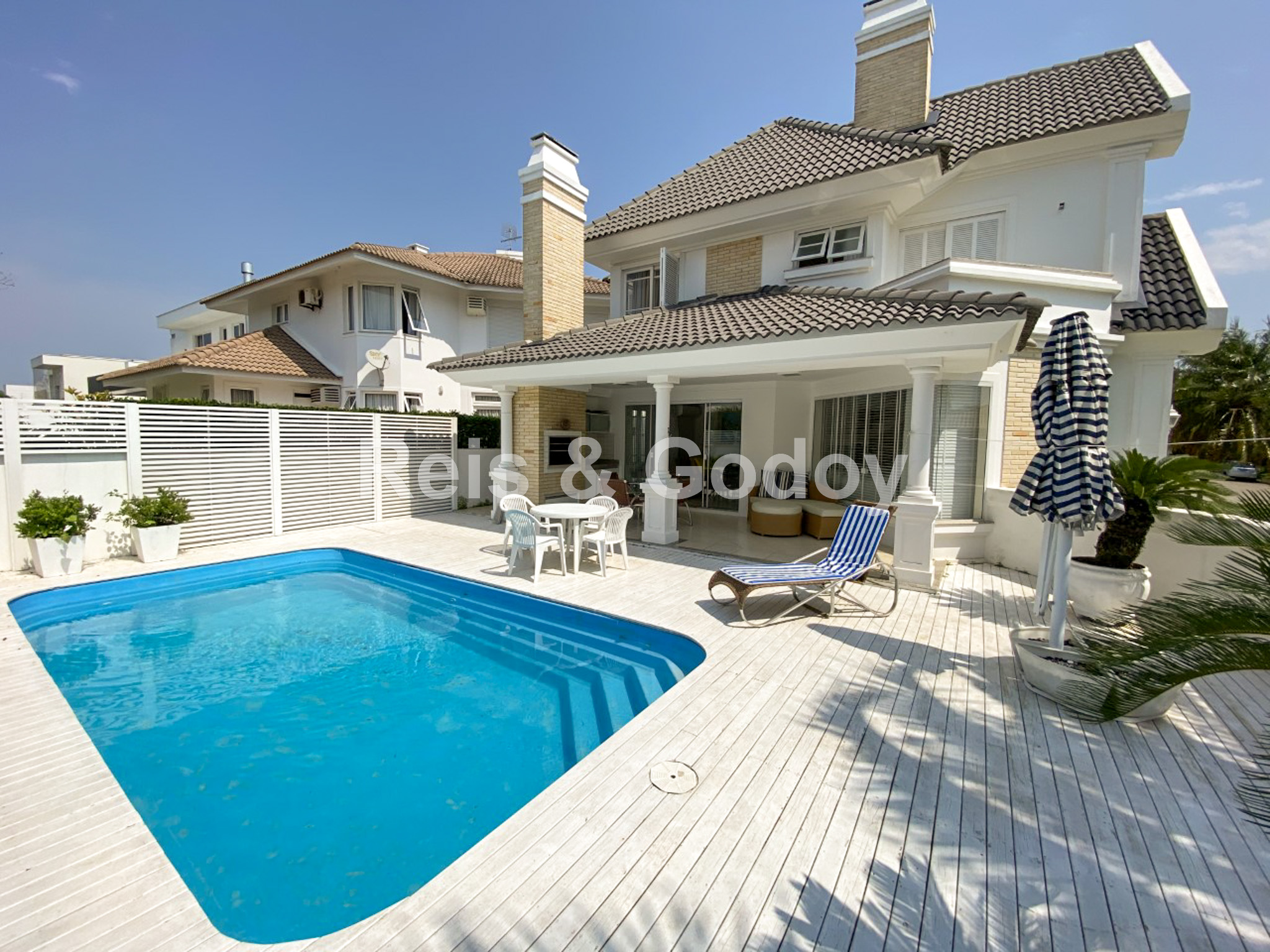 Excelente casa com 4 suítes, 4 ar condicionados SPLIT, closed, hidromassagem, dependência de empregada, TV a cabo, internet WIFI, alarme, excelente área de lazer com piscina e churrasqueira, freezer, máquina de lavar roupa, máquina de secar roupa e 2 vagas de garagem.