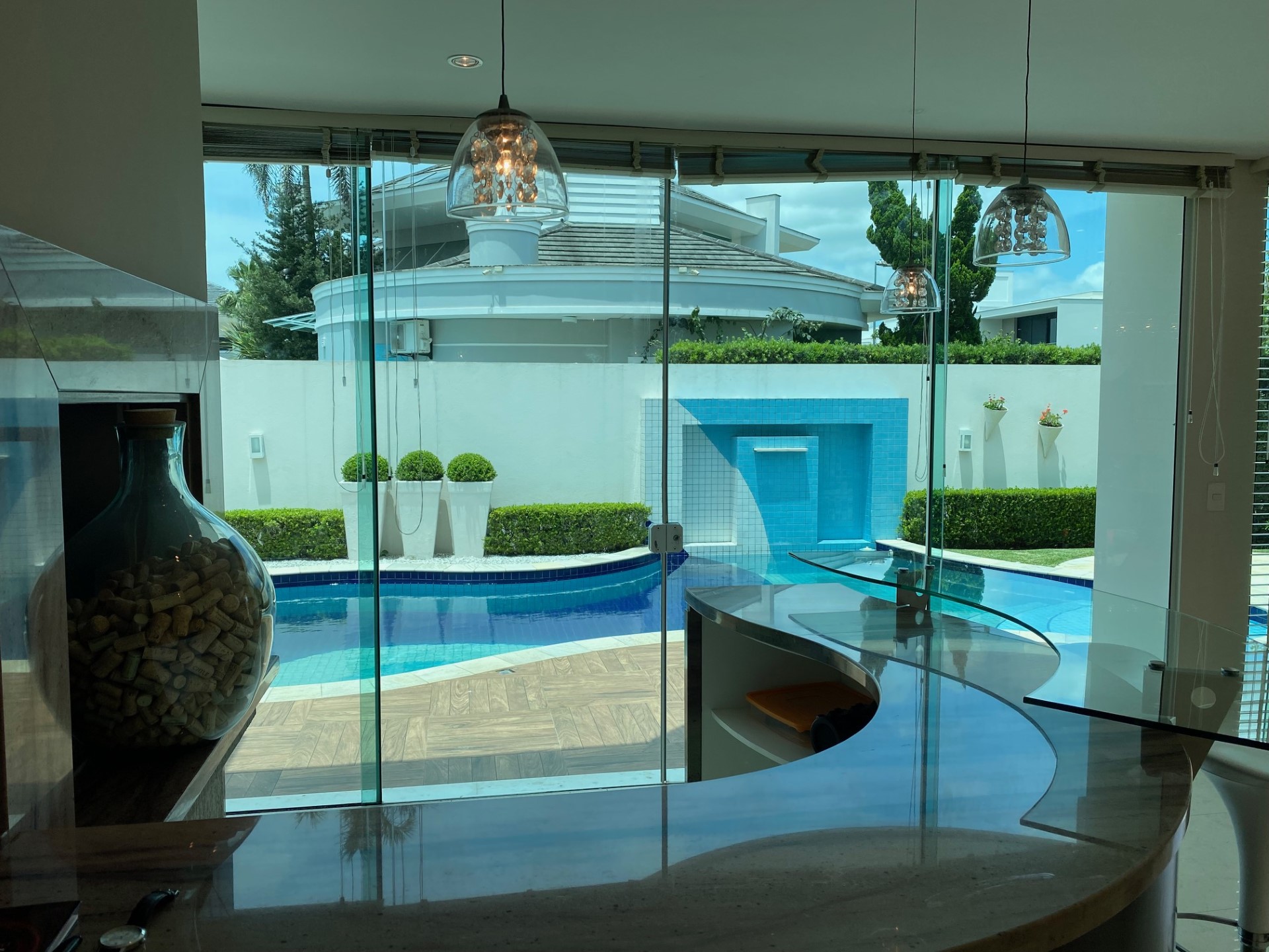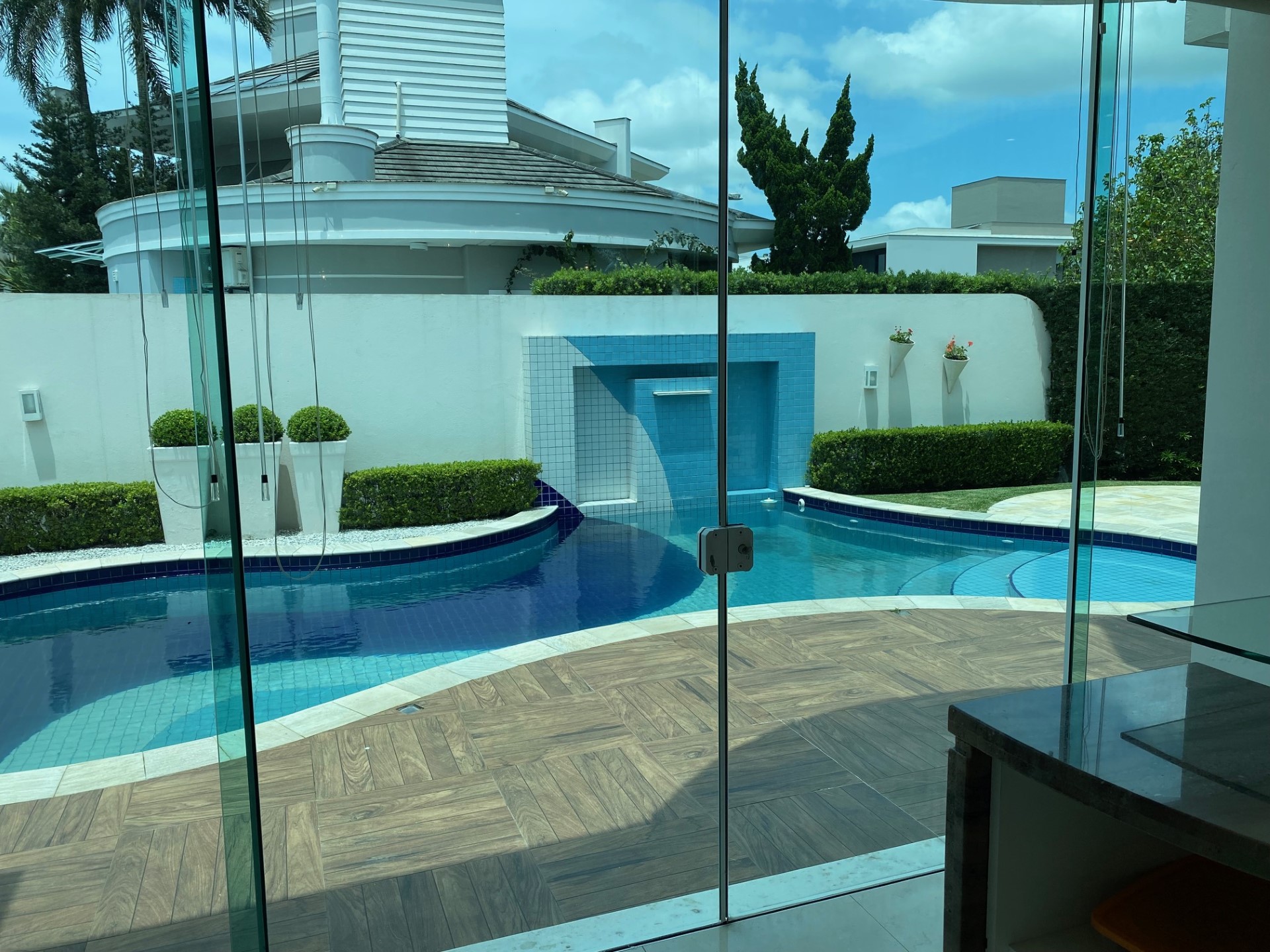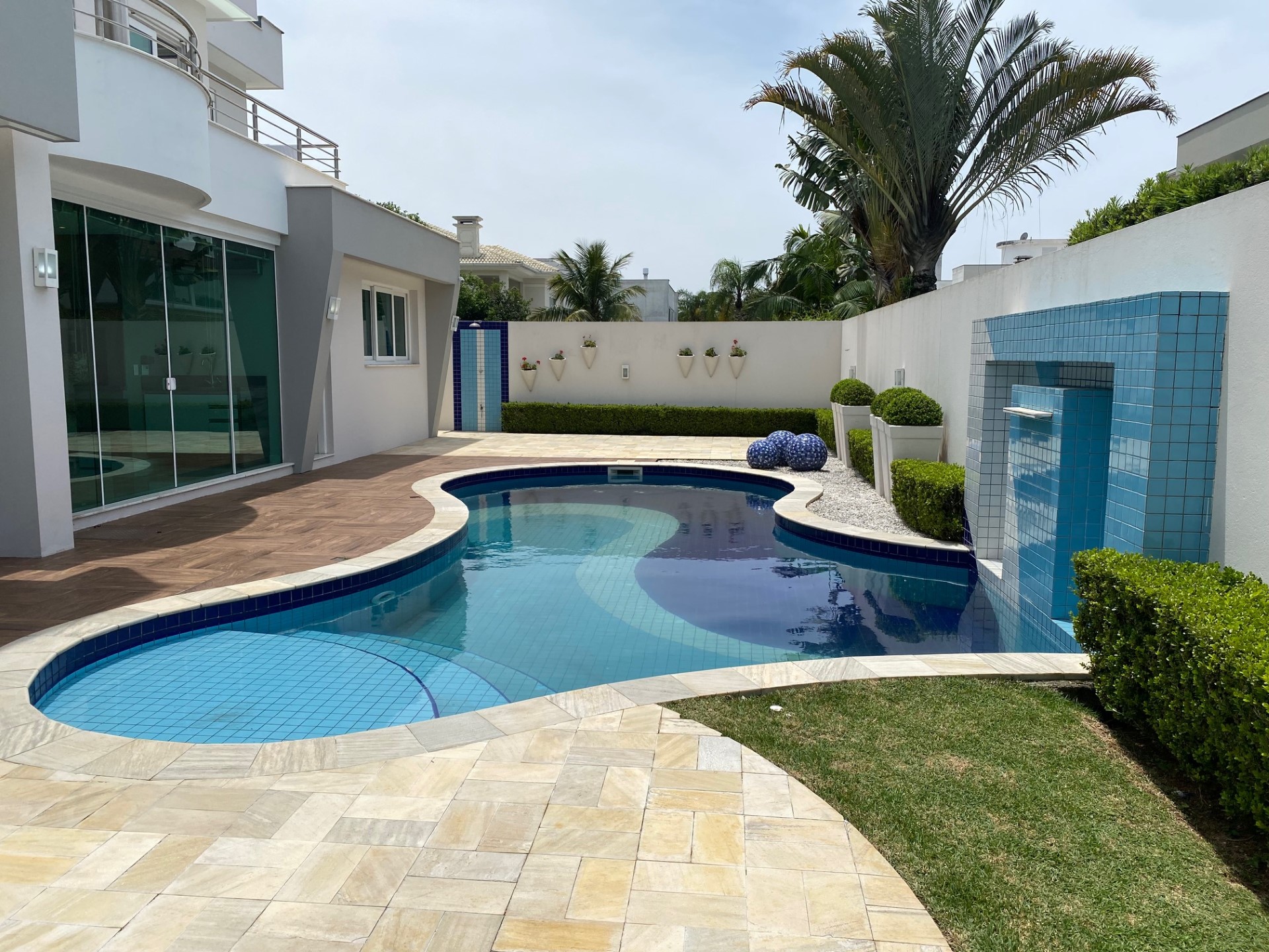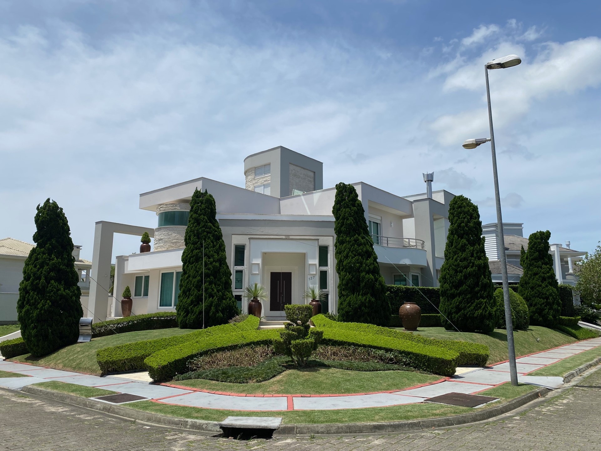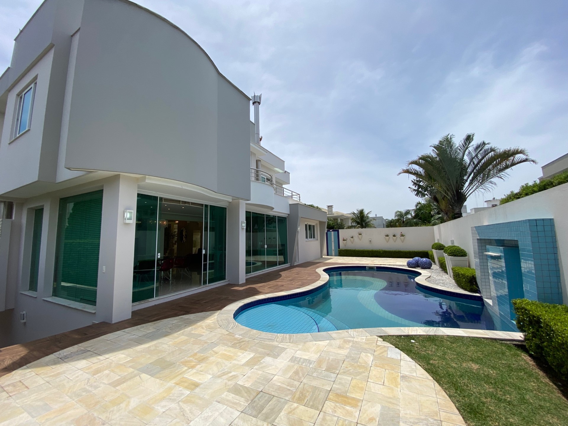 Venham desfrutar de férias incríveis nessa mansão em Jurere Internacional. Simplesmente única! Localização privilegiada na área mais nobre de Jurere Internacional. São 4 suítes (sendo uma master com closed e hidro), ar condicionado em todos os ambientes (suítes, cozinha, sala), sala de estar, sala de televisão, sala de jantar integrada, lavabo, Internet WIFI de alta velocidade, cozinha completa, máquina de lavar roupa, máquina de secar roupa, excelente área de lazer com piscina e churrasqueira e 4 vagas de garagem.