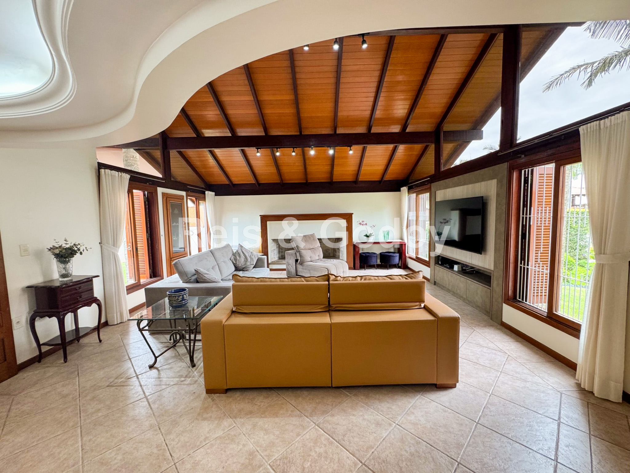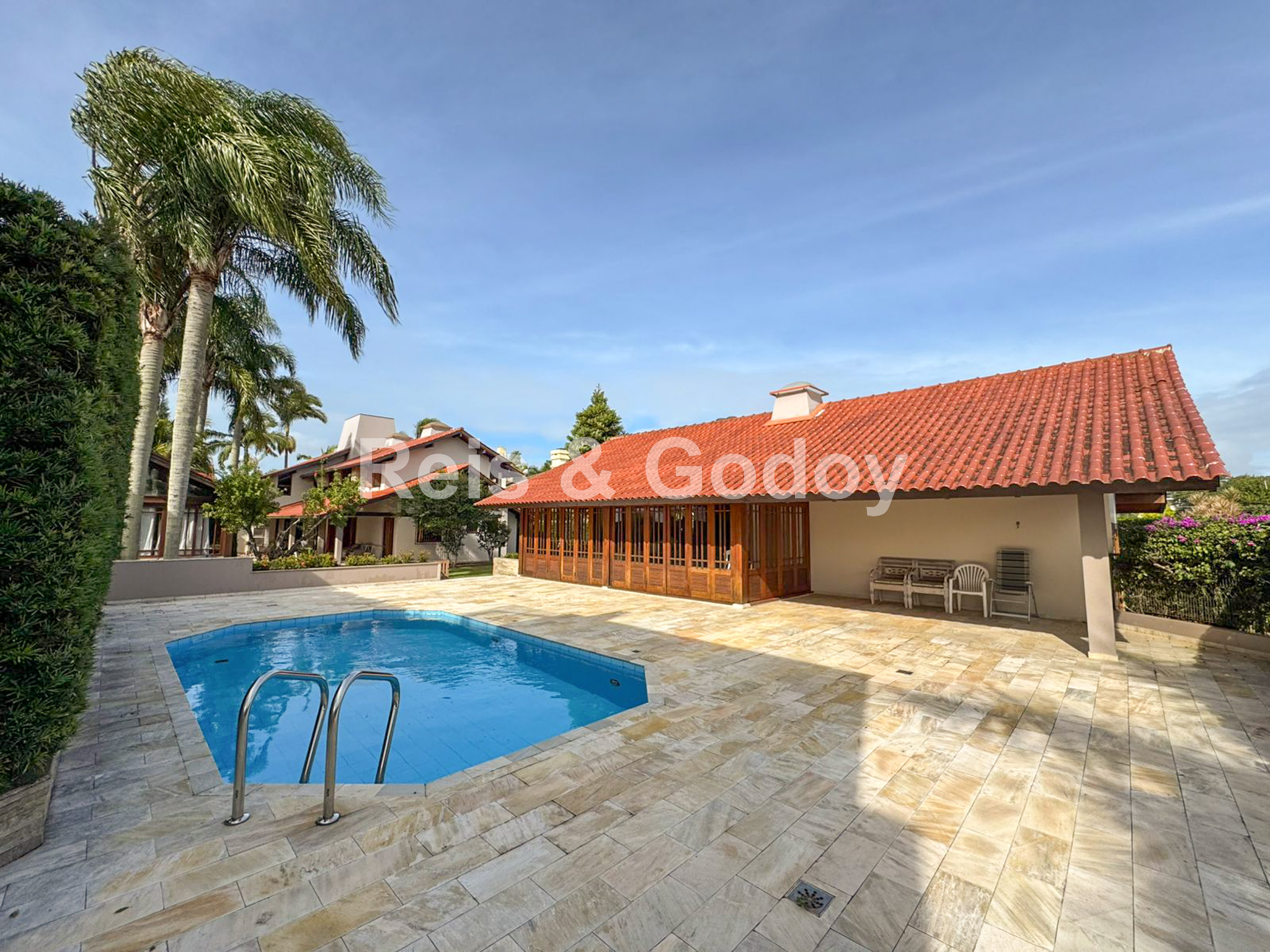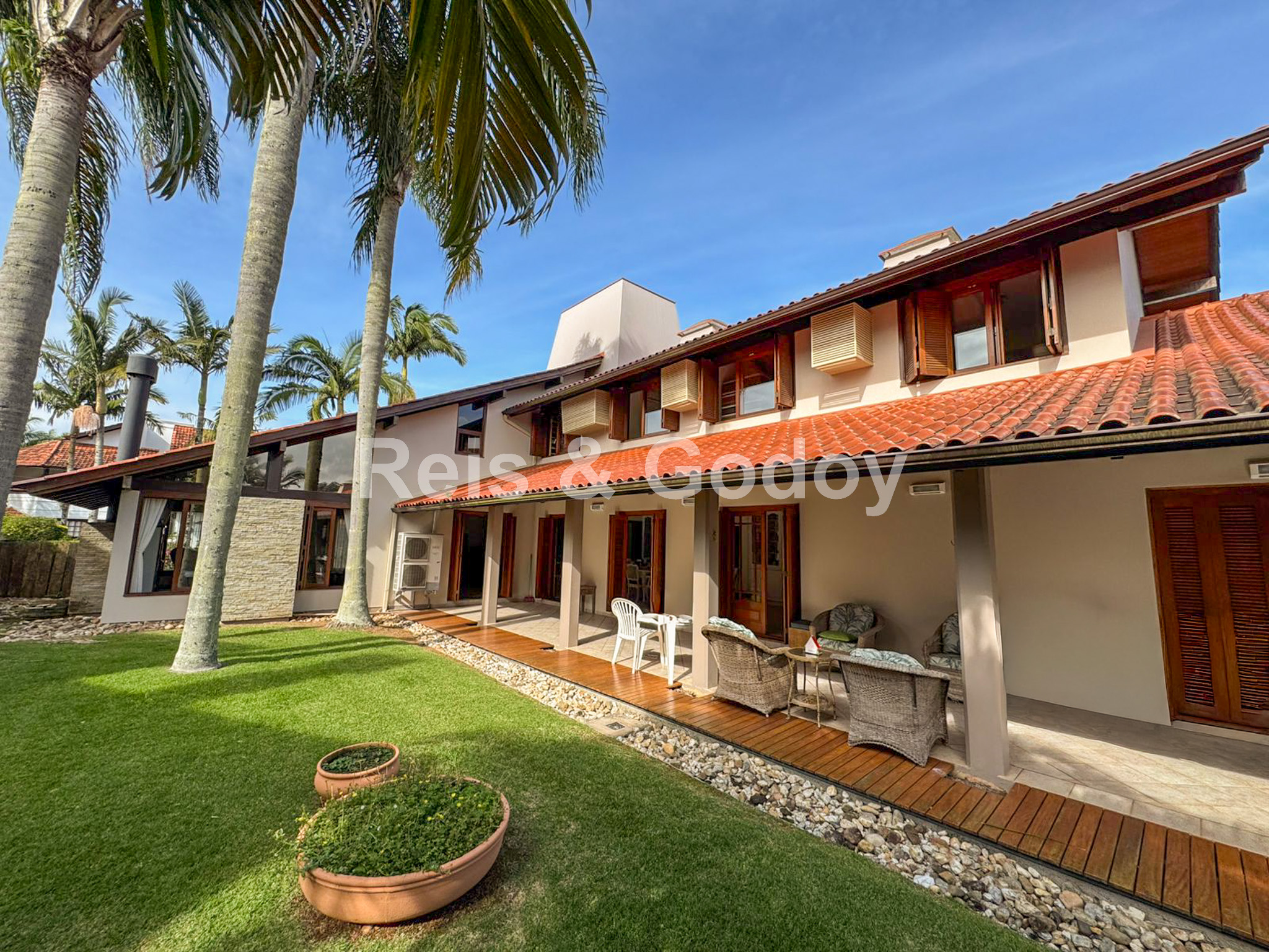 Única!! Exclusiva!! Maravilhosa mansão em terreno de 1.000m² a 200m da Praia de Jurere Internacional. São 6 dormitórios sendo 2 suítes, ar condicionado em todos os cômodos, Internet WIFI, Smart TV, alarme, ampla sala de estar e jantar, lareira, cozinha equipada, excelente área de lazer com piscina e ampla área gourmet com churrasqueira, banheiro, freezer e integrada com a piscina e 2 vagas de garagem.