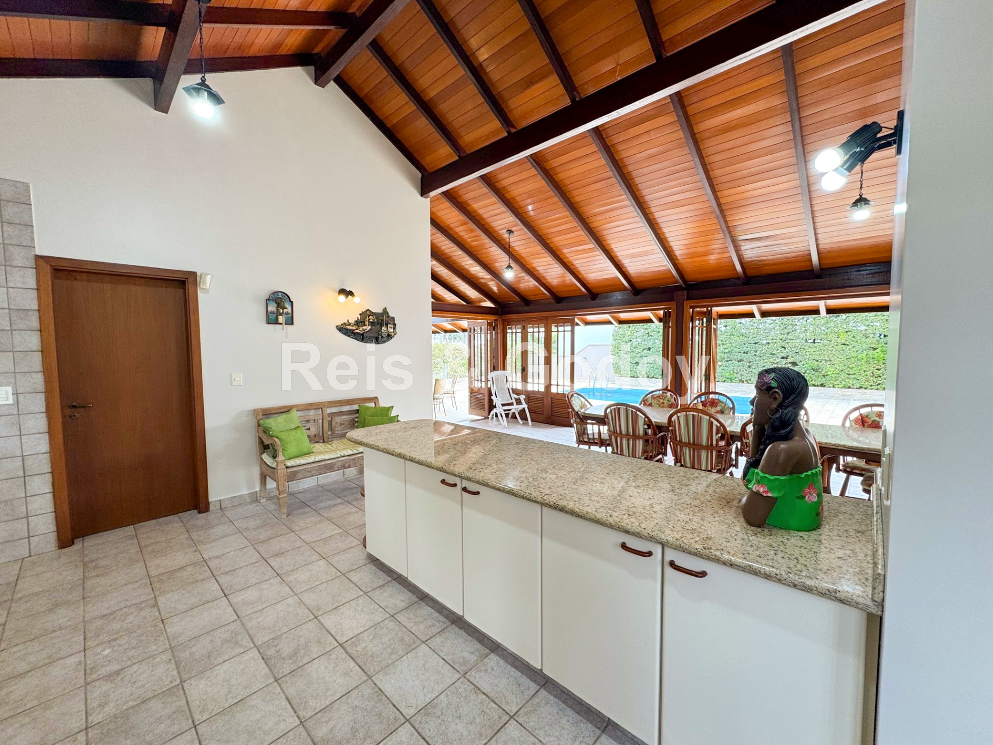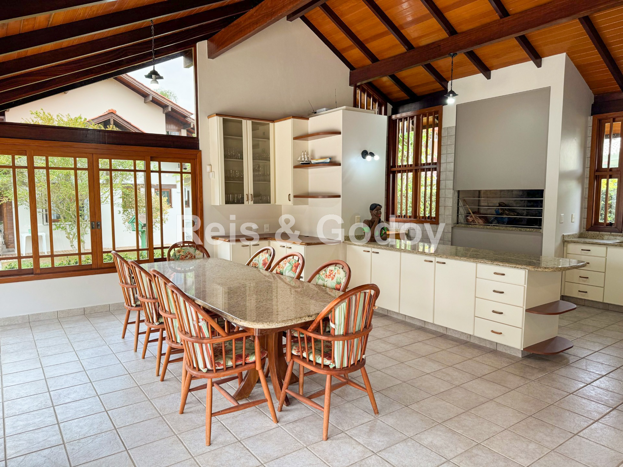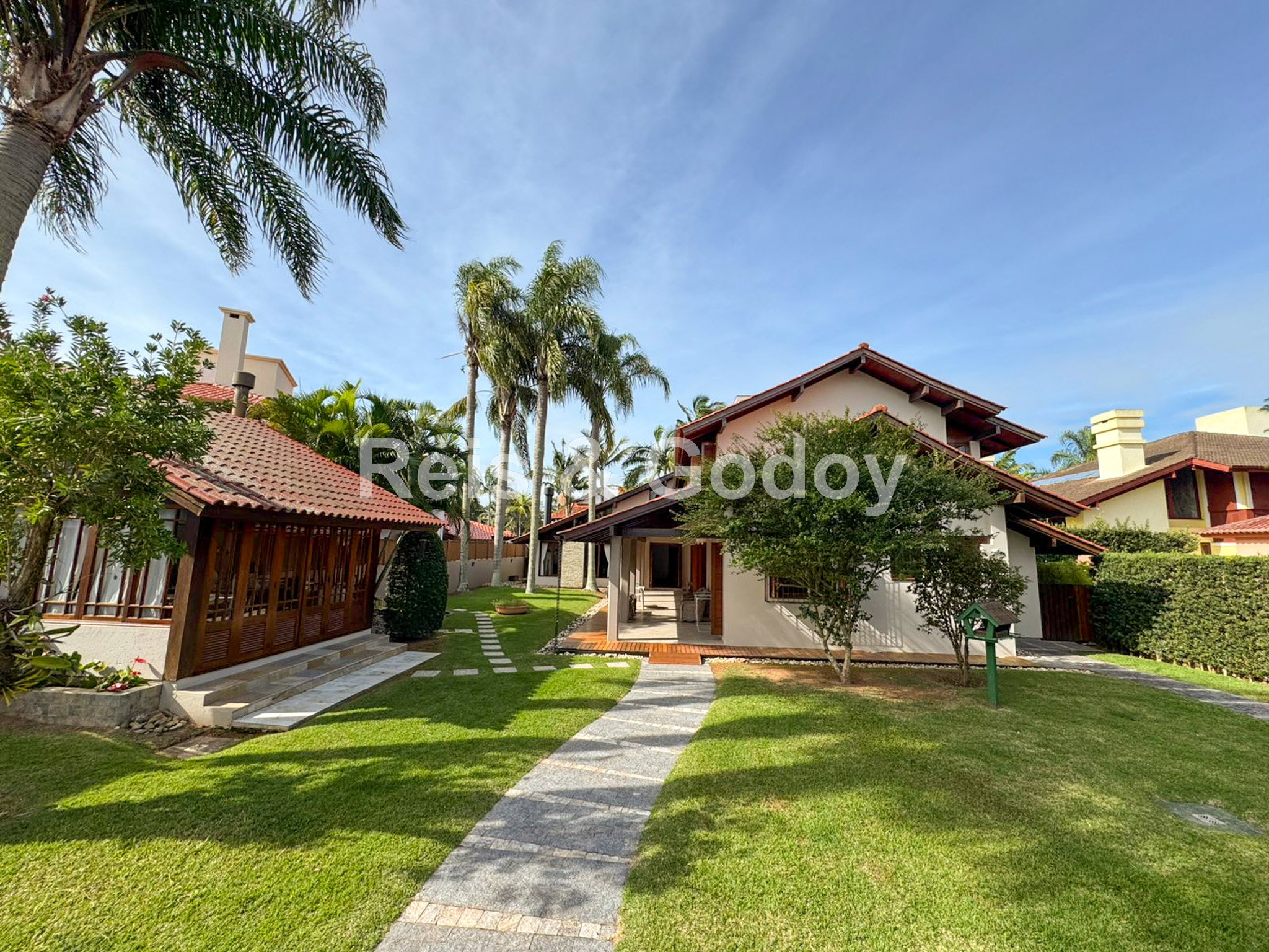 Única!! Exclusiva!! Maravilhosa mansão em terreno de 1.000m² a 200m da Praia de Jurere Internacional. São 6 dormitórios sendo 2 suítes, ar condicionado em todos os cômodos, Internet WIFI, Smart TV, alarme, ampla sala de estar e jantar, lareira, cozinha equipada, excelente área de lazer com piscina e ampla área gourmet com churrasqueira, banheiro, freezer e integrada com a piscina e 2 vagas de garagem.