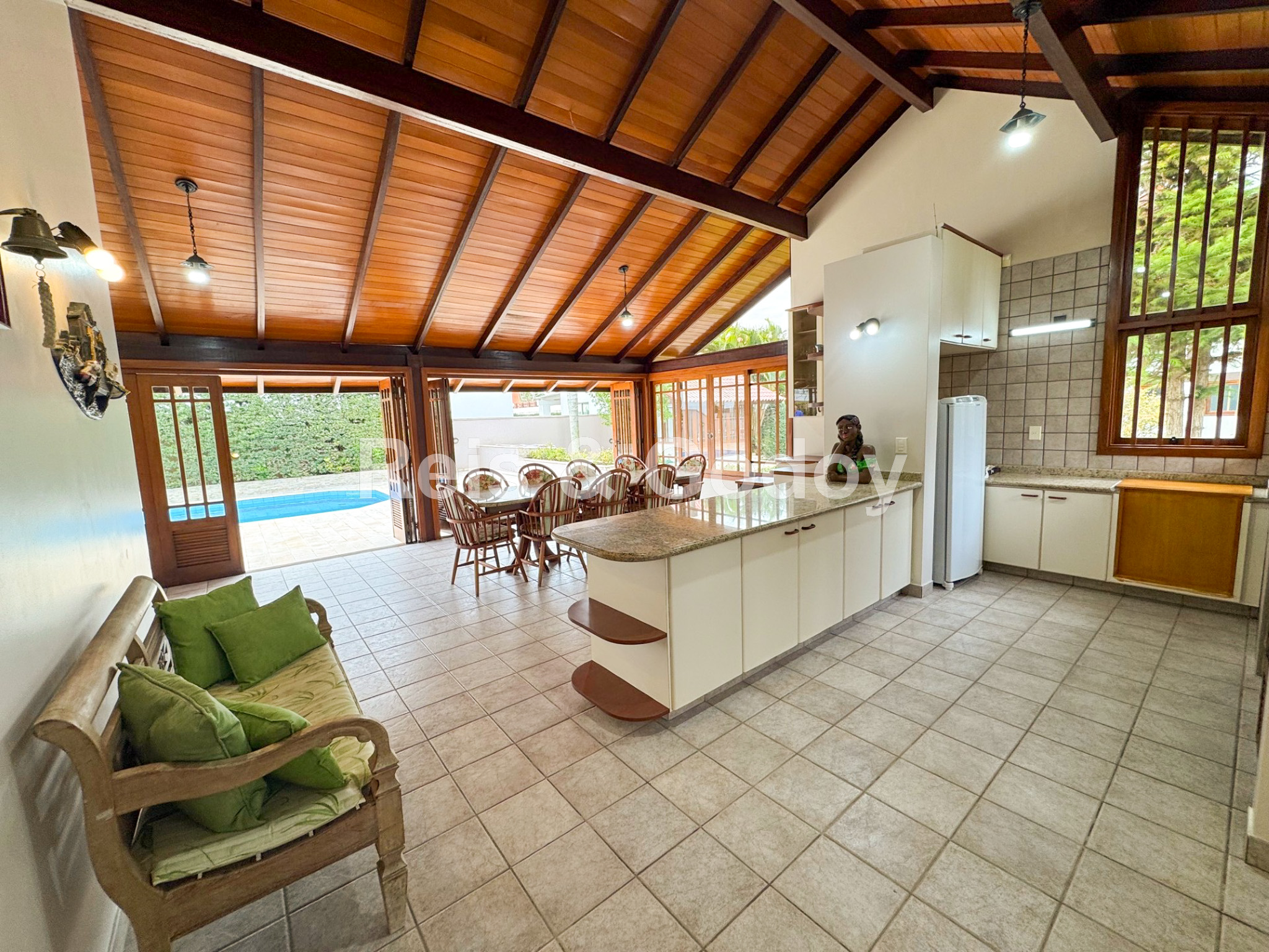 Piscina, Ar Condicionado, Internet WIFI, Churrasqueira, Microondas, Geladeira, Freezer, Fogão, Forno, Máquina de Lavar Roupa, Máquina de Secar Roupa