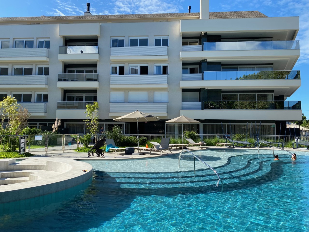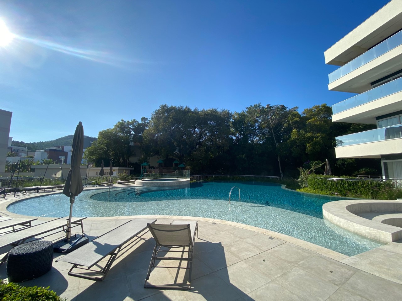 Luxo e bom gosto!! Venham desfrutar férias incríveis no residencial mais completo de Jurerê com infraestrutura de lazer incrível. Lindo duplex com 2 suítes, 3 ar condicionados SPLIT (em todos os ambientes), decorado, silencioso, persianas elétricas, cozinha planejada completa, adega, internet WIFI, SMART TV, máquina de lavar roupa, máquina de secar roupa, 2 vagas de garagem e área de lazer com piscina, hidro aquecida, redário, praça de fogo, área molhada e playground.