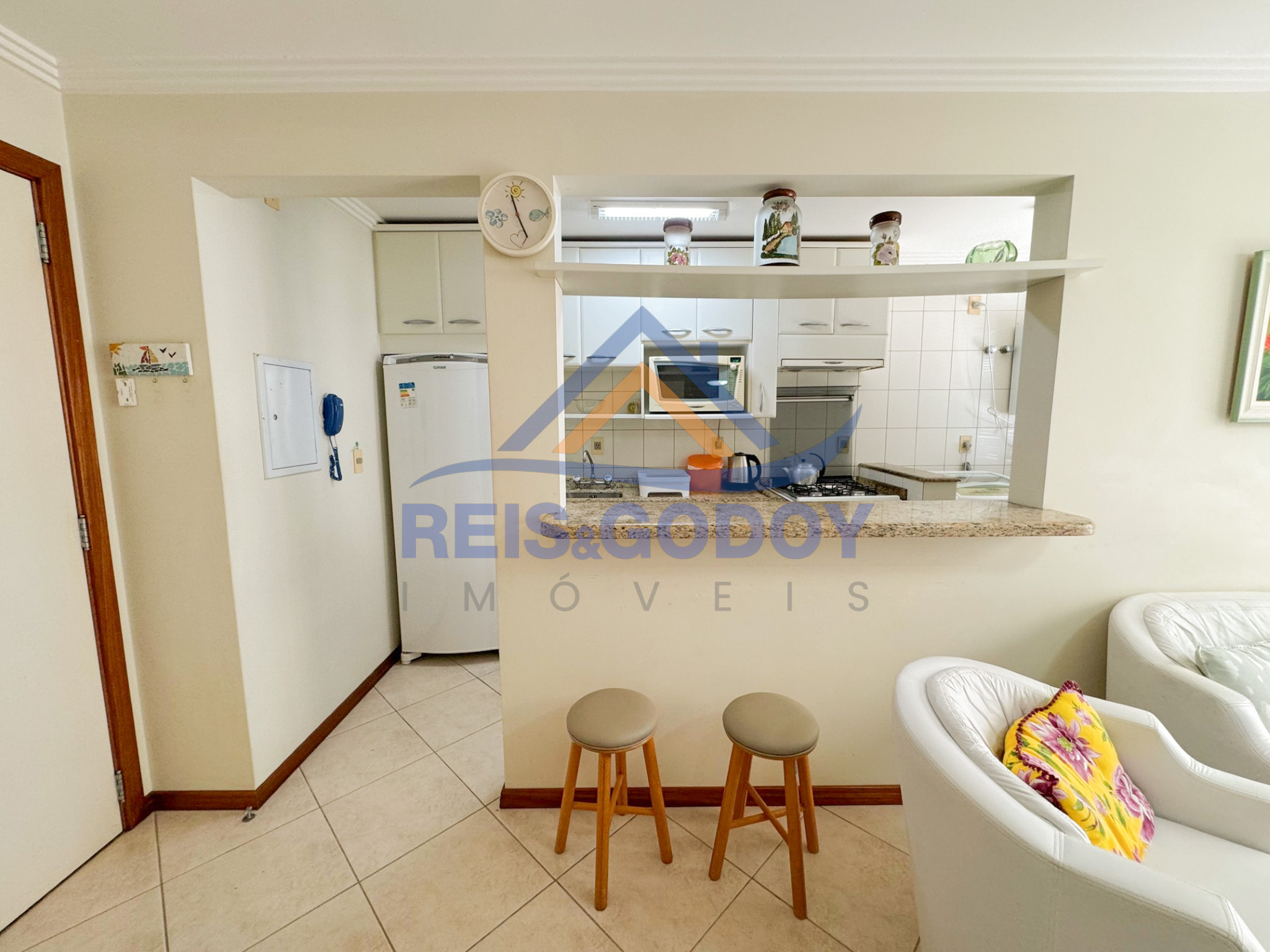 Ar Condicionado, TV a cabo, Internet WIFI, Churrasqueira, Elevador, Cadeiras de praia, Guarda sol, Máquina de lavar roupa, Microondas, Geladeira, Fogão, Forno, Ventilador de teto