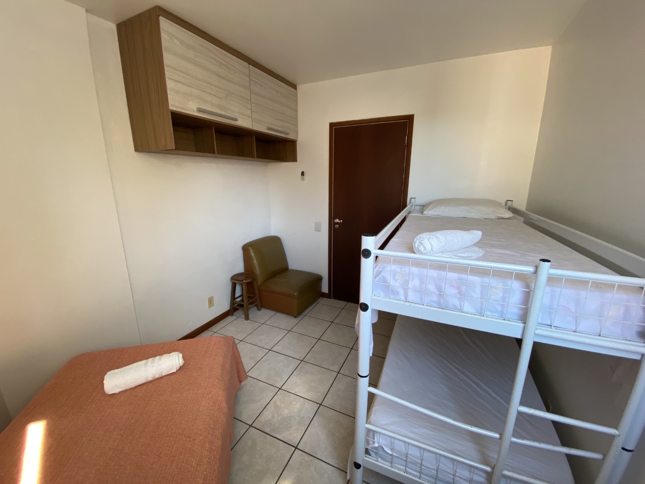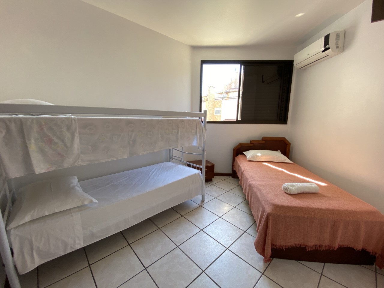 Disposição das camas: 1 cama de casal, 1 cama de solteiro e 1 bicama.