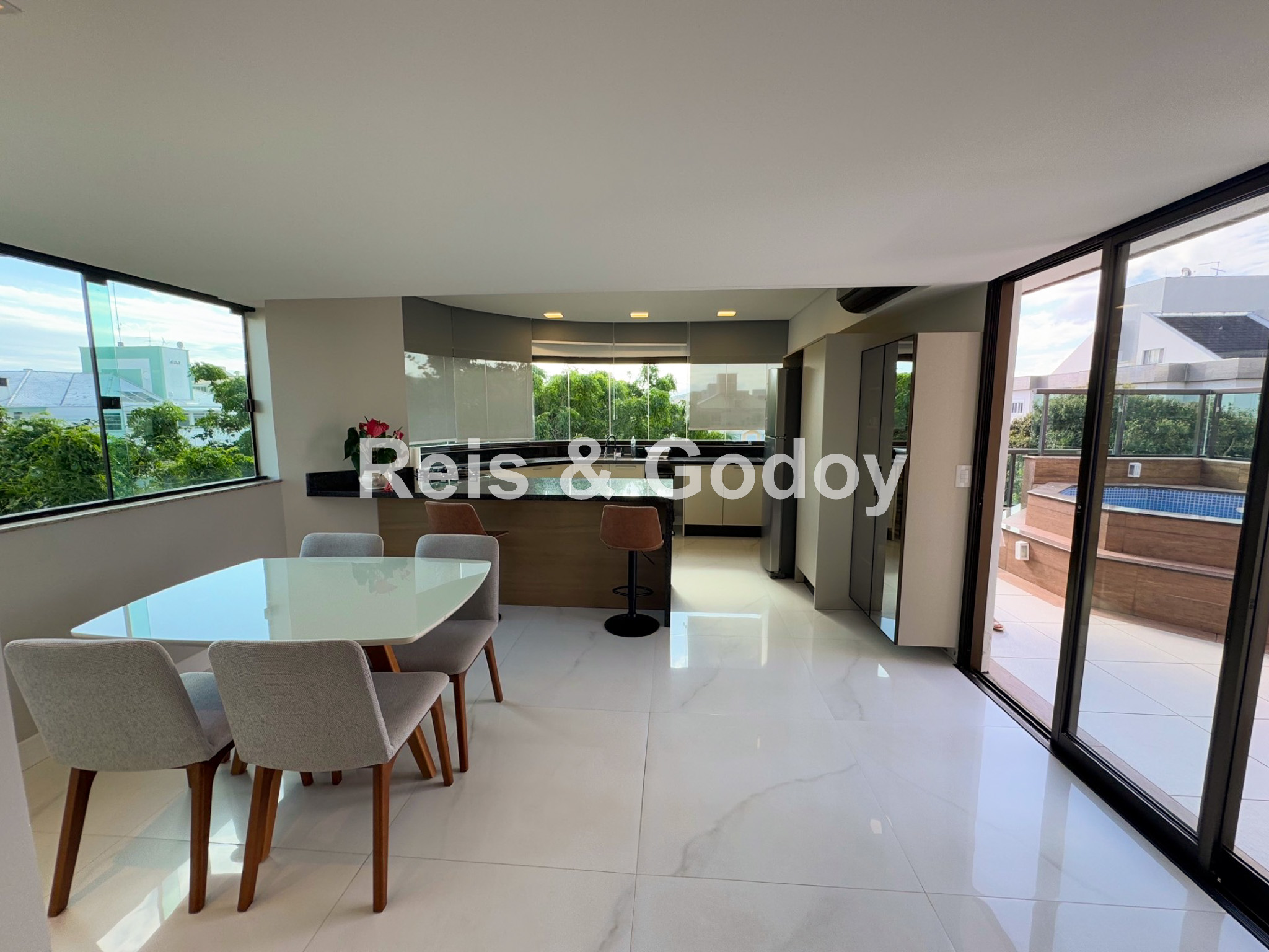 Uma das melhores coberturas de Jurere! Sinta-se em sua própria casa. Cobertura duplex com piscina privativa e 3 dormitórios sendo 2 suítes, lavabo, 3 banheiros, 4 ar condicionados SPLIT (suítes, dormitório e sala), silencioso, ensolarado, cozinha planejada completa, churrasqueira, internet WIFI, SMART TV, máquina de lavar roupa e 1 vaga de garagem.