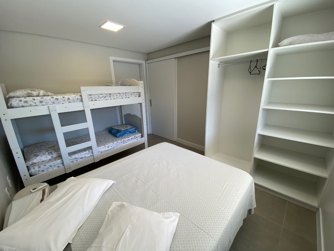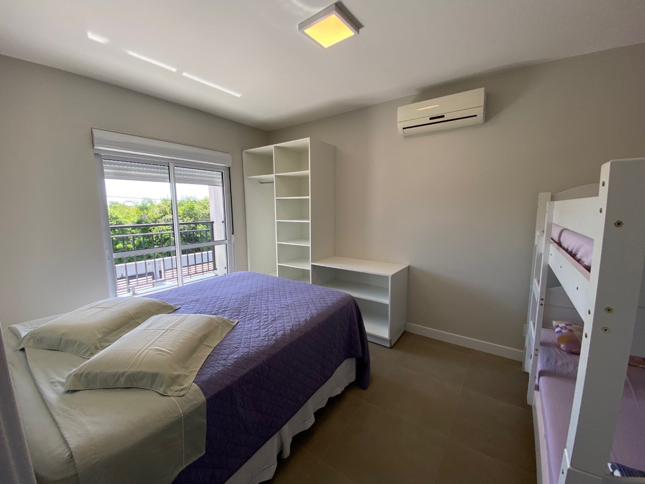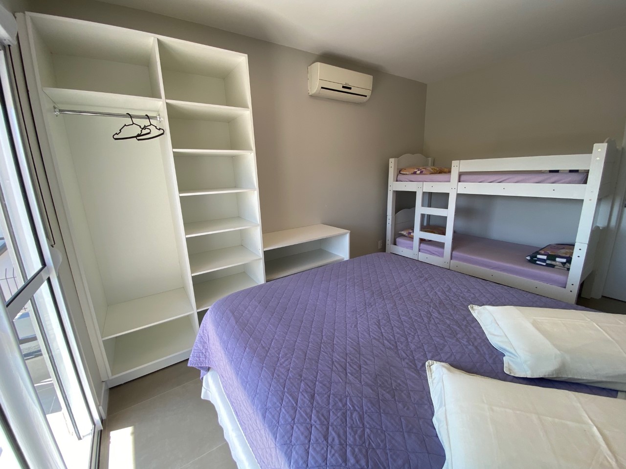 Disposição das camas: 4 camas de casal, 1 cama de solteiro e 2 beliches.