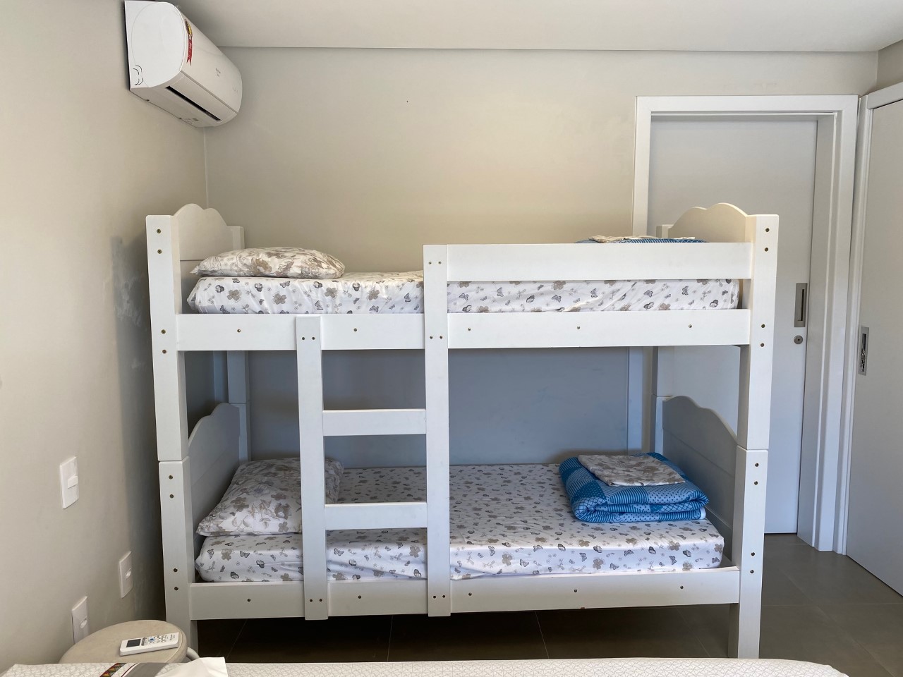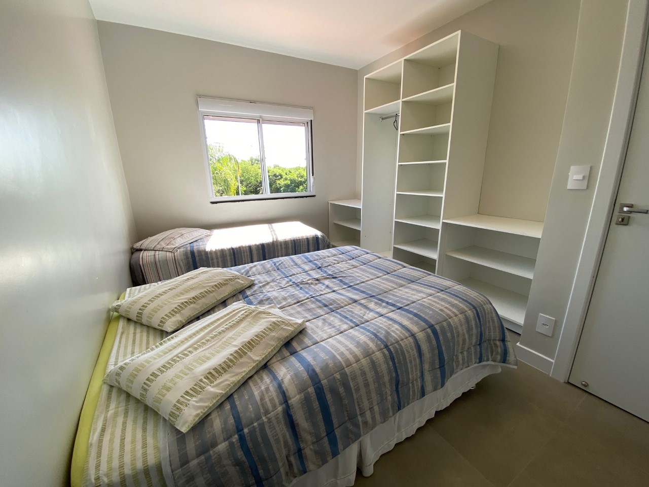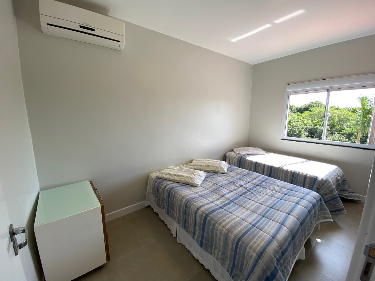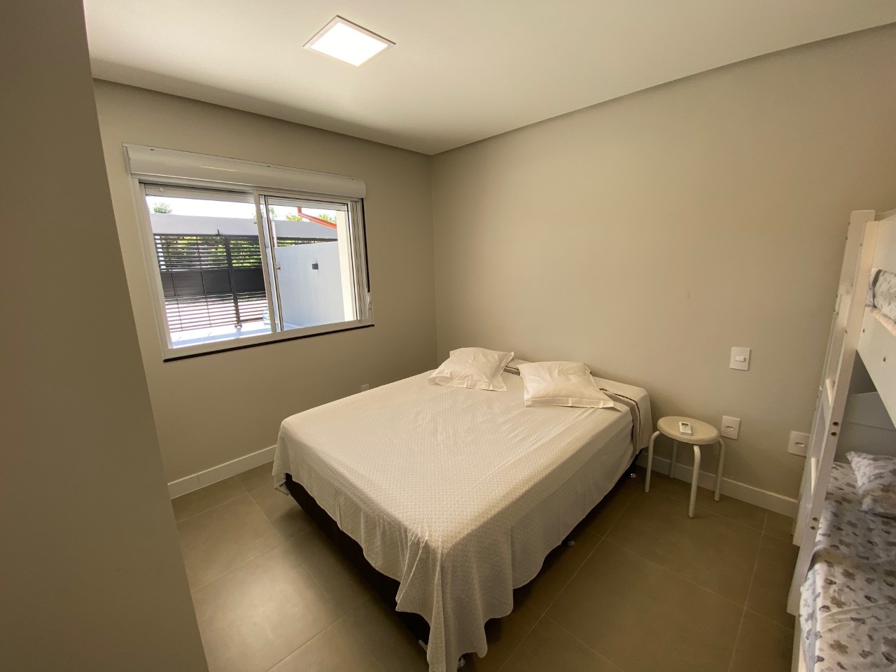 Disposição das camas: 4 camas de casal, 1 cama de solteiro e 2 beliches.