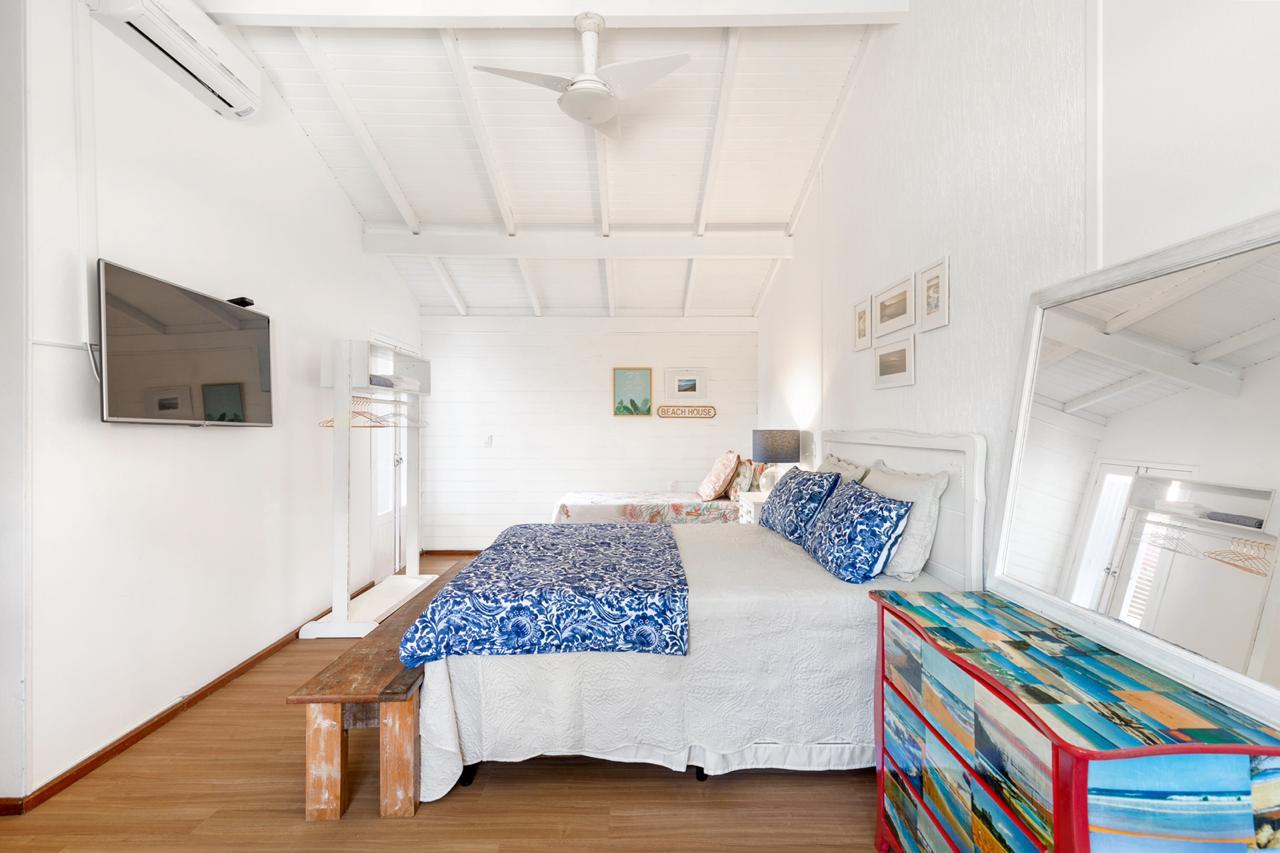 Disposição das camas: 4 camas de casal e 2 camas de solteiro.