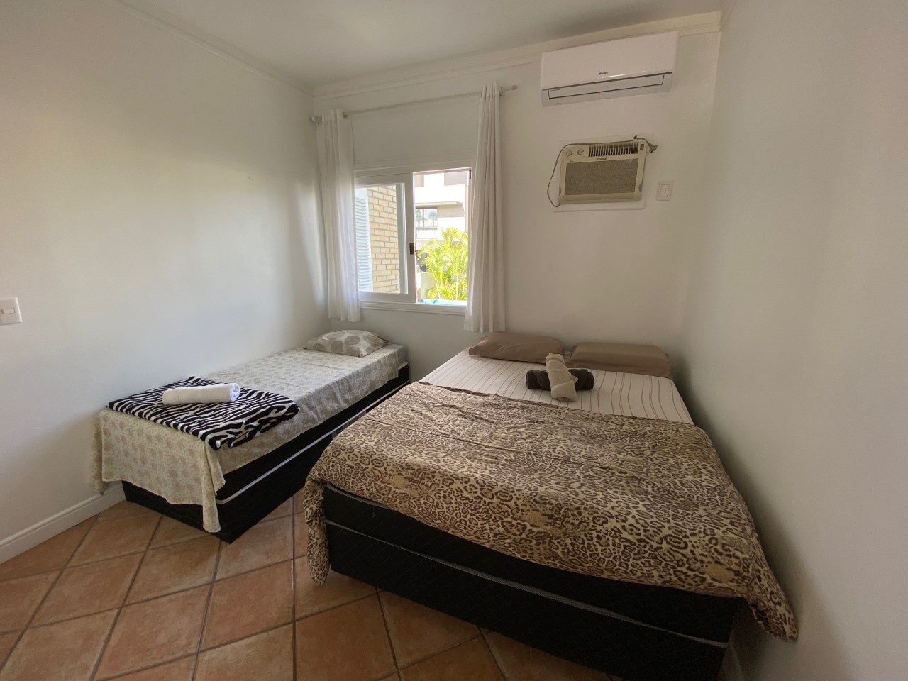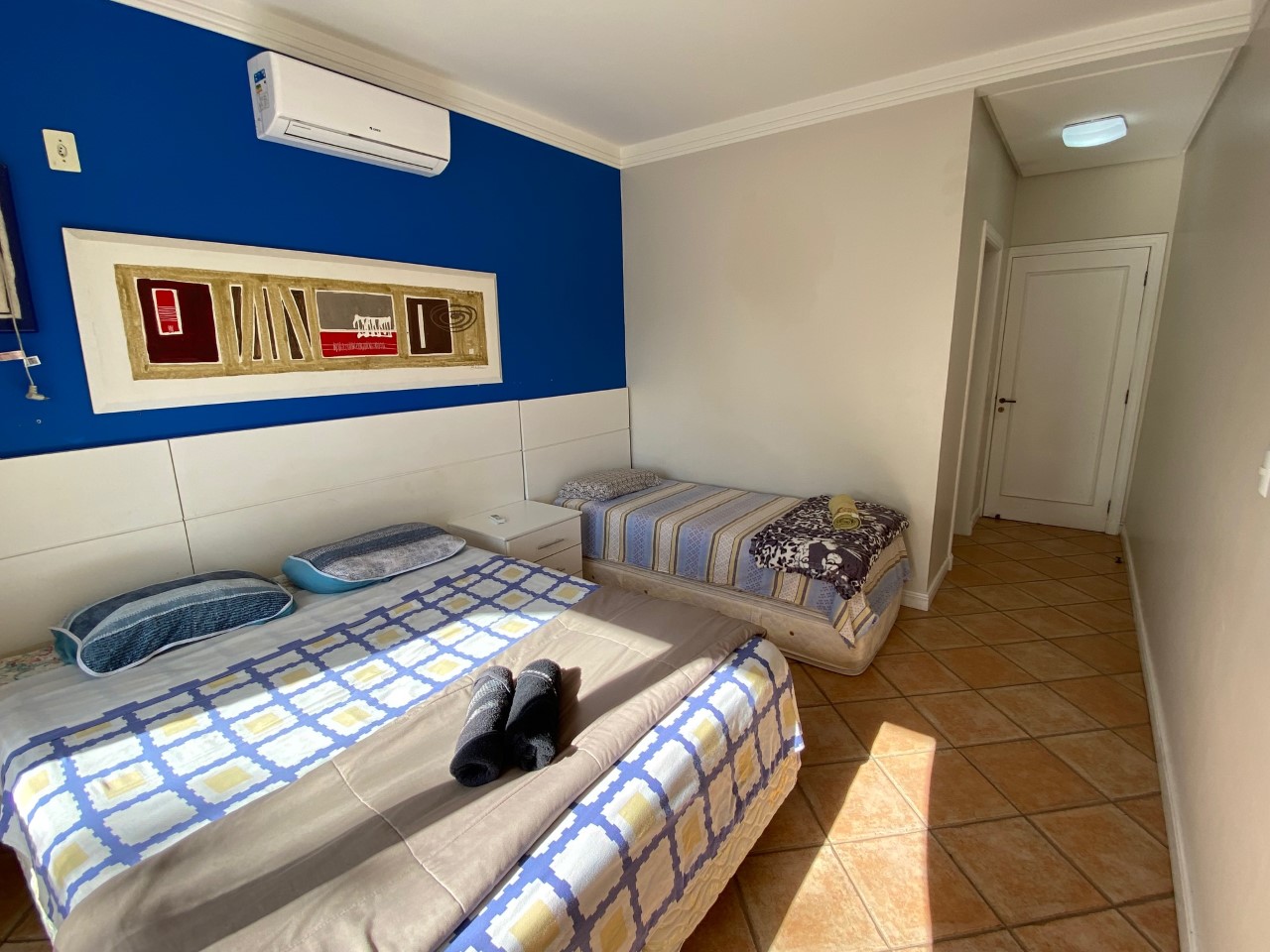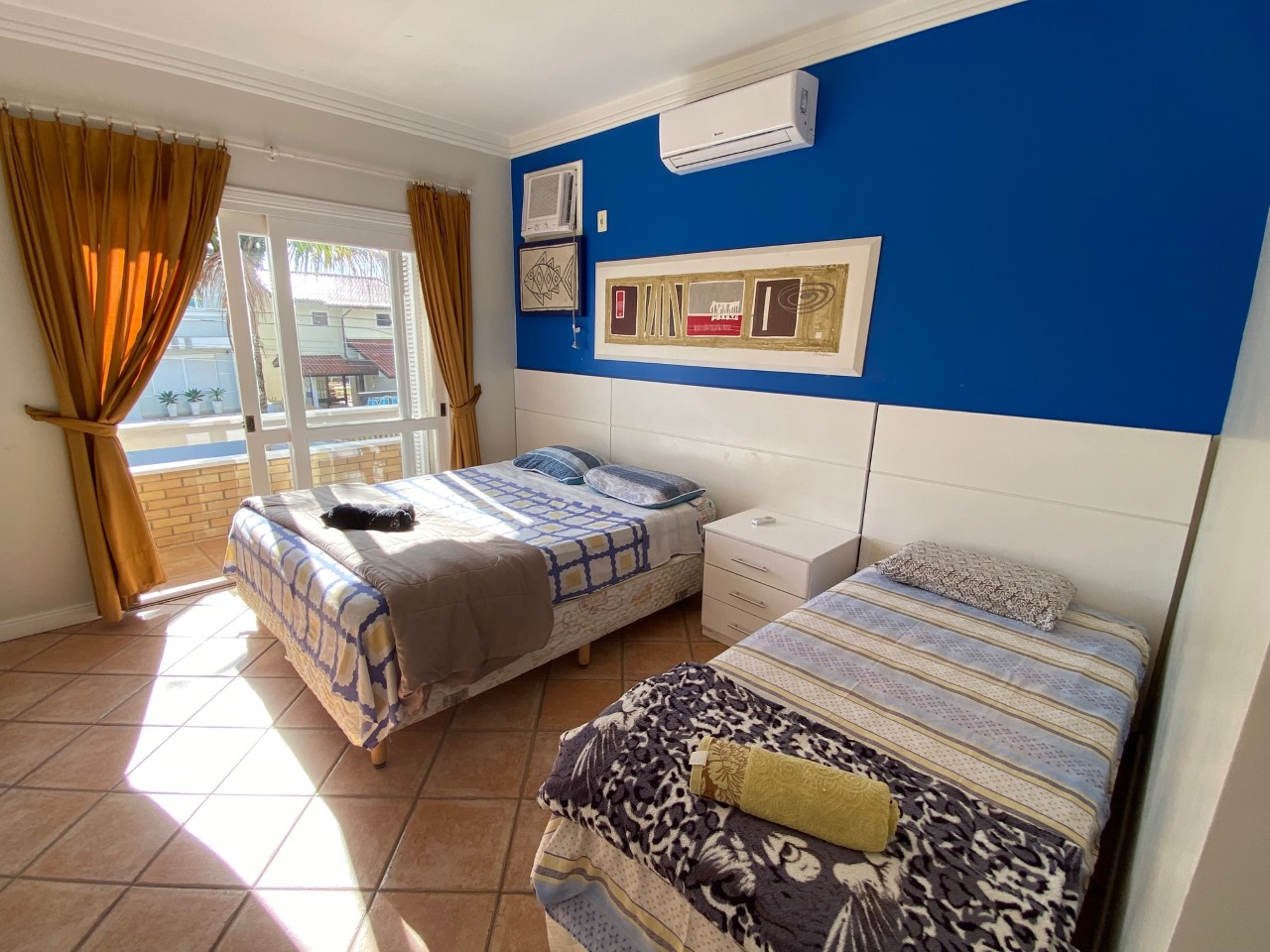 Disposição das camas: 5 camas de casal e 2 camas de solteiro