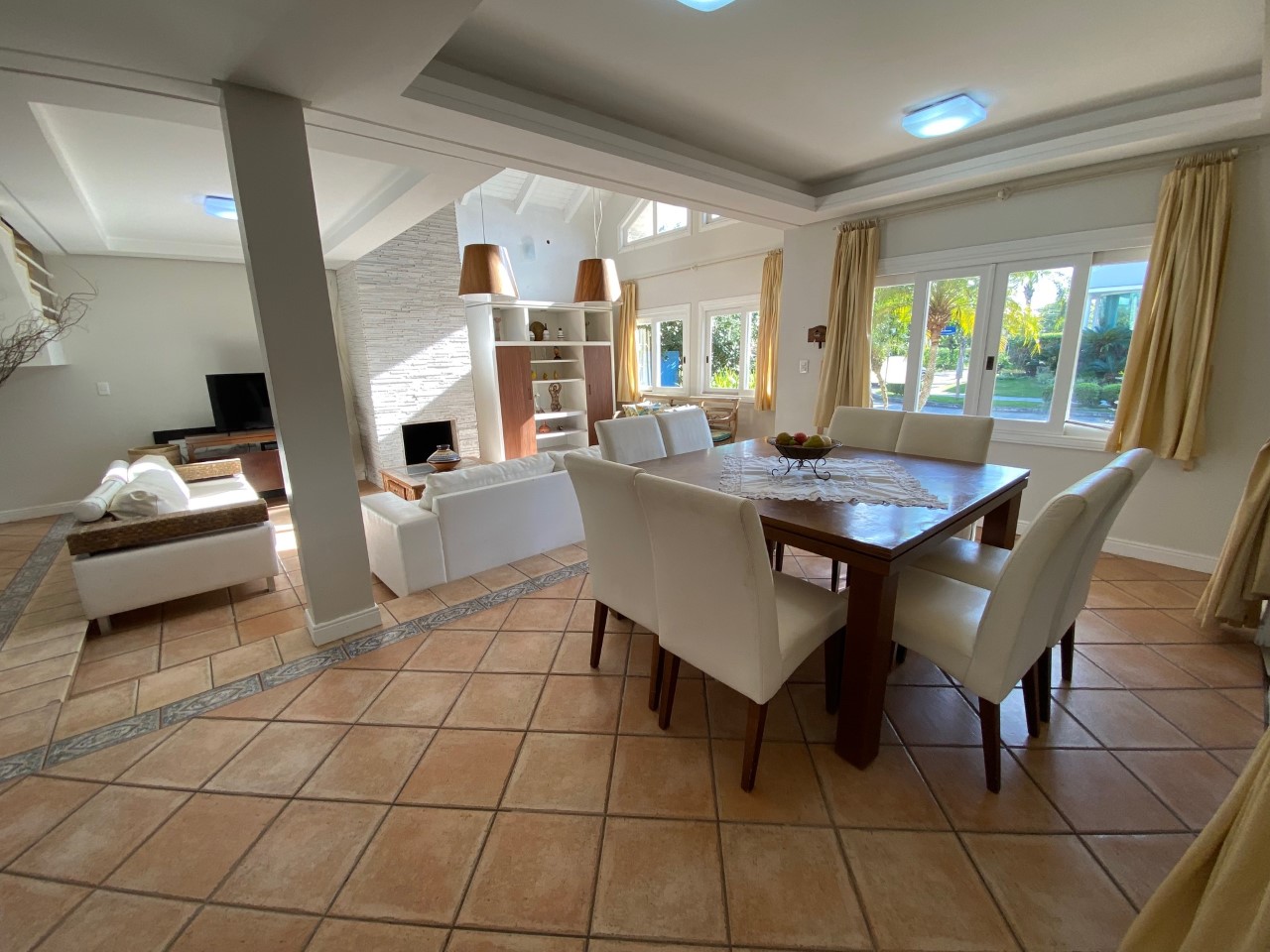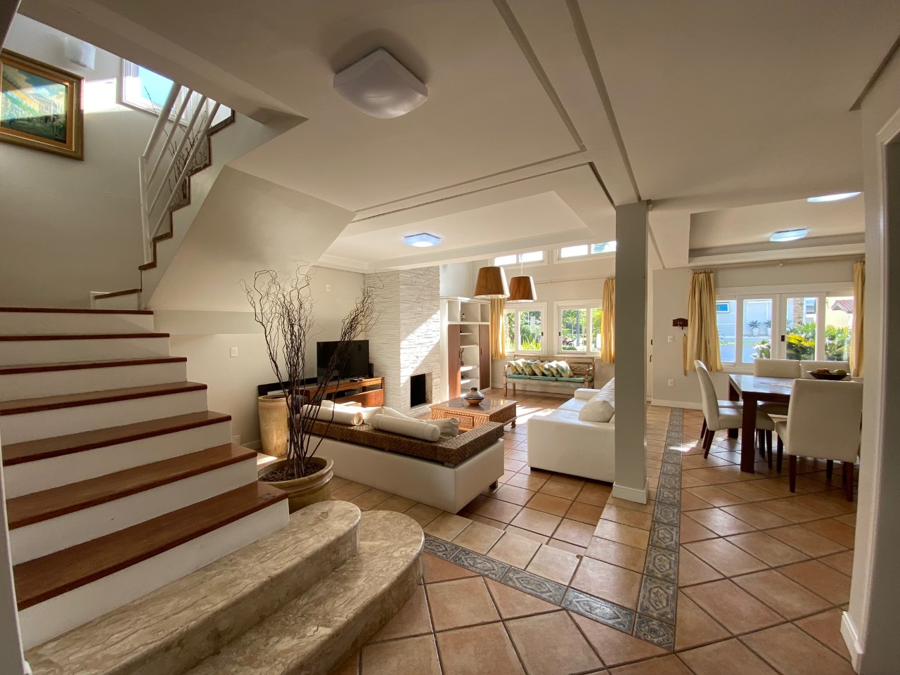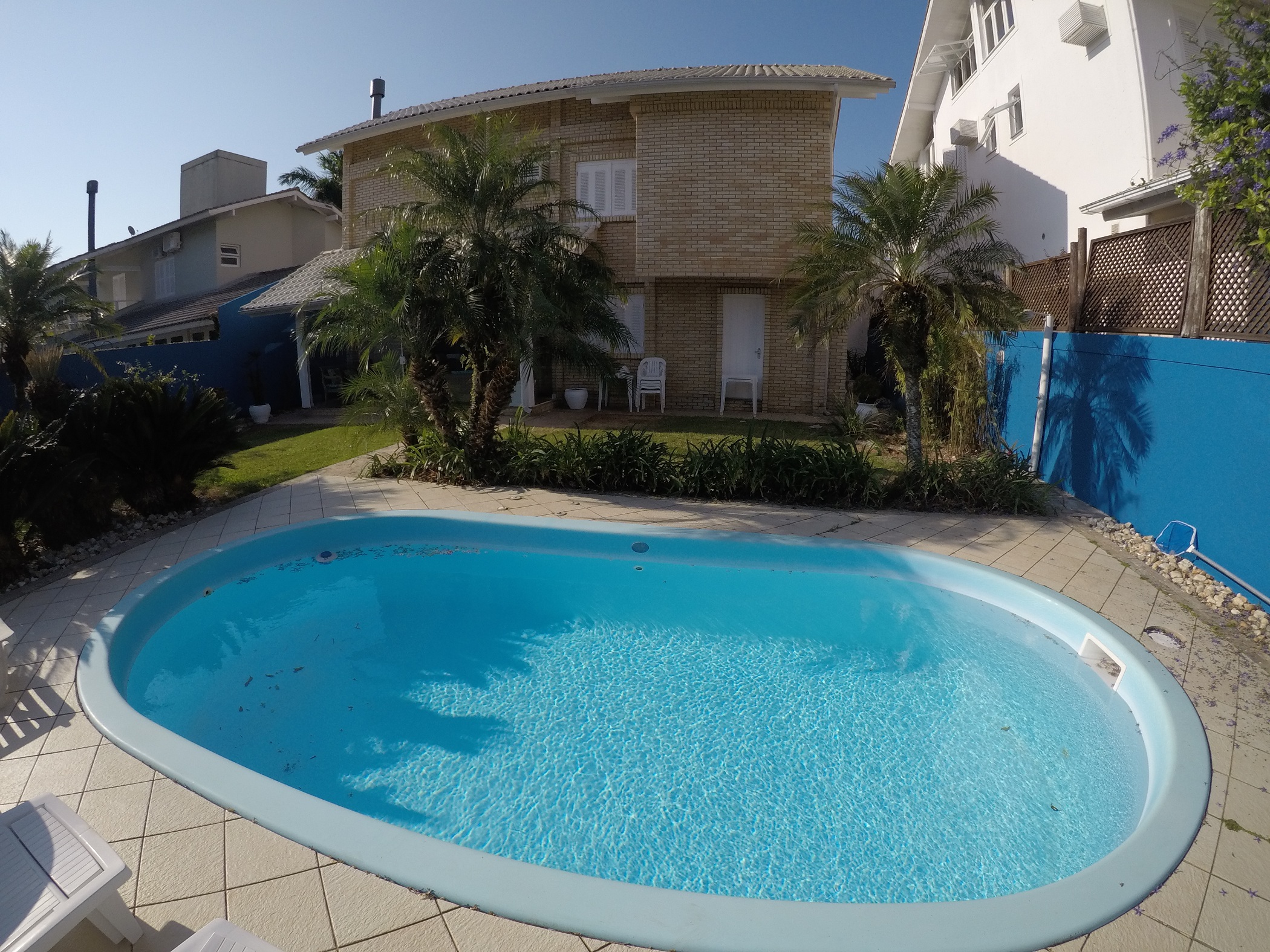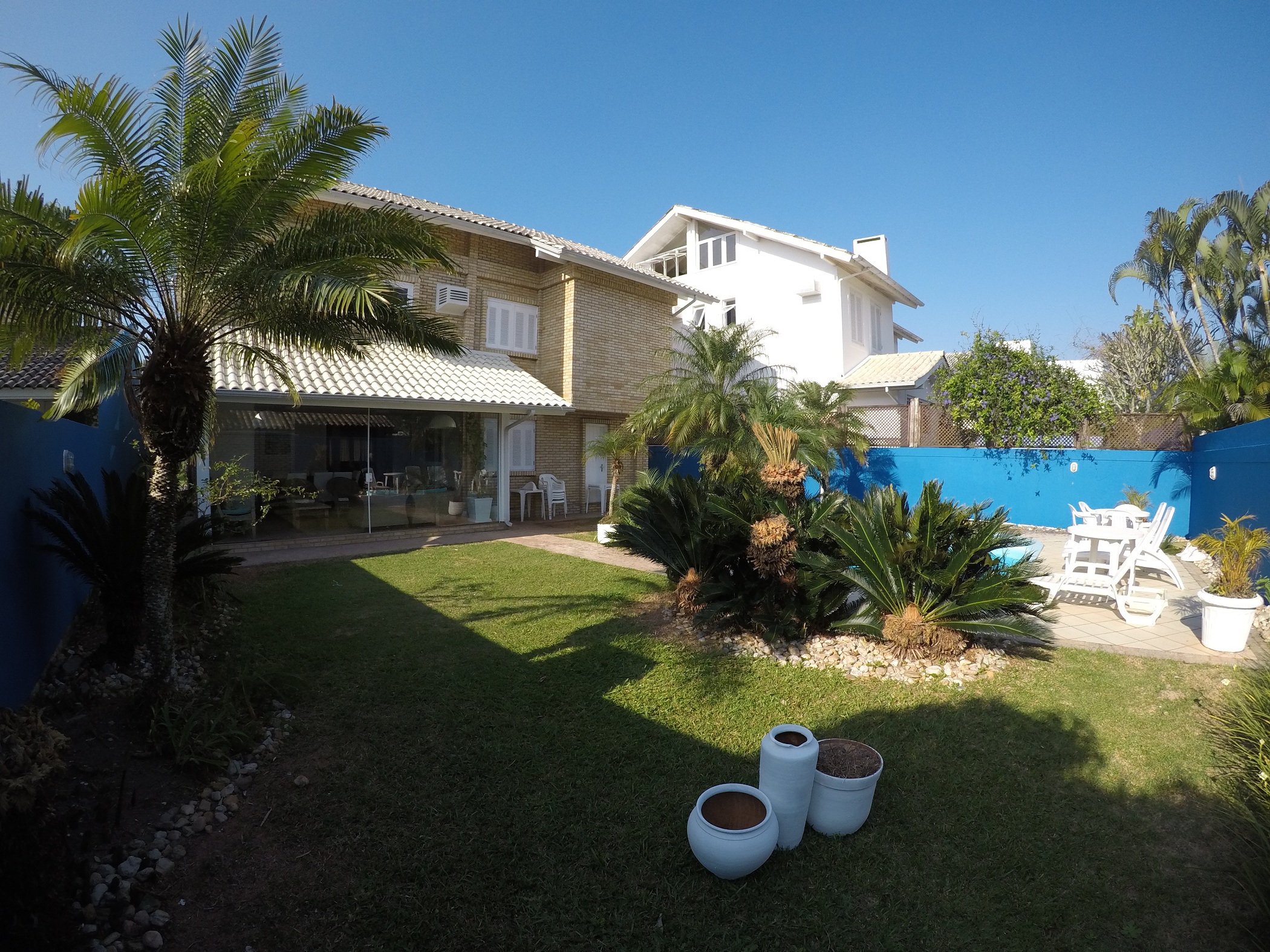 Excelente localização a 150m da praia, no centro de Jurere Internacional. São 5 dormitórios sendo 2 suítes, ar condicionado em todos os quartos, espaço gourmet com churrasqueira, piscina, TV a cabo, internet WIFI, cafeteira, freezer, máquina de lavar roupa e 2 vagas de garagem.