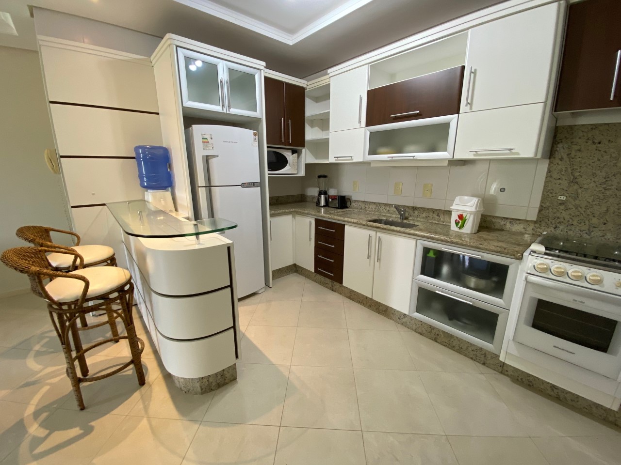Ar Condicionado, TV a cabo, Internet WIFI, Churrasqueira, Microondas, Geladeira, Fogão, Forno