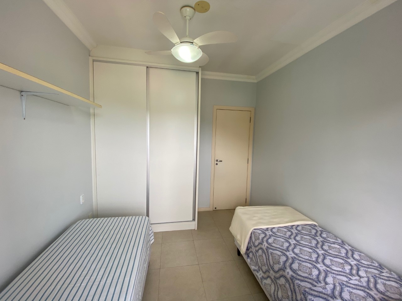 Disposição das camas: 1 cama de casal, 2 camas de solteiro e 1 bicama.