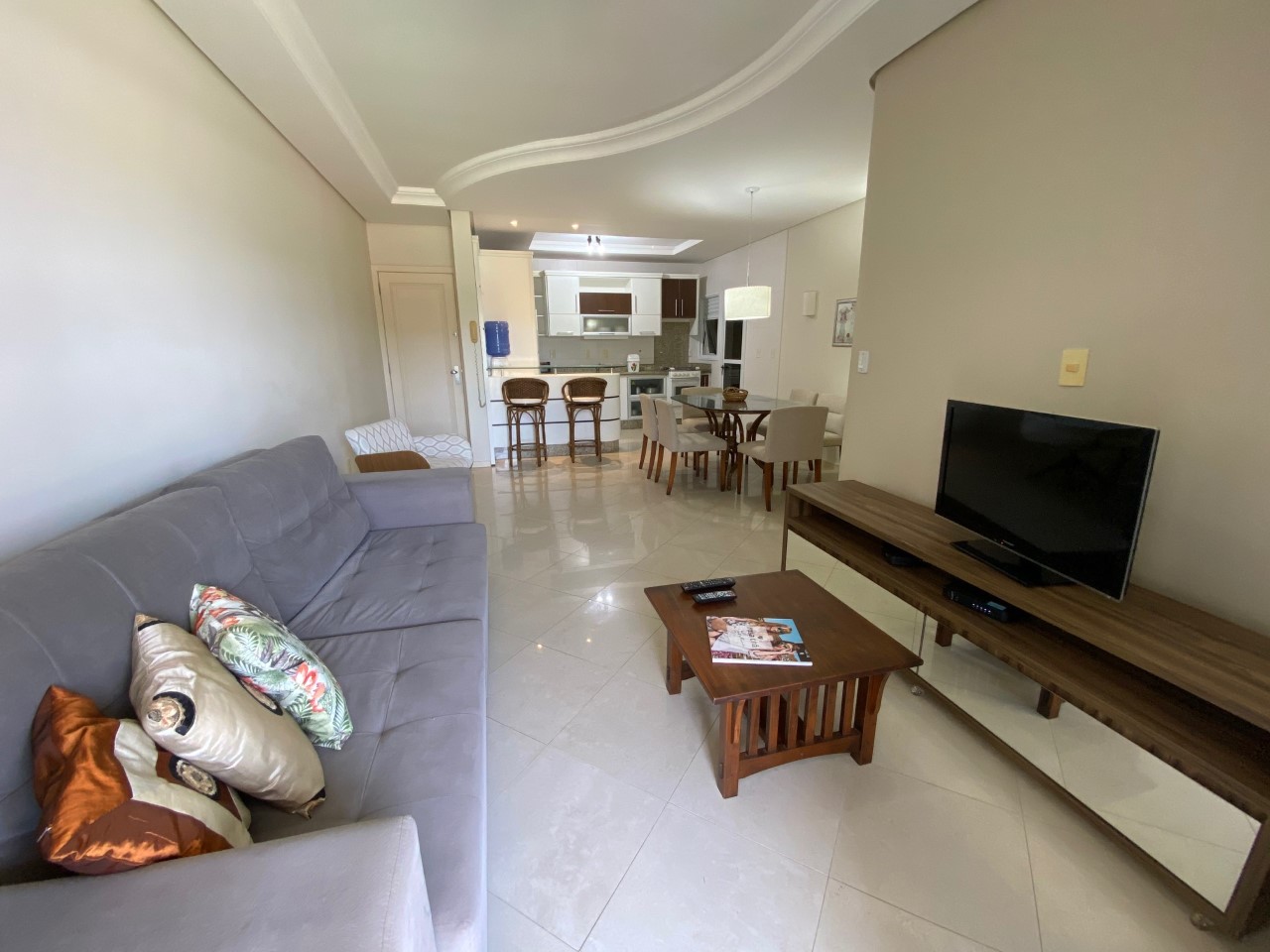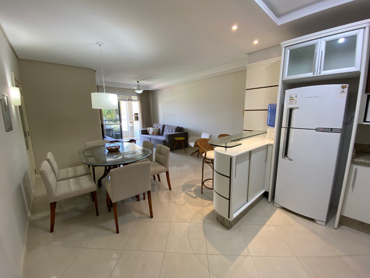 Excelente apartamento de 3 dormitórios sendo 1 suíte, internet WIFI, TV a cabo, 3 ar condicionados, ampla sacada com churrasqueira, máquina de lavar roupa e 2 vagas de garagem, localizado num dos locais mais nobres de Jurere Internacional a 250m da praia.