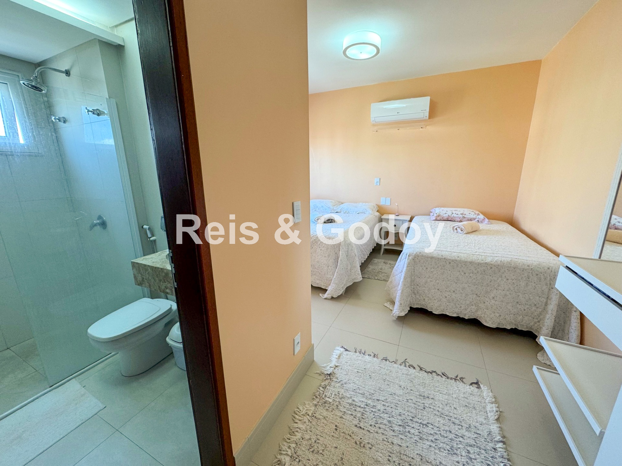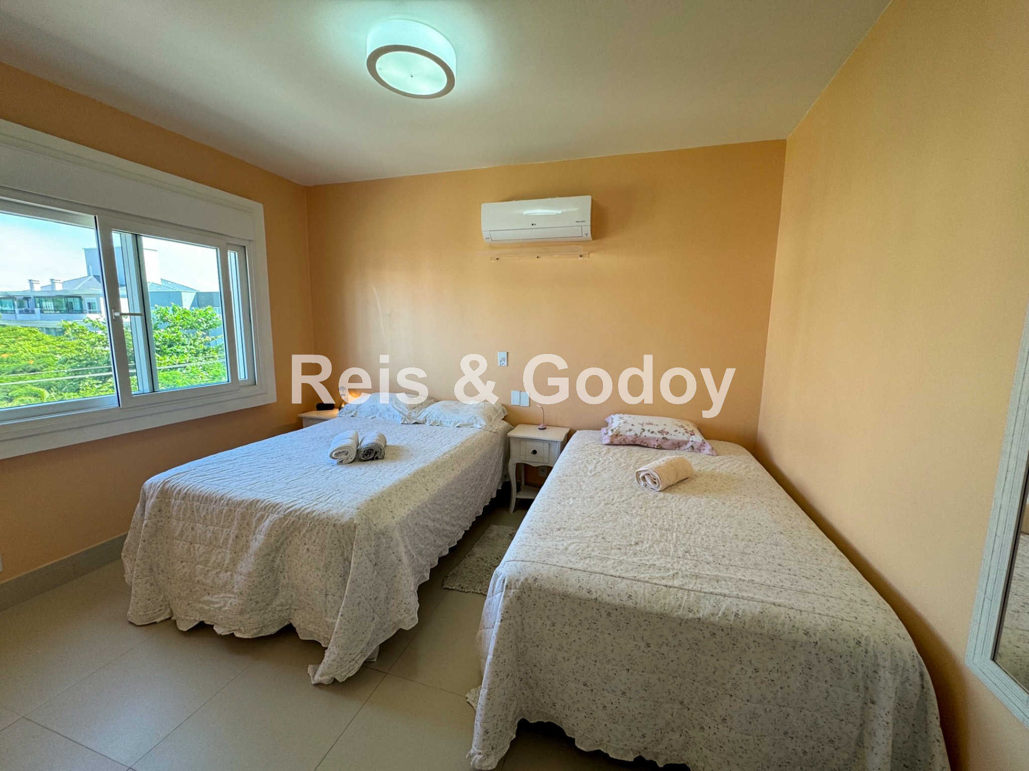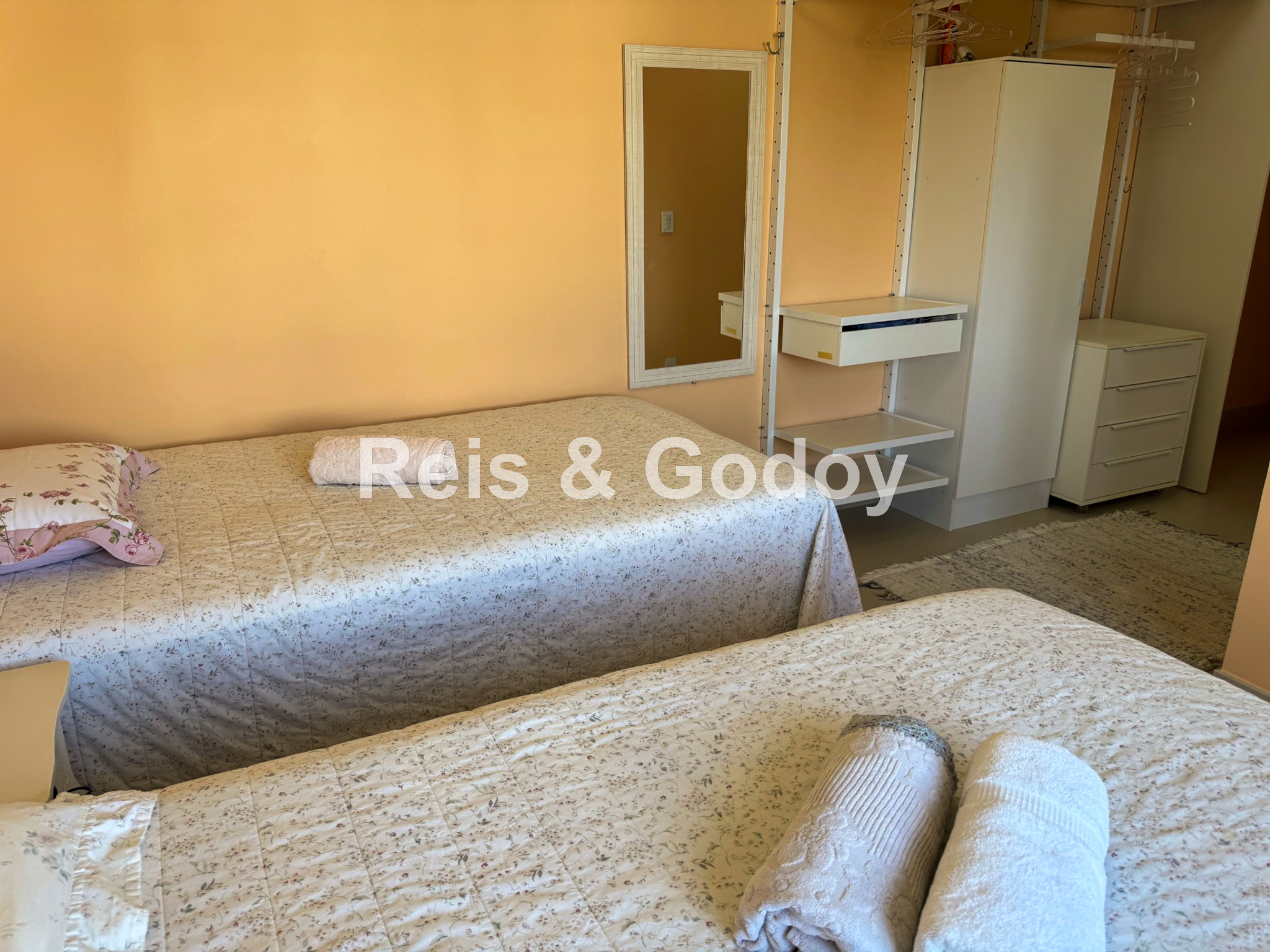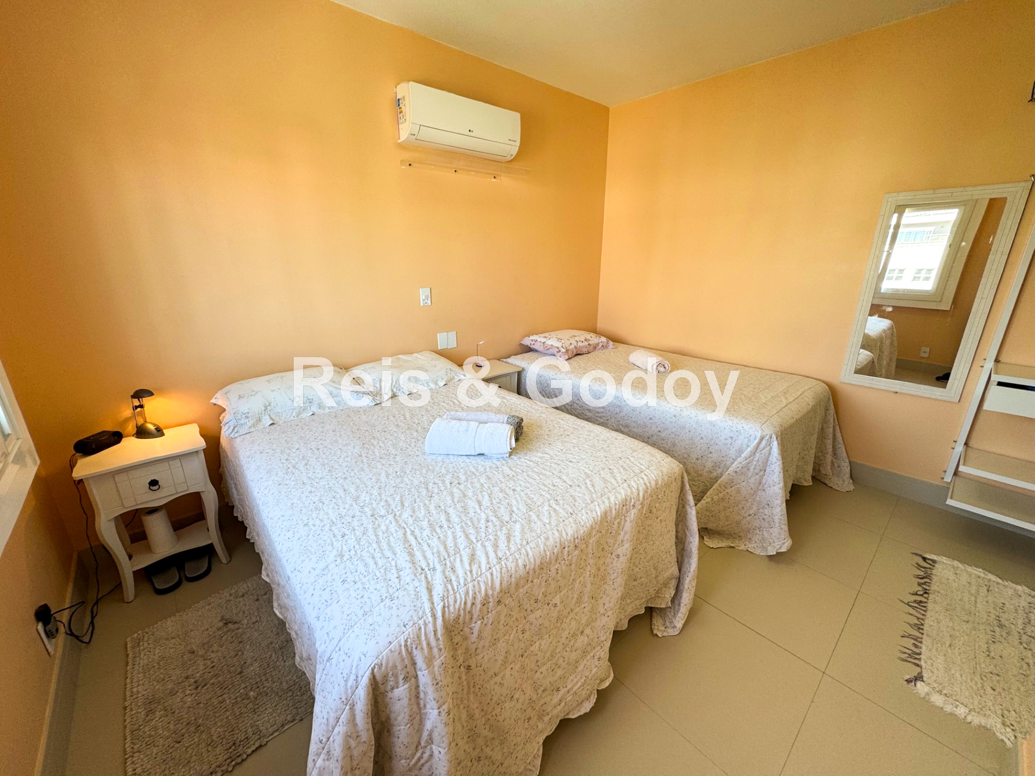 Disposição das camas: 2 camas de casal e 1 cama de solteiro.