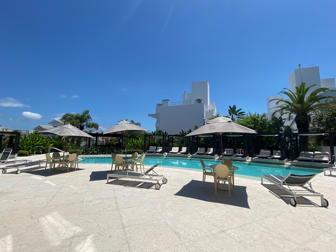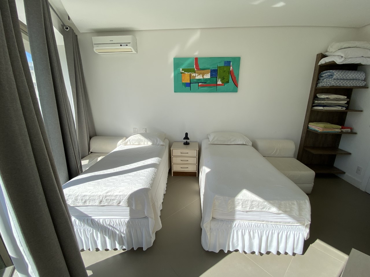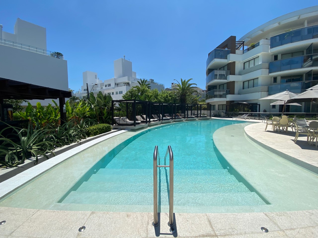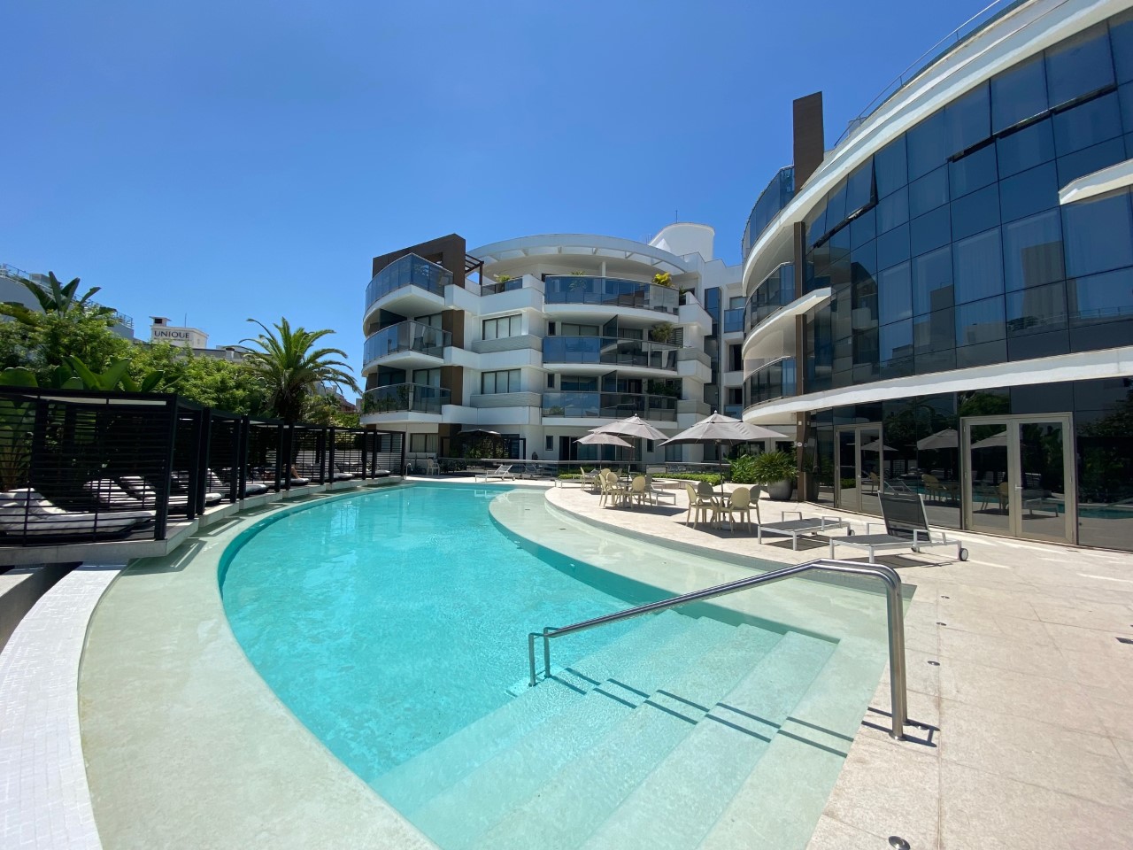 Um dos prédios mais procurados de Jurerê Internacional com infraestrutura de lazer incrível. Apartamento totalmente renovado. Super moderno! São três dormitórios sendo uma suíte, 4 ar condicionados (sala, suíte e dormitórios), amplo terraço, Internet WIFI, TV a cabo, máquina de lavar roupa, máquina de secar roupa, 2 vagas de garagem, piscina maravilhosa e bem próximo à praia .