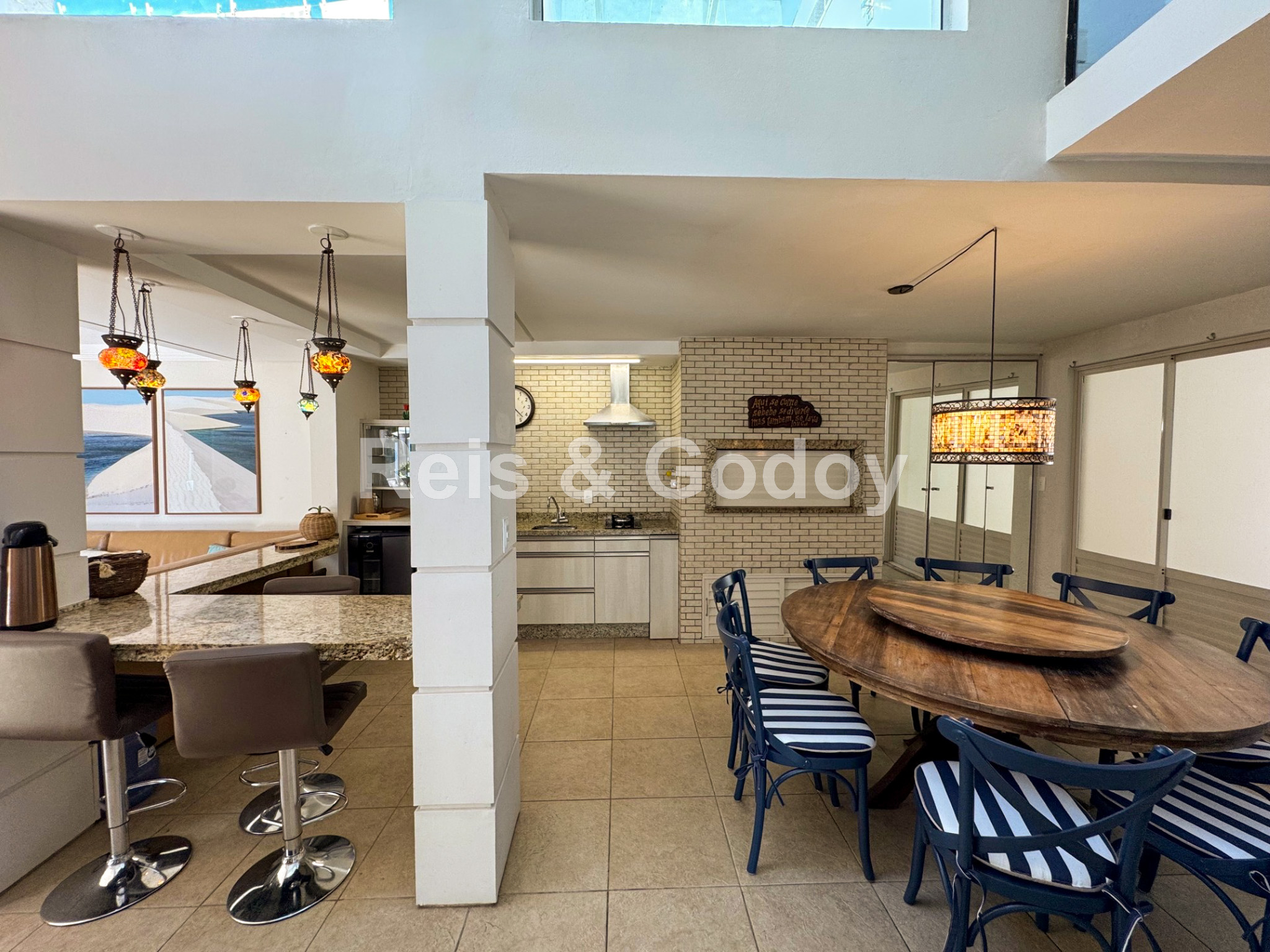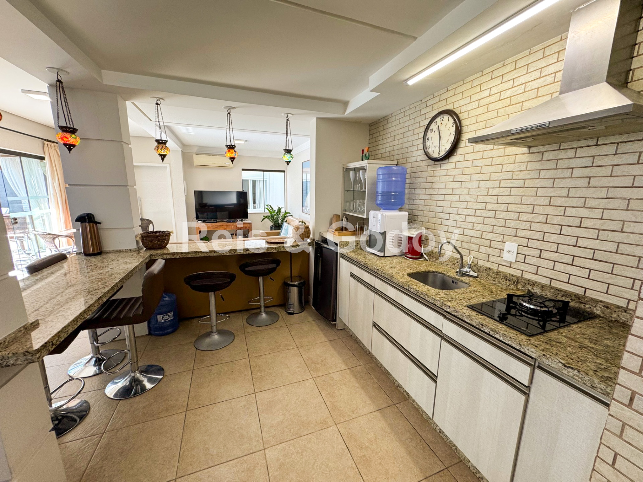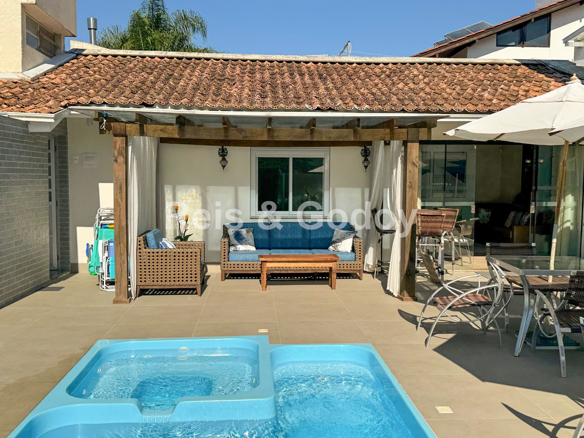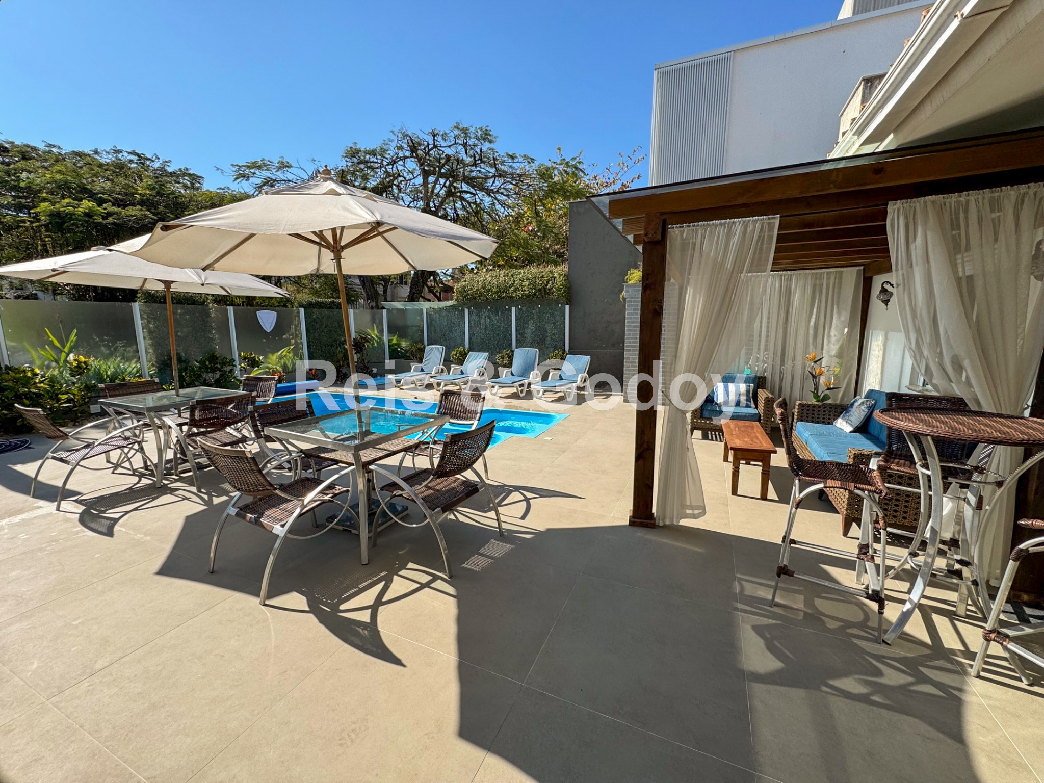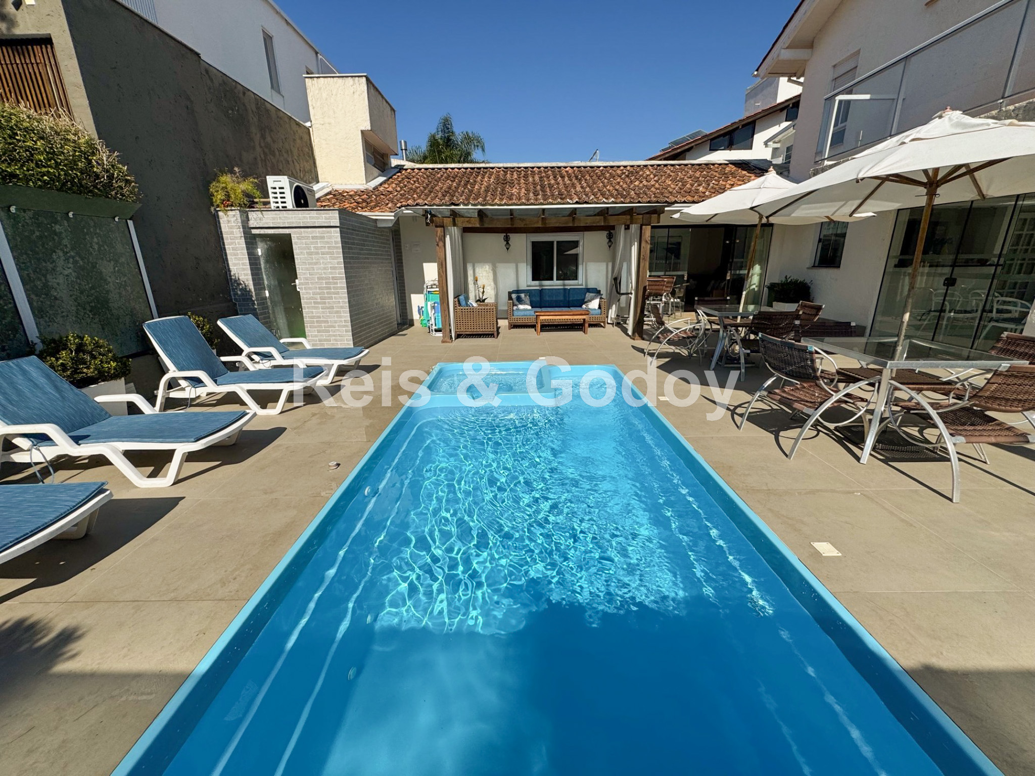 Ar Condicionado, Piscina, TV a Cabo, Internet WIFI, Serviços de Streaming, Alarme, Churrasqueira, Máquina de Lavar Roupa, Máquina de Secar Roupa, Máquina de Lavar Louça, Microondas, 2 Geladeiras, Forno Elétrico, Fogão, Cafeteira, Cadeiras de Praia, Guarda Sol