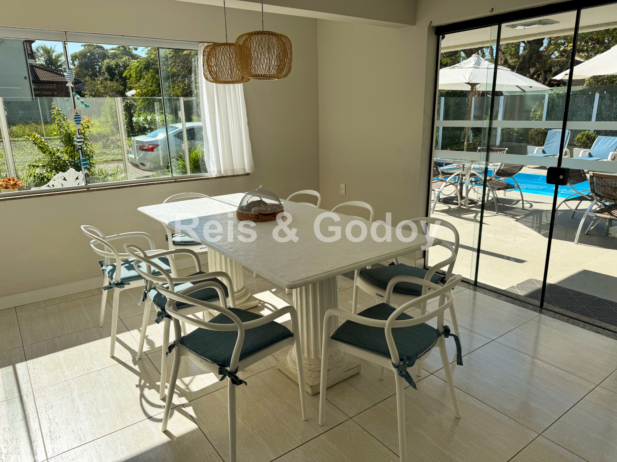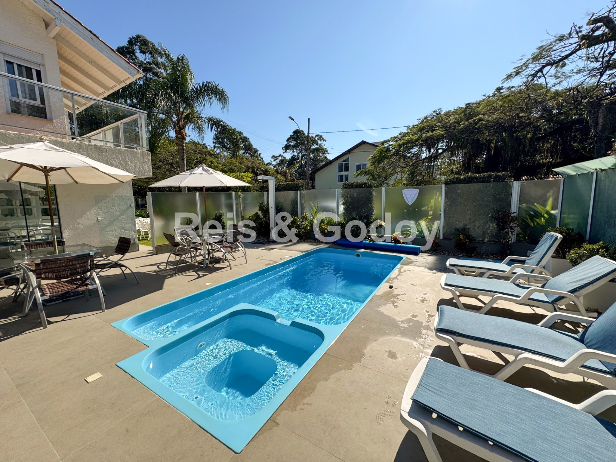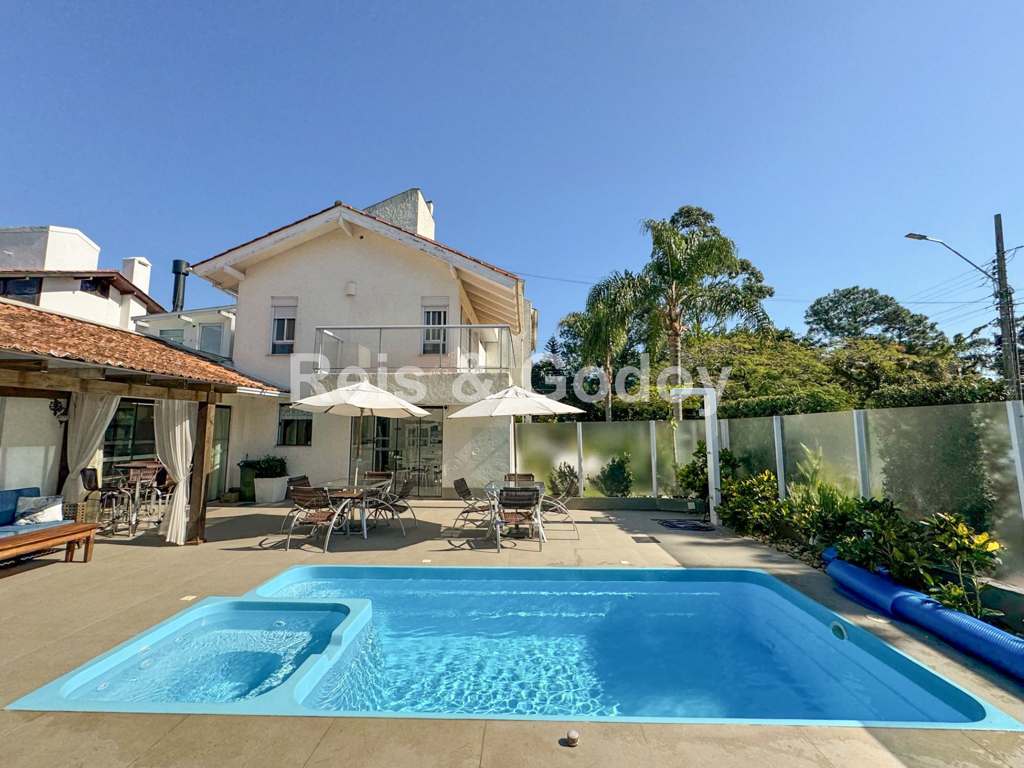 Com certeza uma das casas mais completas de Jurerê Internacional !! Excelente casa com 5 suítes, 9 ar condicionados Split (todos os ambiente e suítes), aquecimento solar, piscina, churrasqueira, Internet WIFI alta velocidade, TV a cabo, TVs em todas as suítes, cozinha completa, geladeira, freezer, máquina de lavar roupa, máquina de secar roupa, máquina de lavar louça e 2 vagas de garagem. Localização excelente a 350m da praia em frente a área verde.