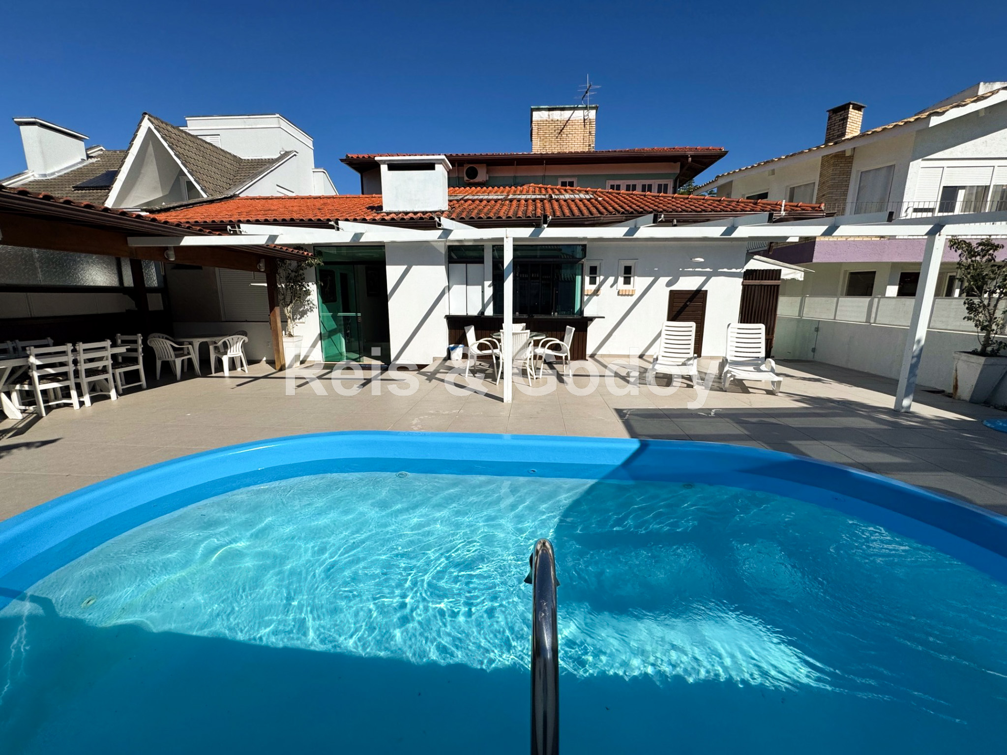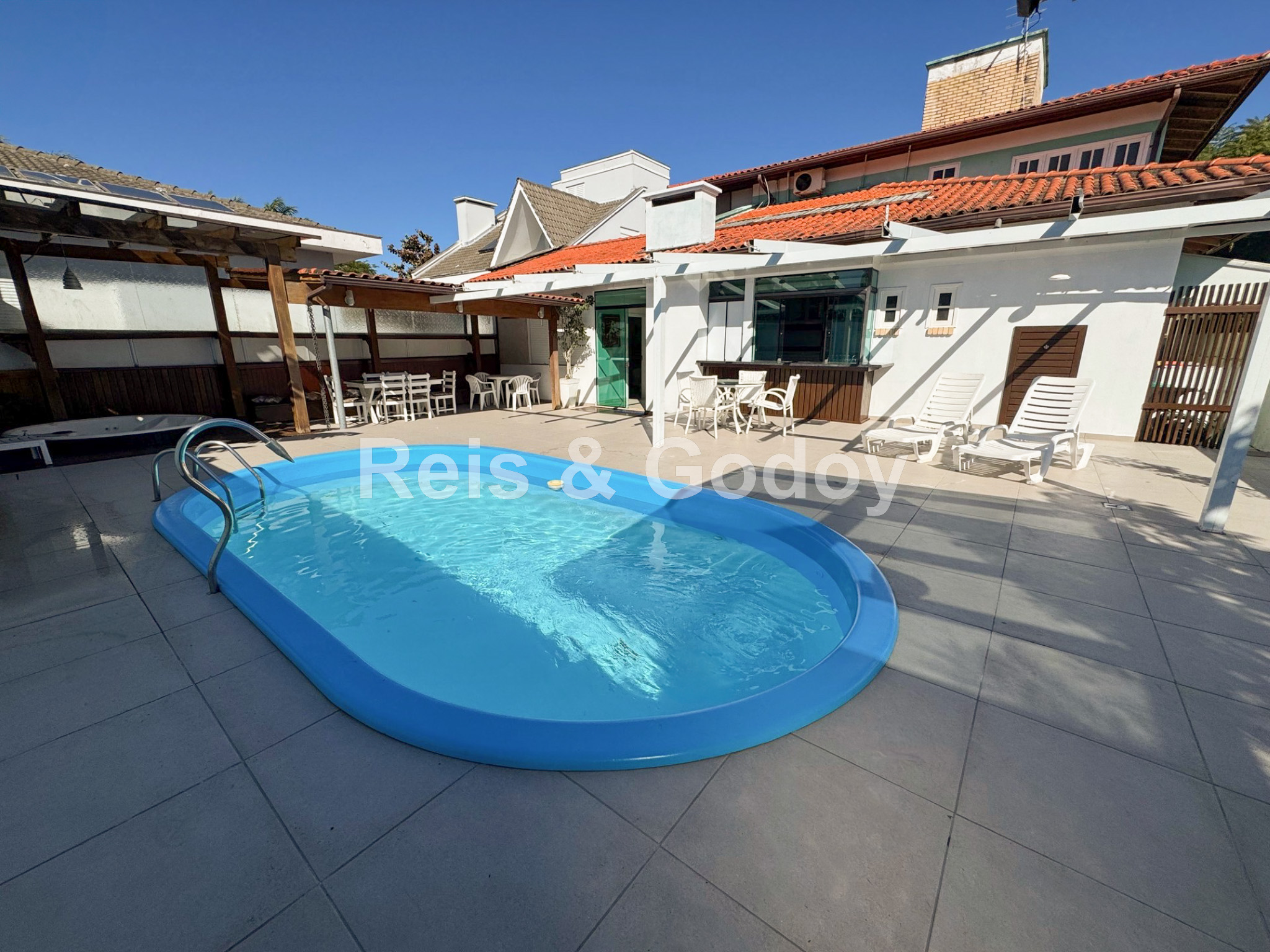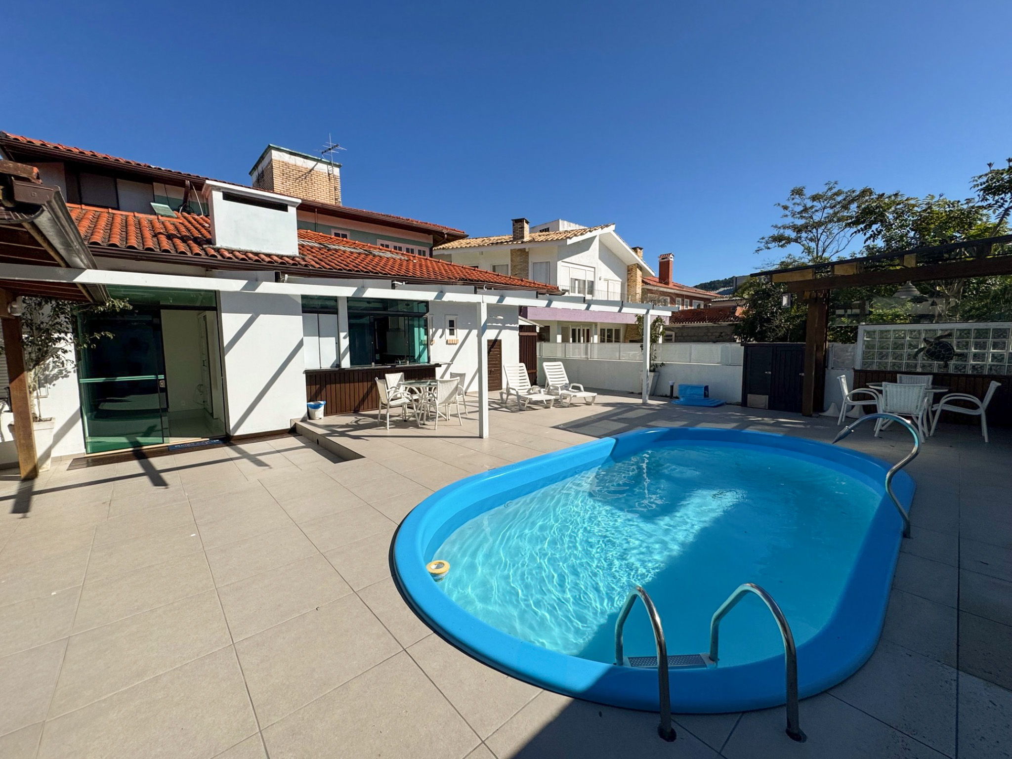 Casa confortável com excelente área de lazer. São 4 dormitórios sendo 2 suítes, dependência de empregada completa, 7 ar condicionados (suítes, dormitórios, sala, cozinha), internet WIFI, TV a cabo, suíte master com closed e hidromassagem, churrasqueira, SPA, piscina, máquina de lavar roupa e 1 vaga de estacionamento.