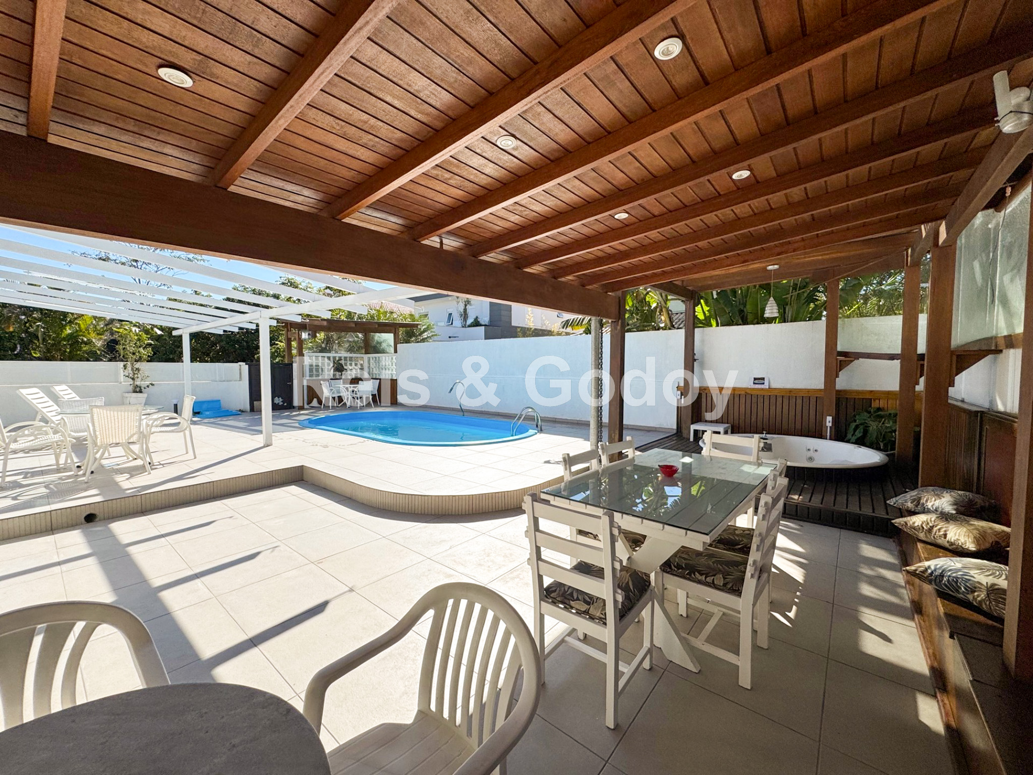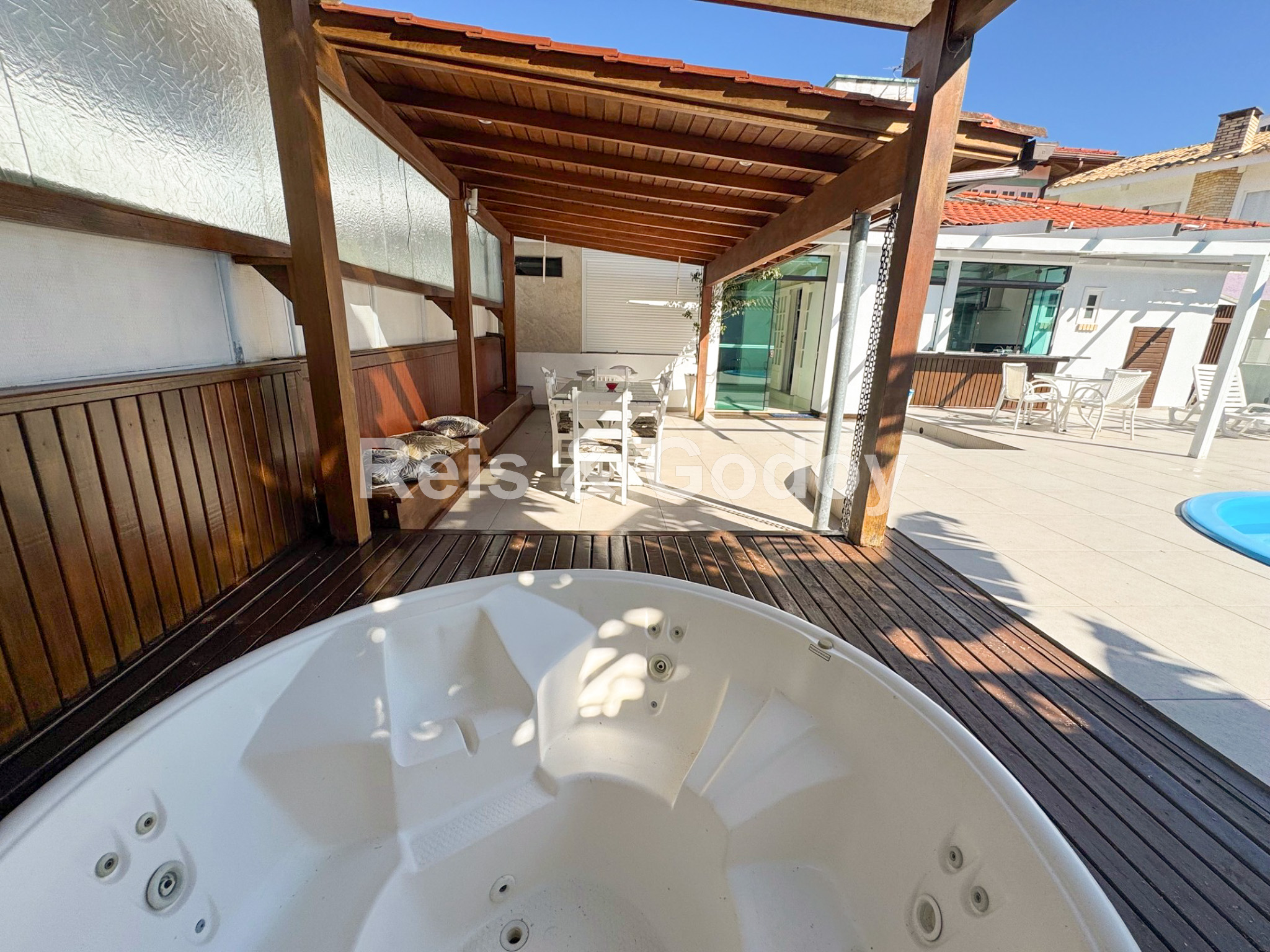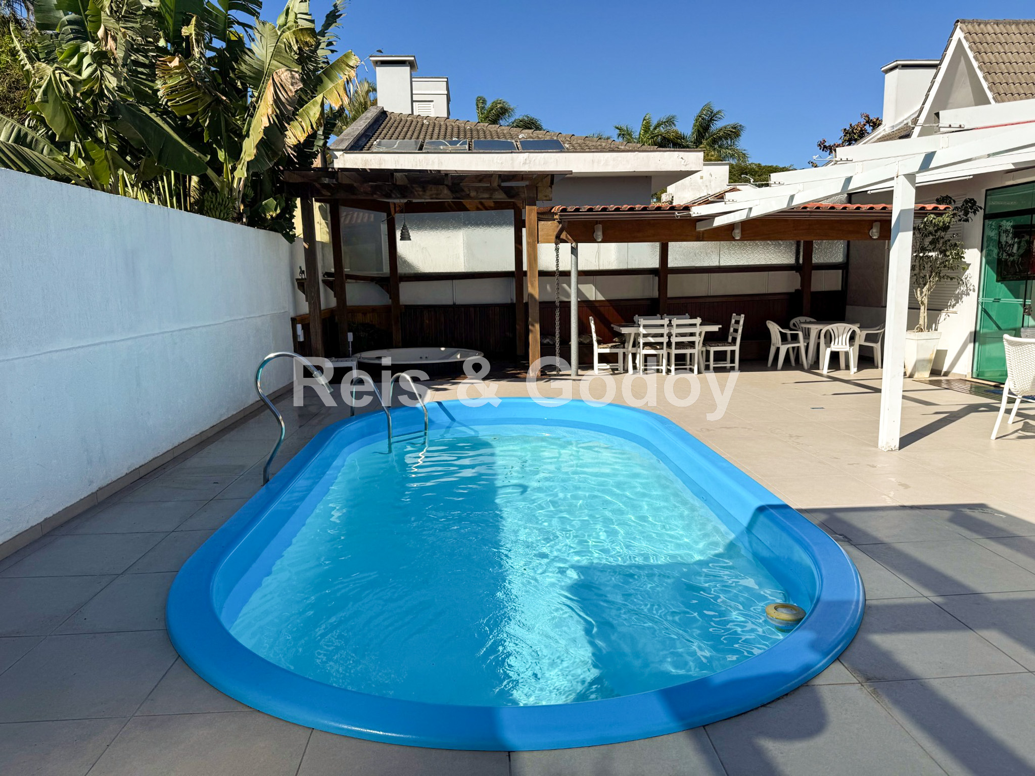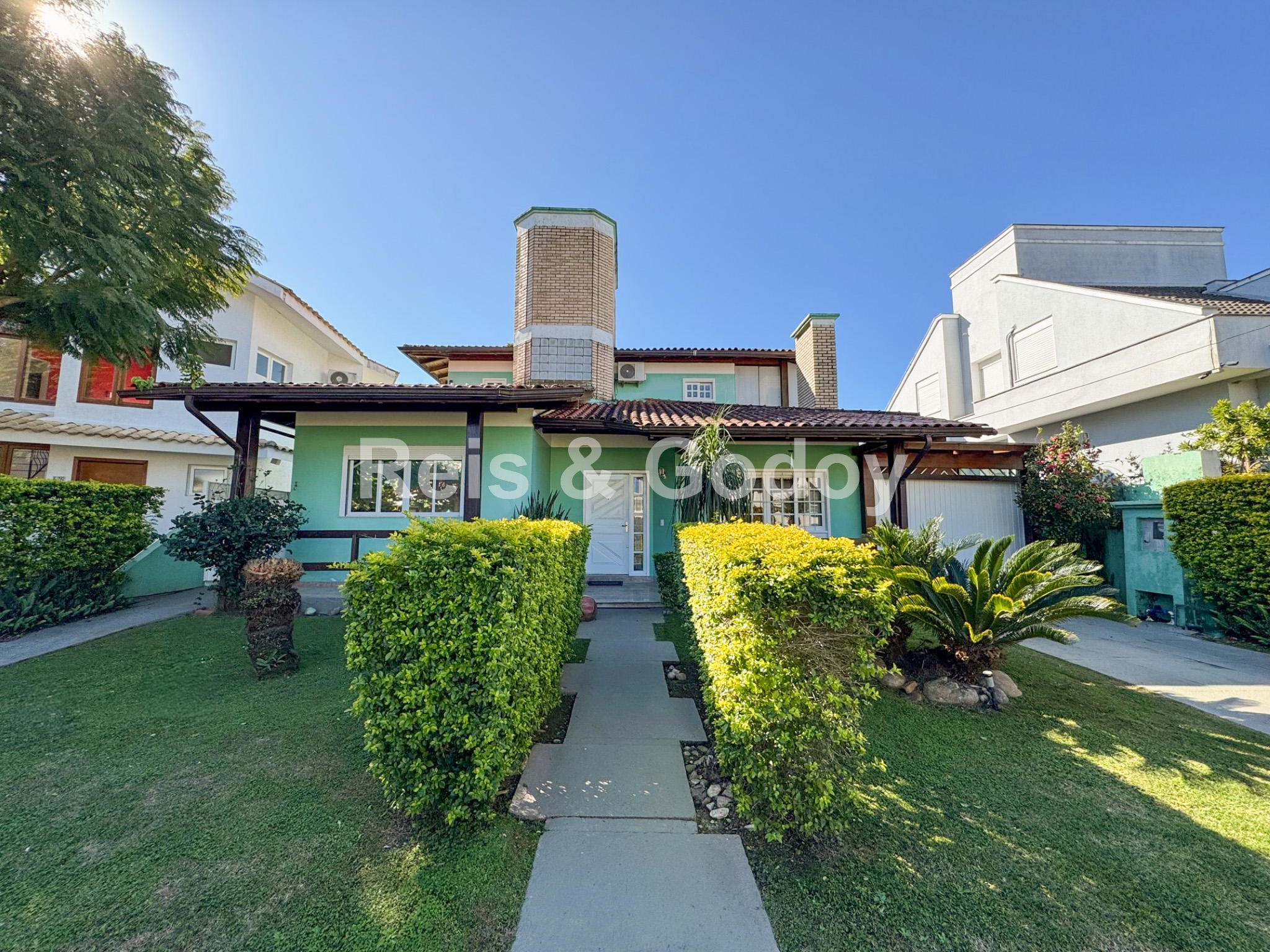 Casa confortável com excelente área de lazer. São 4 dormitórios sendo 2 suítes, dependência de empregada completa, 7 ar condicionados (suítes, dormitórios, sala, cozinha), internet WIFI, TV a cabo, suíte master com closed e hidromassagem, churrasqueira, SPA, piscina, máquina de lavar roupa e 1 vaga de estacionamento.