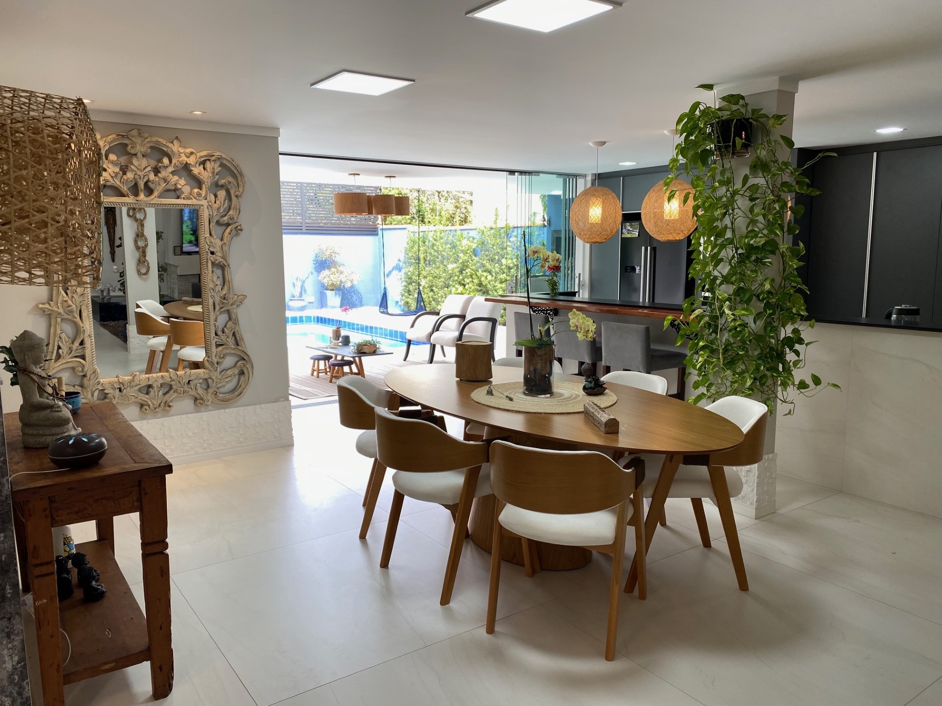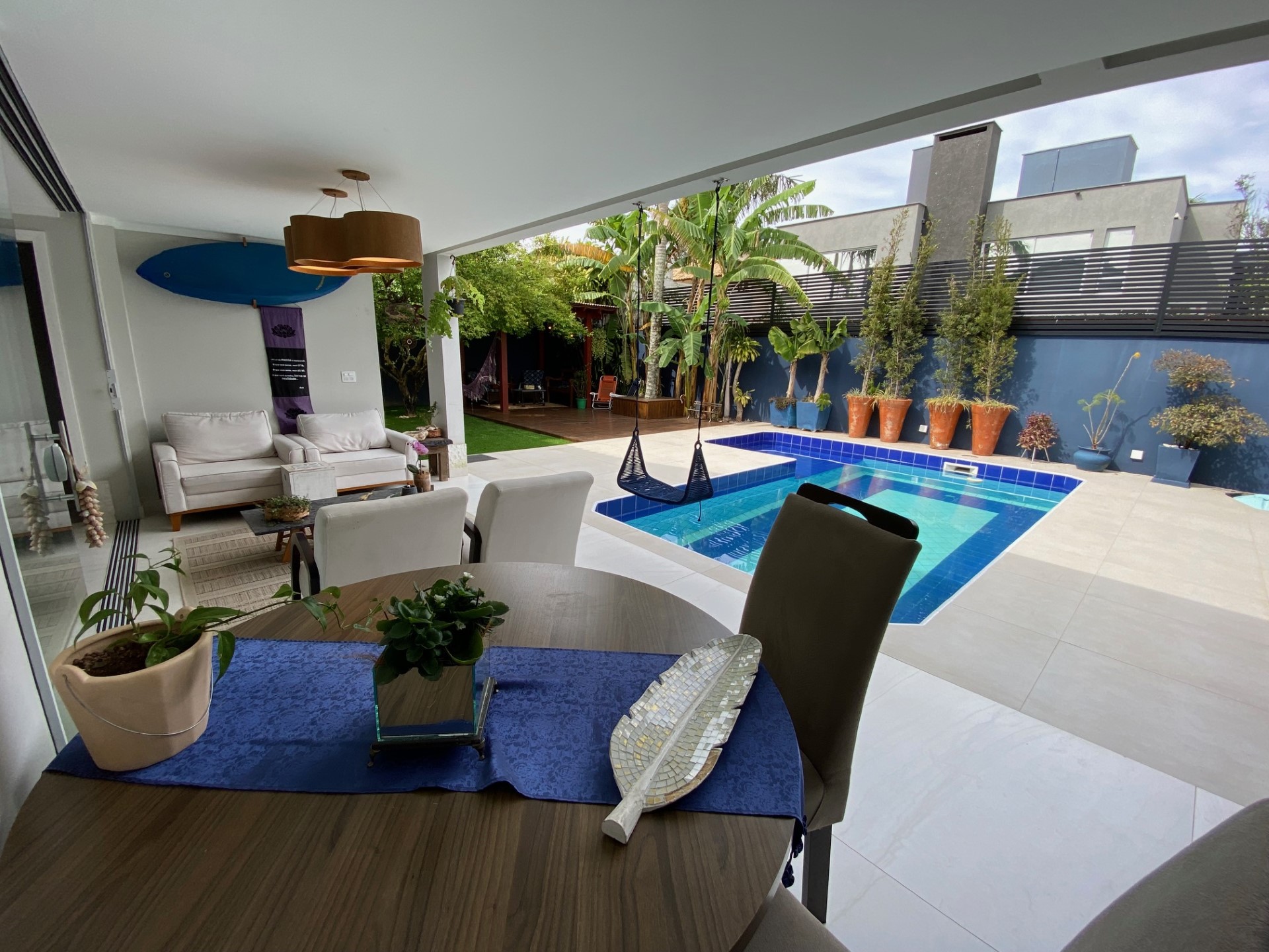 Piscina, Ar Condicionado, Internet WIFI, Churrasqueira, Microondas, Geladeira, Fogão, Forno, Adega, Máquina de Lavar Roupa, Máquina de Secar Roupa