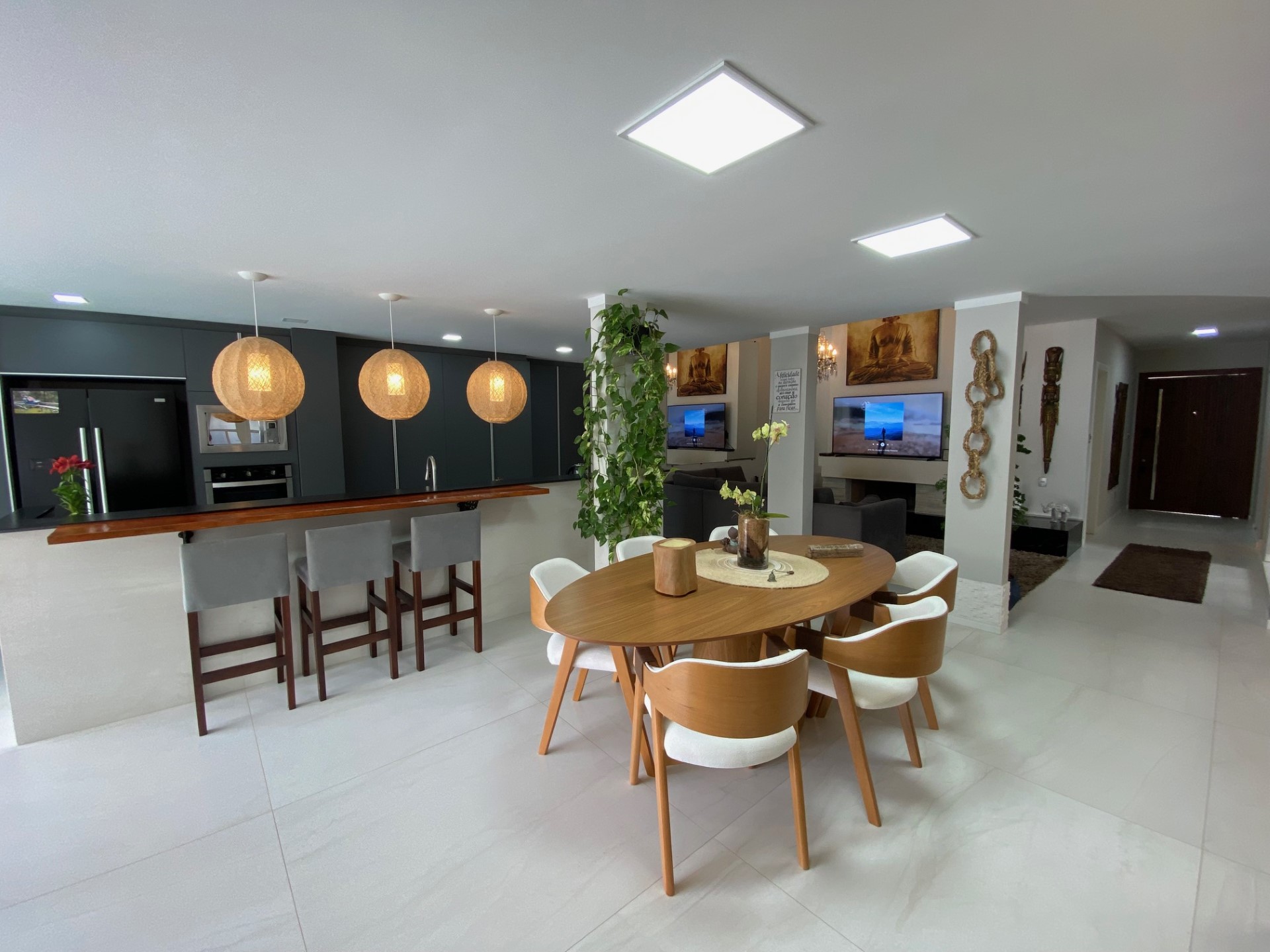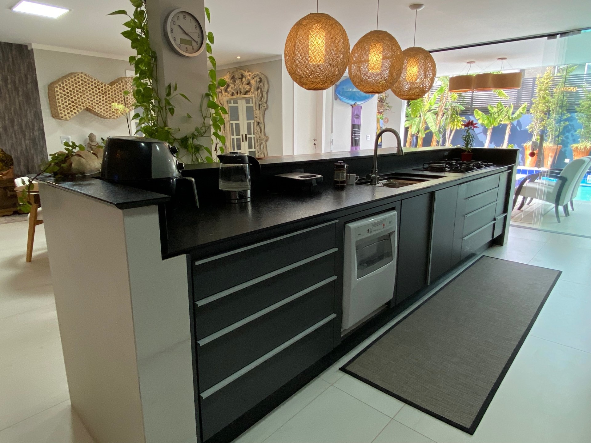 Modernidade e conforto em Jurere Internacional! Impecável em todos os detalhes. Casa com 3 dormitórios sendo 1 suíte (dois quartos no térreo facilitando para pessoas com problemas de locomoção) , lavabo, ar condicionado SPLIT, Internet WIFI de alta velocidade, Smart TV a cabo, adega, cozinha super equipada máquina de lavar roupa, máquina de secar roupa, excelente área de lazer com piscina, gazebo, área gourmet e churrasqueira e 2 vagas de garagem.