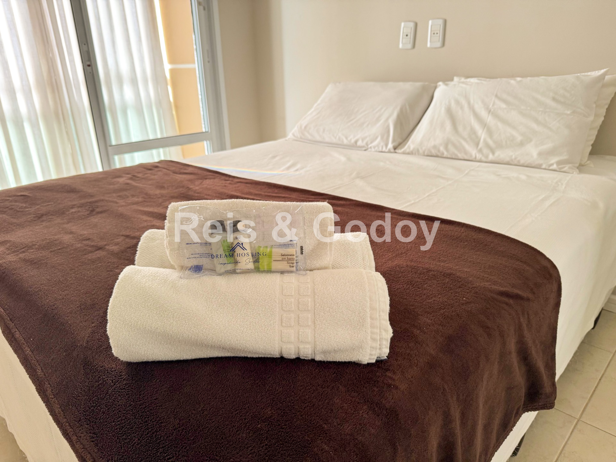 Para sua total comodidade o apartamento oferece enxoval completo de roupa de cama, mesa e banho.