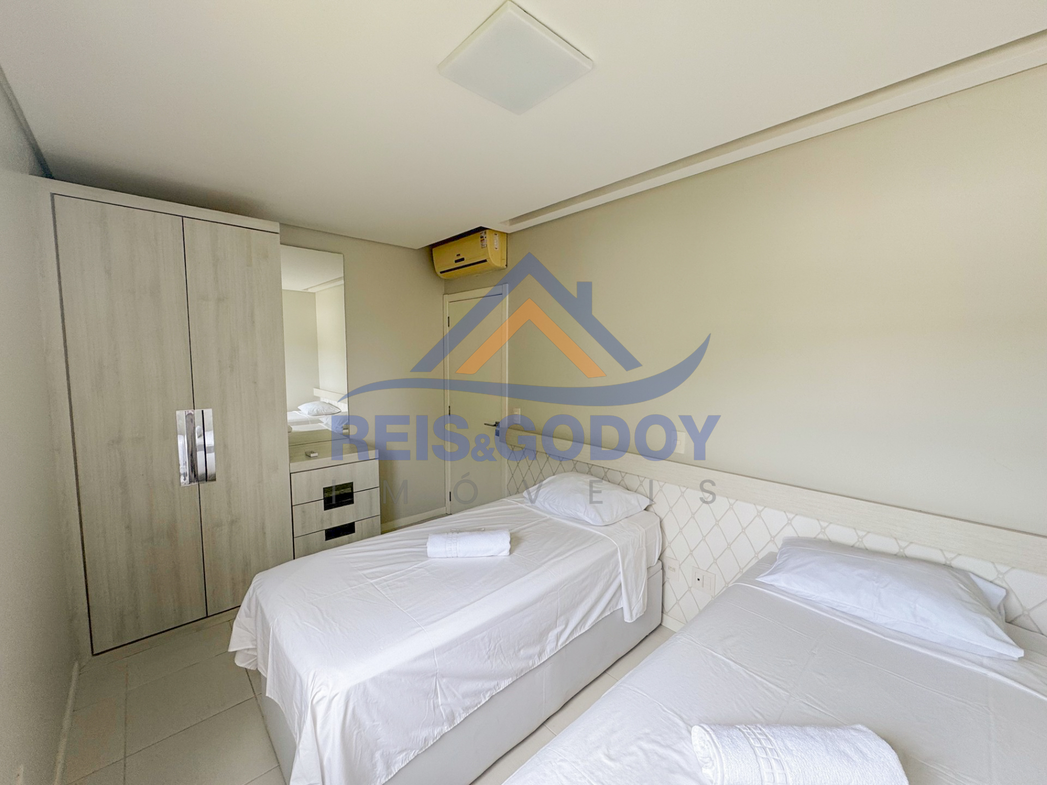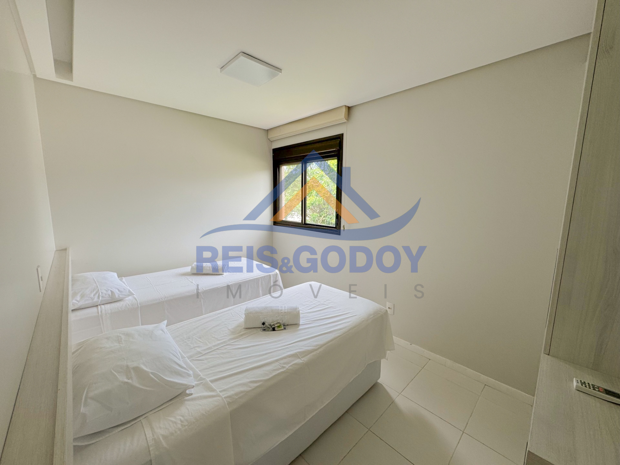 - 1 dormitório com 2 camas de solteiro.