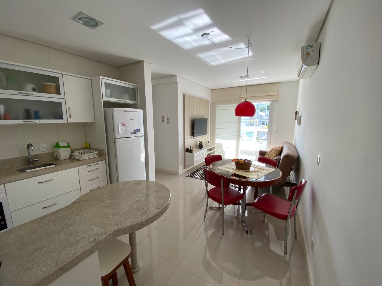 Custo benefício em Jurere. Prédio familiar e tranquilo. Apartamento de dois dormitórios sendo 1 suíte, ar condicionado SPLIT nos quartos e na sala, internet , churrasqueira na sacada, cozinha completa, sol da manhã, máquina de lavar roupa, máquina de secar roupa, piscina e 1 vaga de garagem.