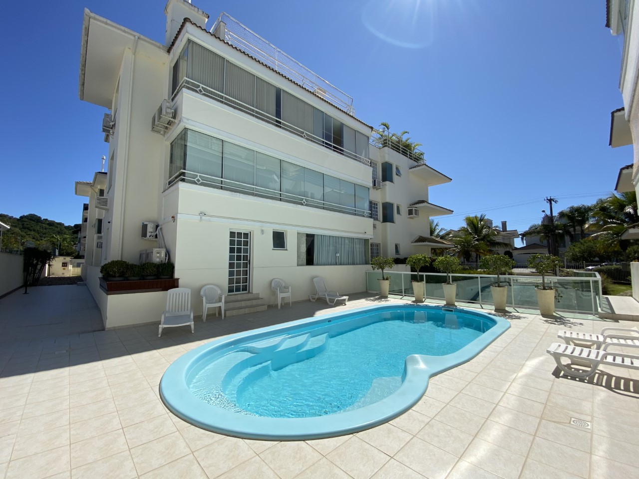 Venham desfrutar as maravilhas de Jurere Internacional num dos melhores condomínios do bairro. Excelente apartamento com 156m² de área útil, 3 dormitórios sendo 2 suítes, ar condicionado, hidromassagem, excelente terraço com churrasqueira de frente para a principal rua do bairro, ensolarado, internet WIFI, TV a cabo, máquina de lavar roupa, cozinha completa e 2 vagas de garagem. Área de lazer com piscina e localização excelente no ponto mais nobre de Jurere Internacional a 280m da praia.