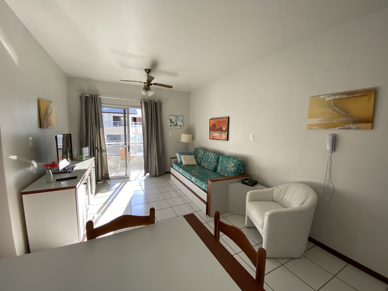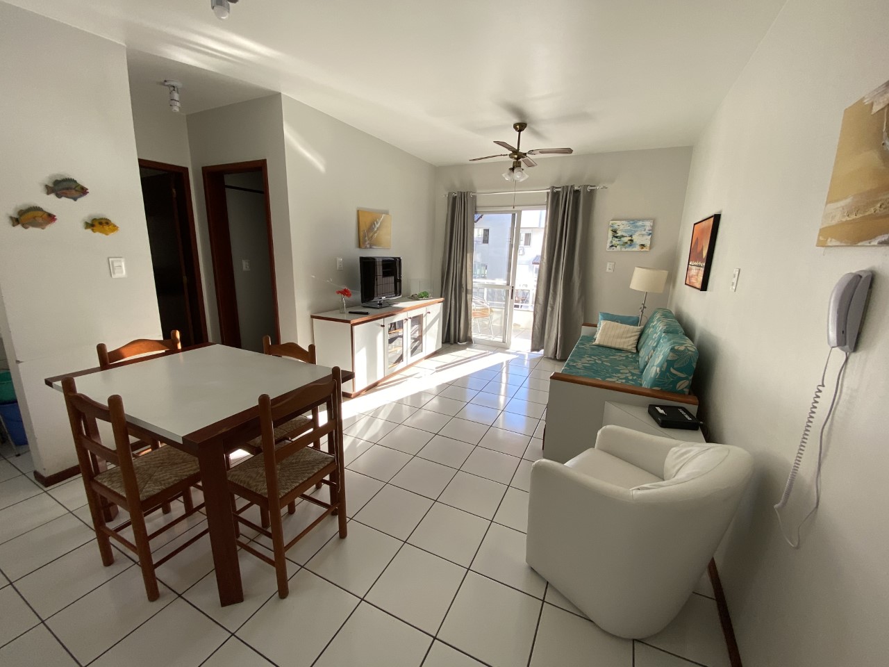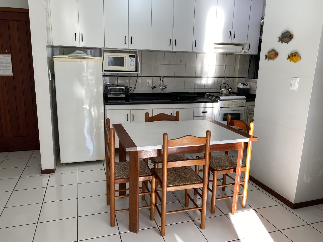 Para sua total comodidade o apartamento oferece enxoval completo de roupa de cama, mesa e banho.
