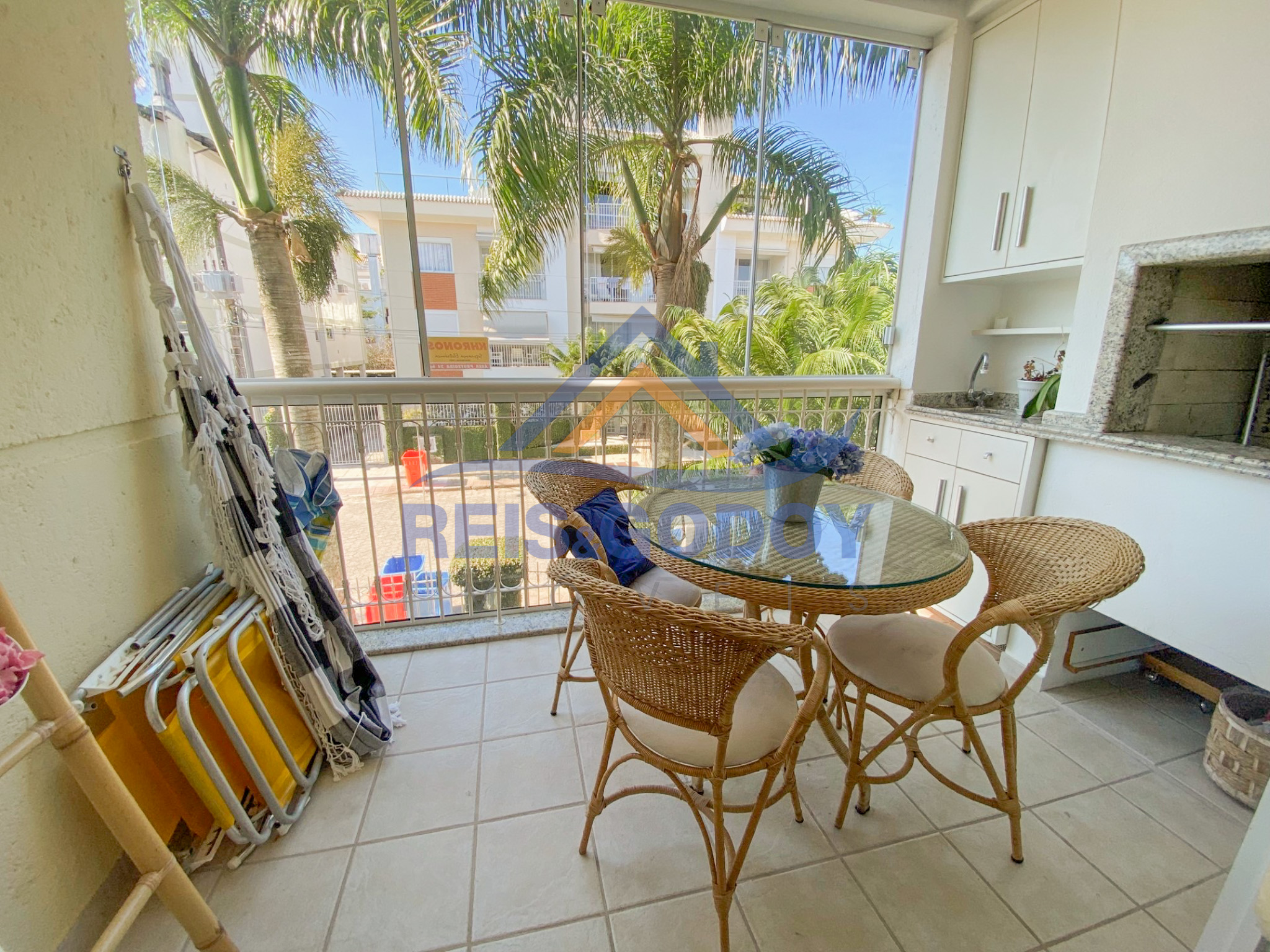 Piscina, Churrasqueira, Ar Condicionado, TV a cabo, Internet WIFI, Microondas, Geladeira, Fogão, Forno, Máquina de Lavar Roupa, Máquina de Secar Roupa, Máquina de Lavar Louça, Cadeiras de Praia, Guarda Sol, Secador de Cabelo