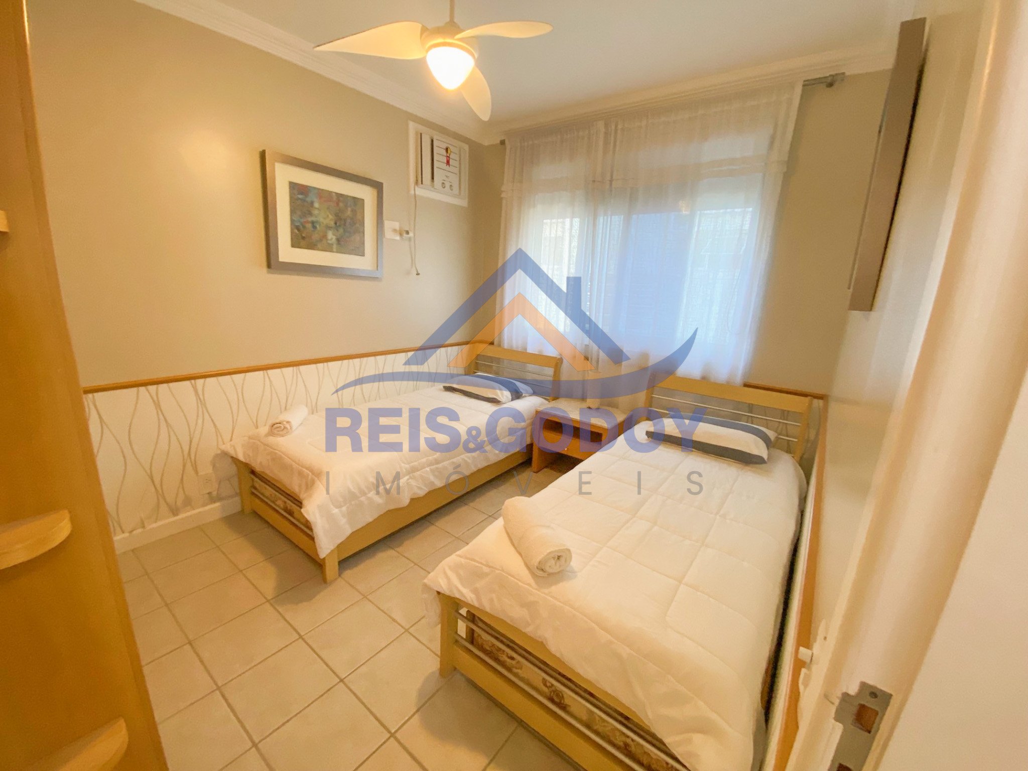 Disposição das camas: 1 cama de casal, 1 cama de solteiro e 1 bicama.