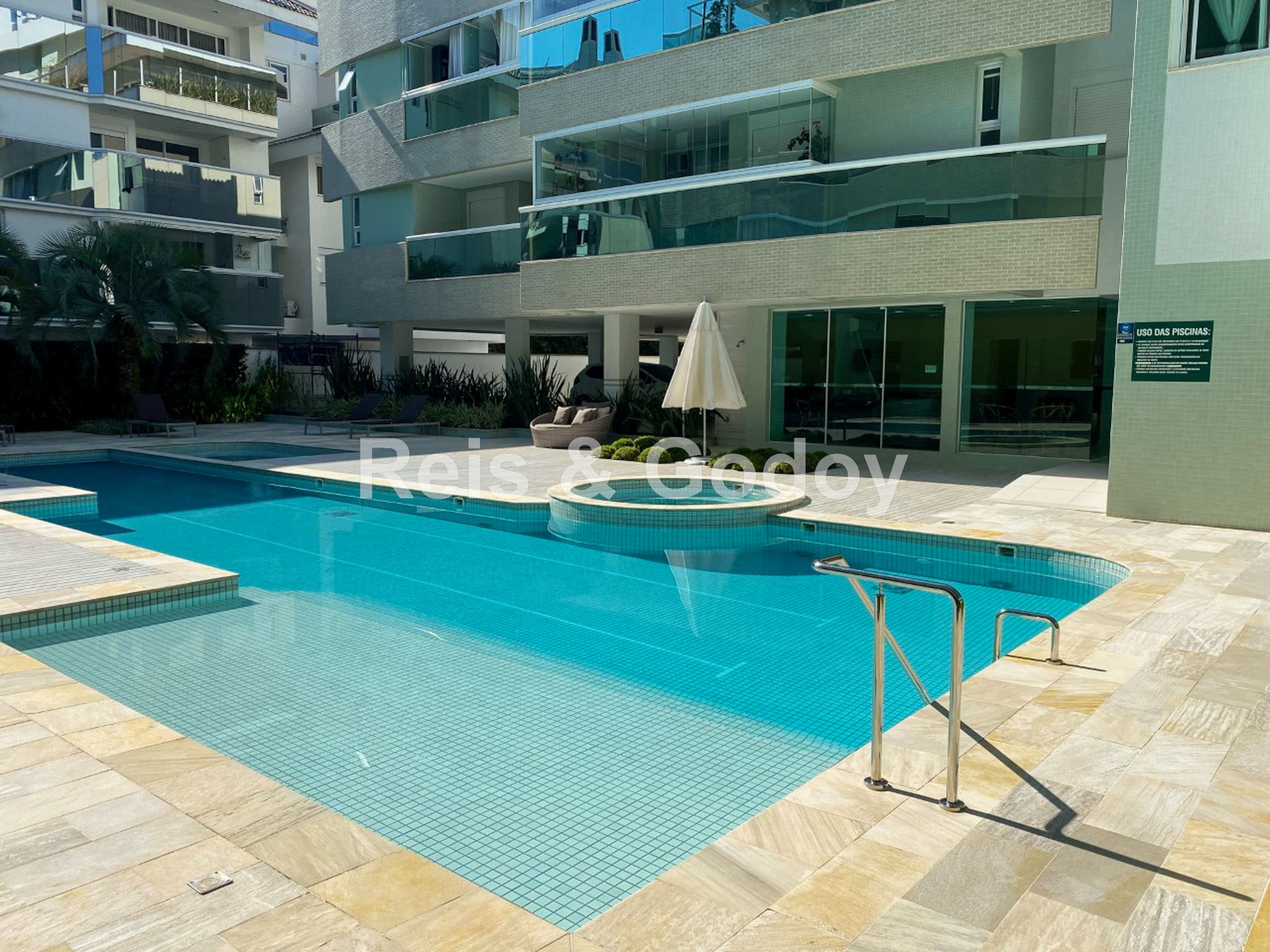 Piscina, Ar Condicionado, Internet WIFI, Churrasqueira, Microondas, Geladeira, Freezer, Fogão, Forno, Máquina de Lavar Louça, Máquina de Lavar Roupa, Máquina de Secar Roupa