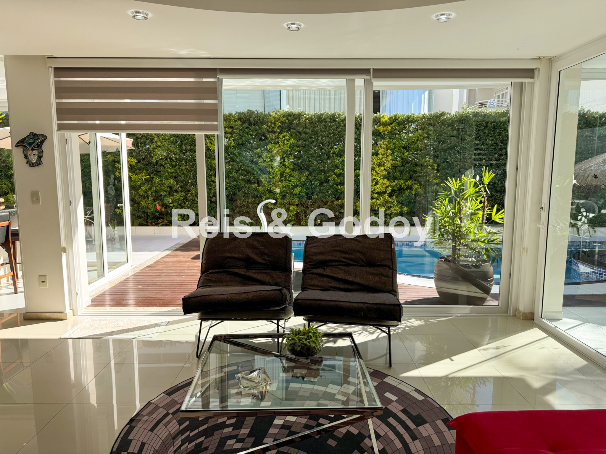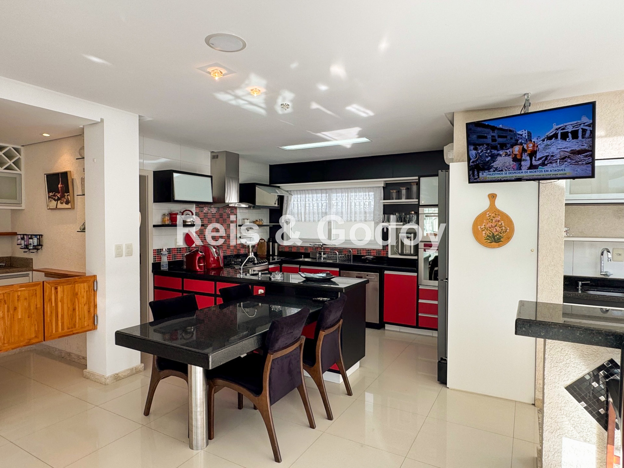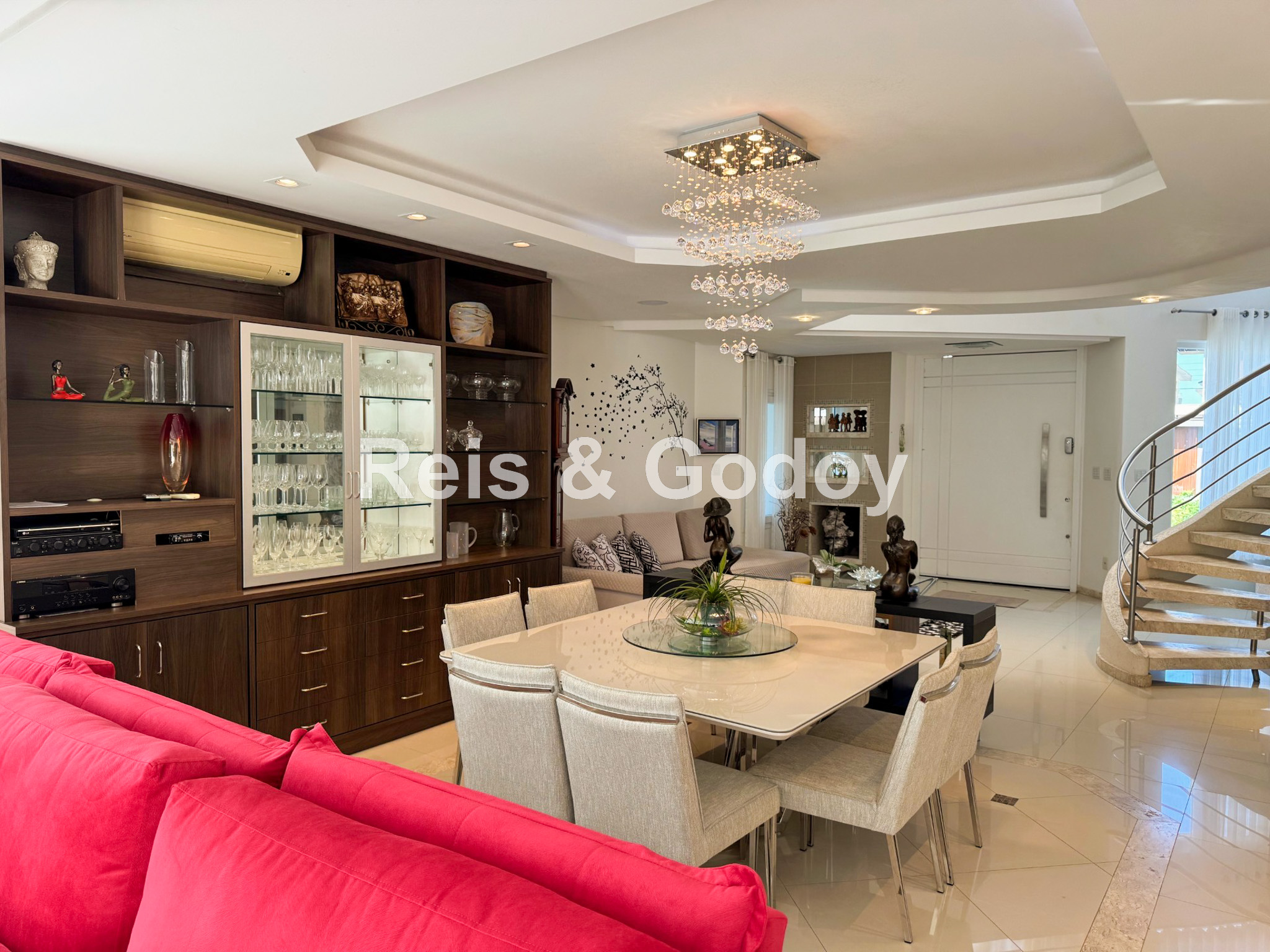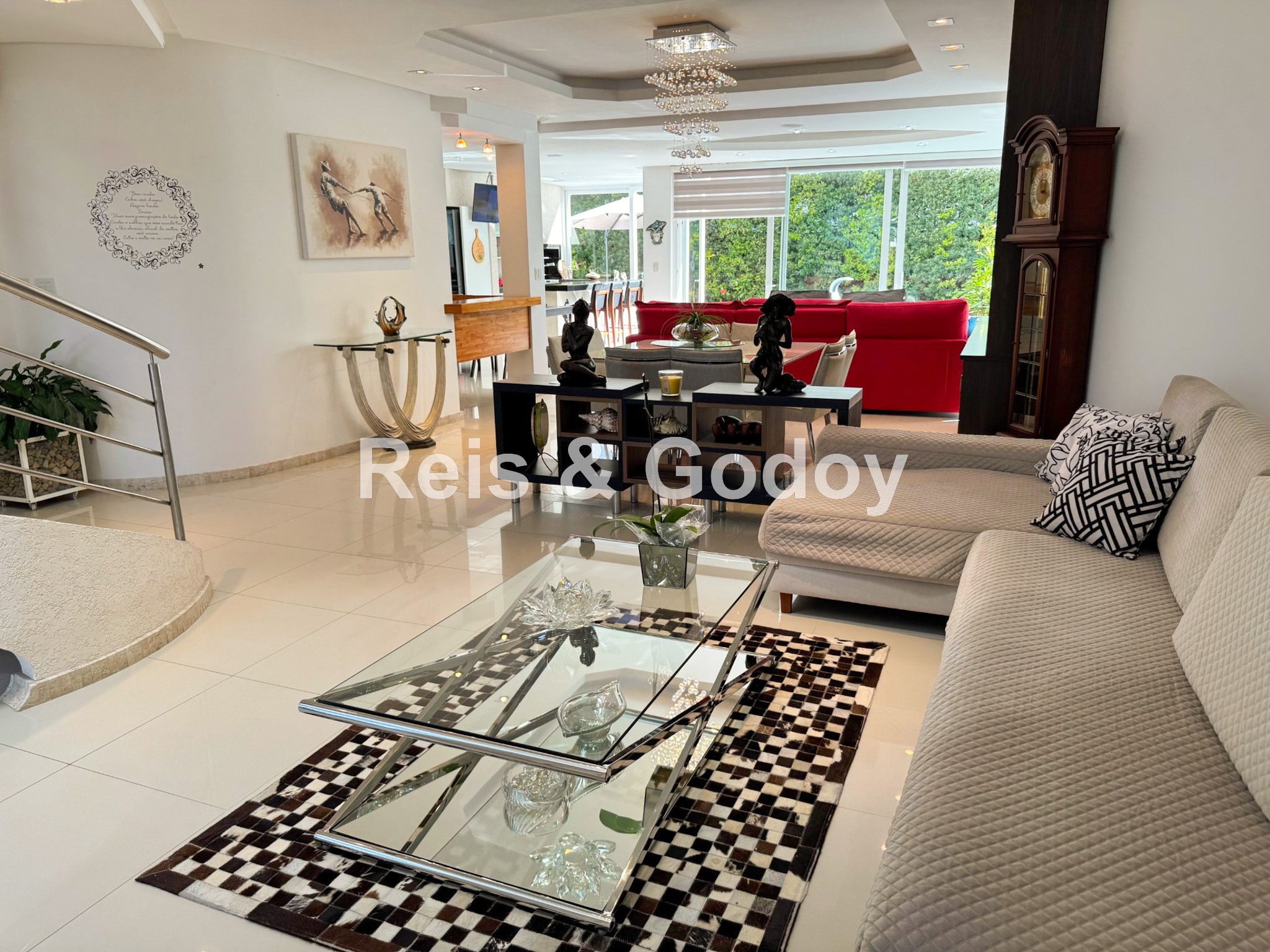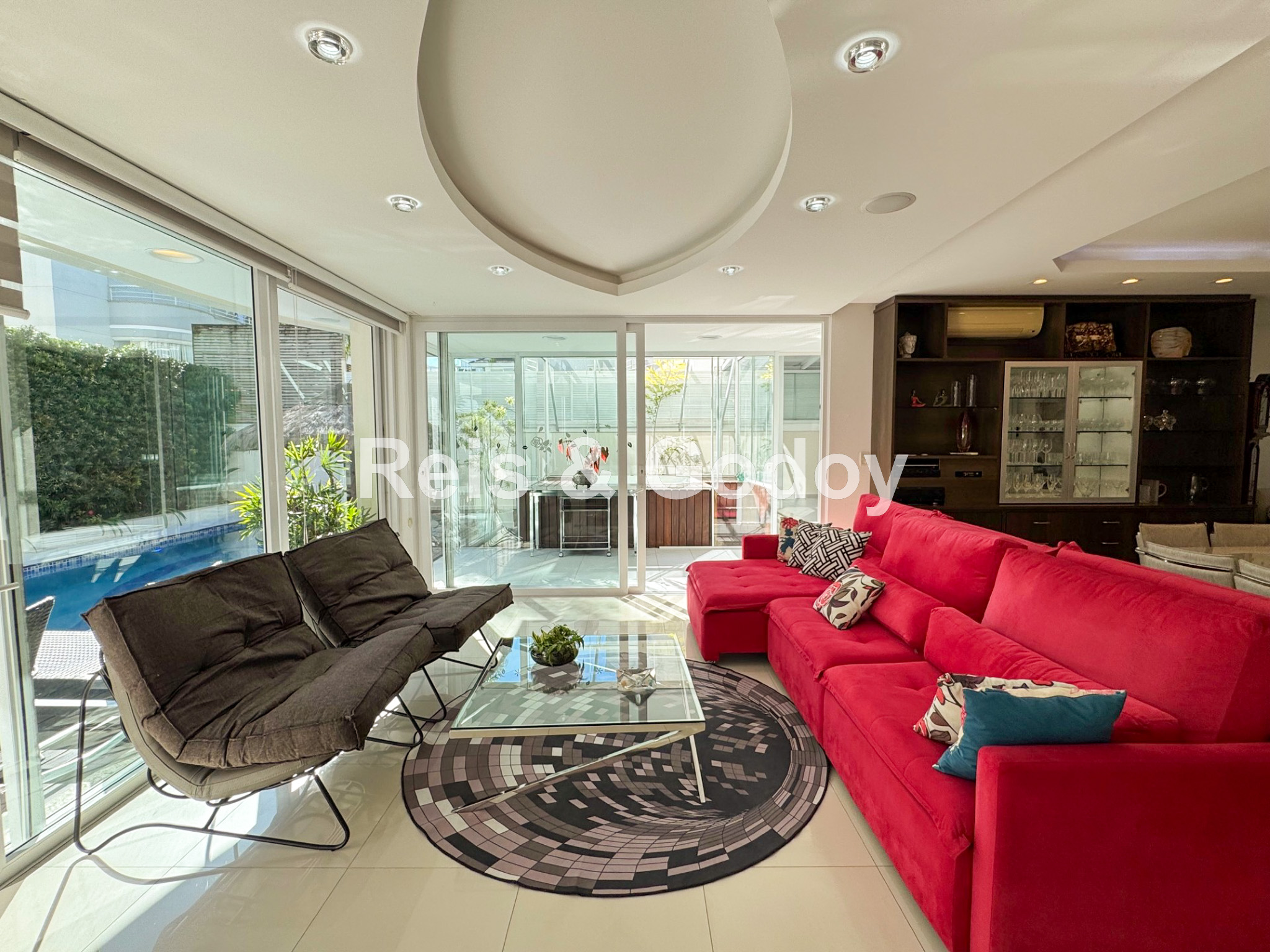 Melhor área de lazer de Jurere Internacional. Linda mansão com 4 suítes (sendo uma no térreo), ar condicionado split em todos os ambientes, área de lazer com piscina, bar molhado, cascata, hidromassagem aquecida e churrasqueira, sala de jogos com mesa de snooker, Internet WIFI, Smart TV, cozinha completa, máquina de lavar roupa, máquina de secar roupa, 2 vagas de garagem e excelente localização em rua tranquila de Jurere Internacional.