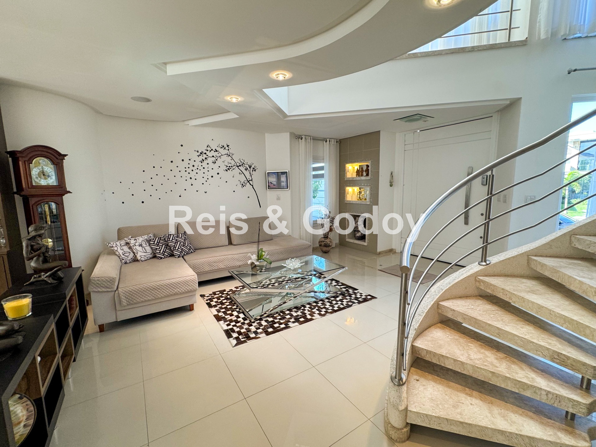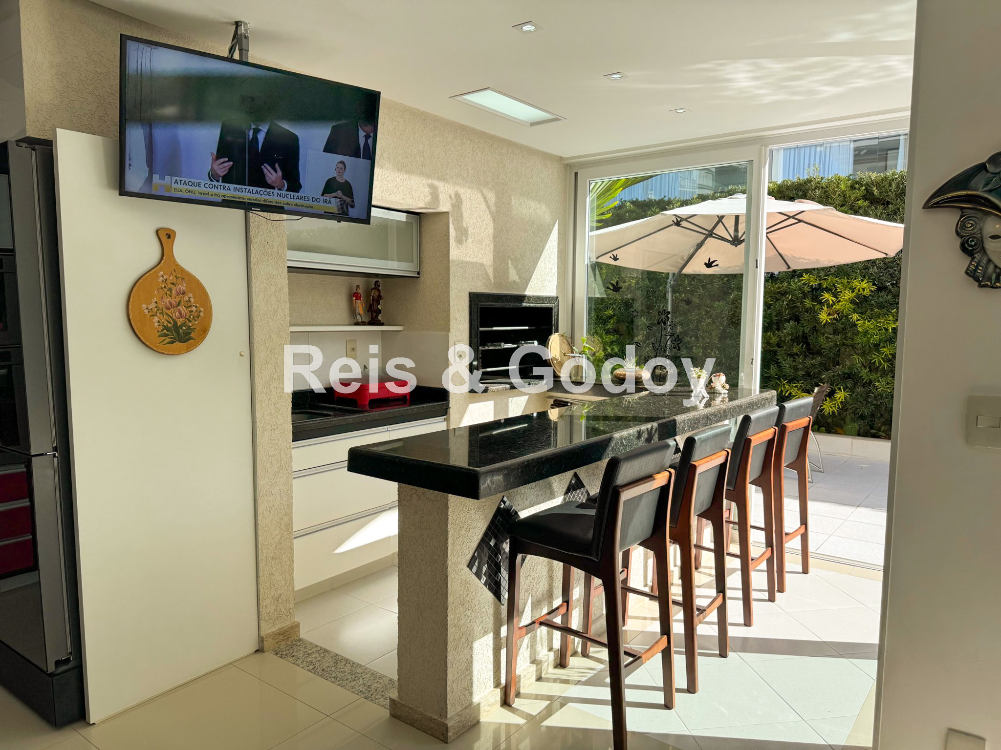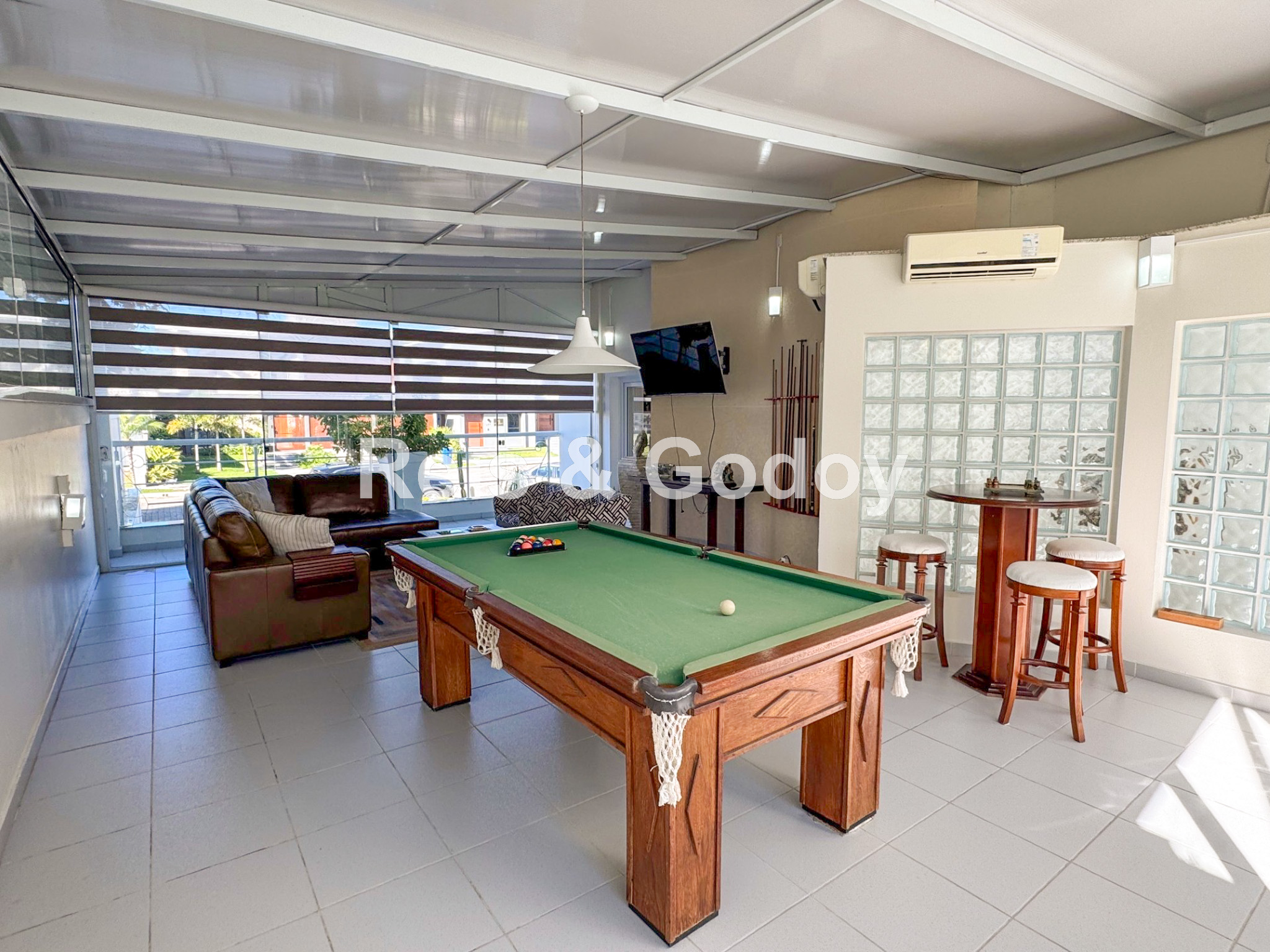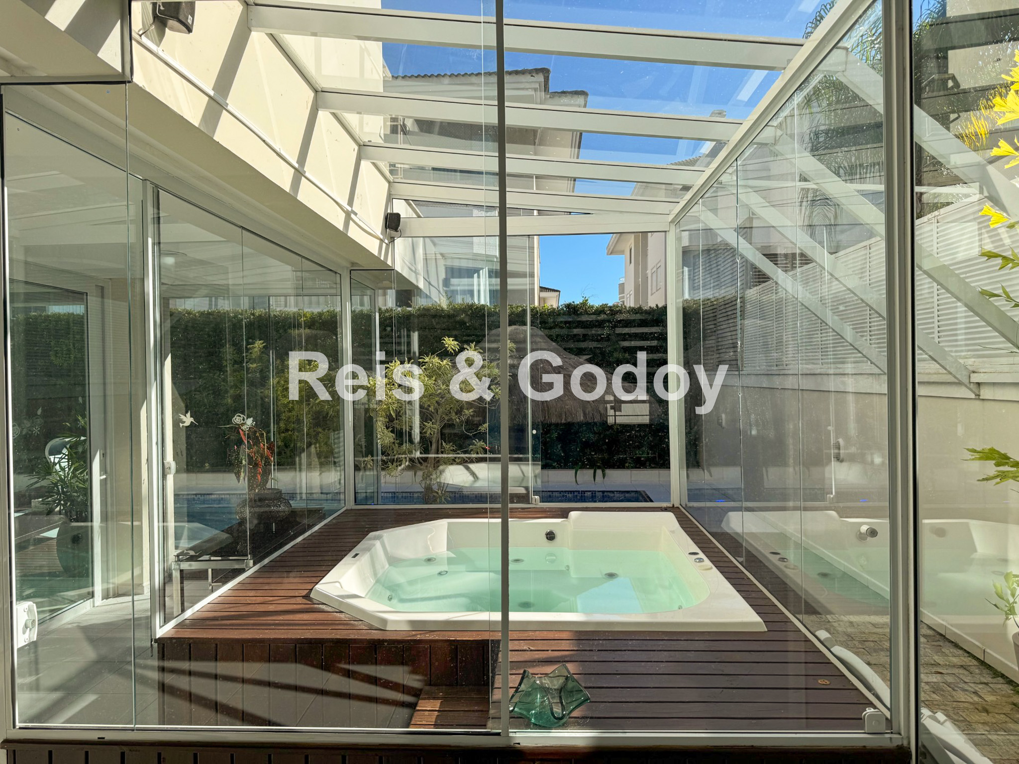 Melhor área de lazer de Jurere Internacional. Linda mansão com 4 suítes (sendo uma no térreo), ar condicionado split em todos os ambientes, área de lazer com piscina, bar molhado, cascata, hidromassagem aquecida e churrasqueira, sala de jogos com mesa de snooker, Internet WIFI, Smart TV, cozinha completa, máquina de lavar roupa, máquina de secar roupa, 2 vagas de garagem e excelente localização em rua tranquila de Jurere Internacional.