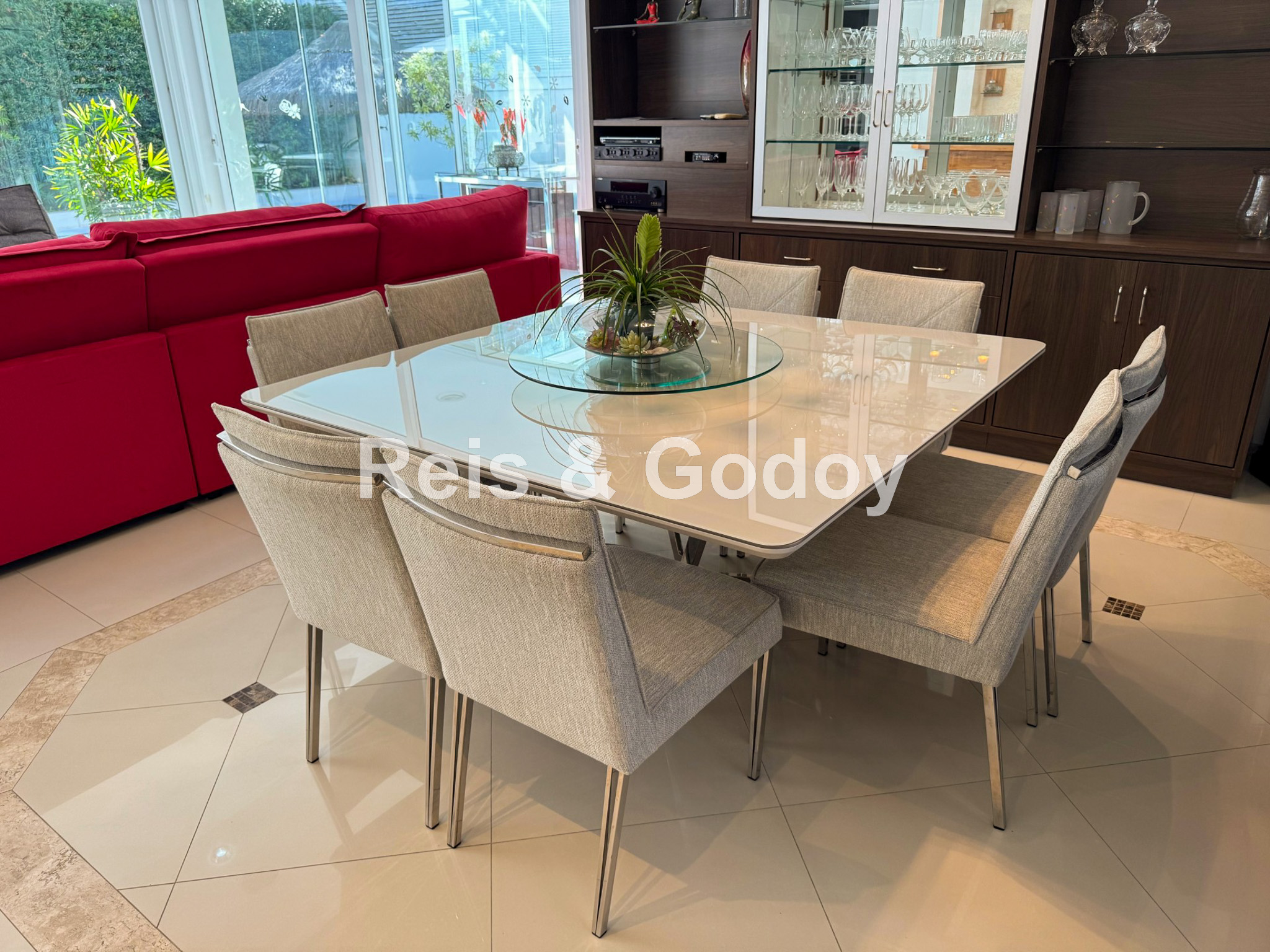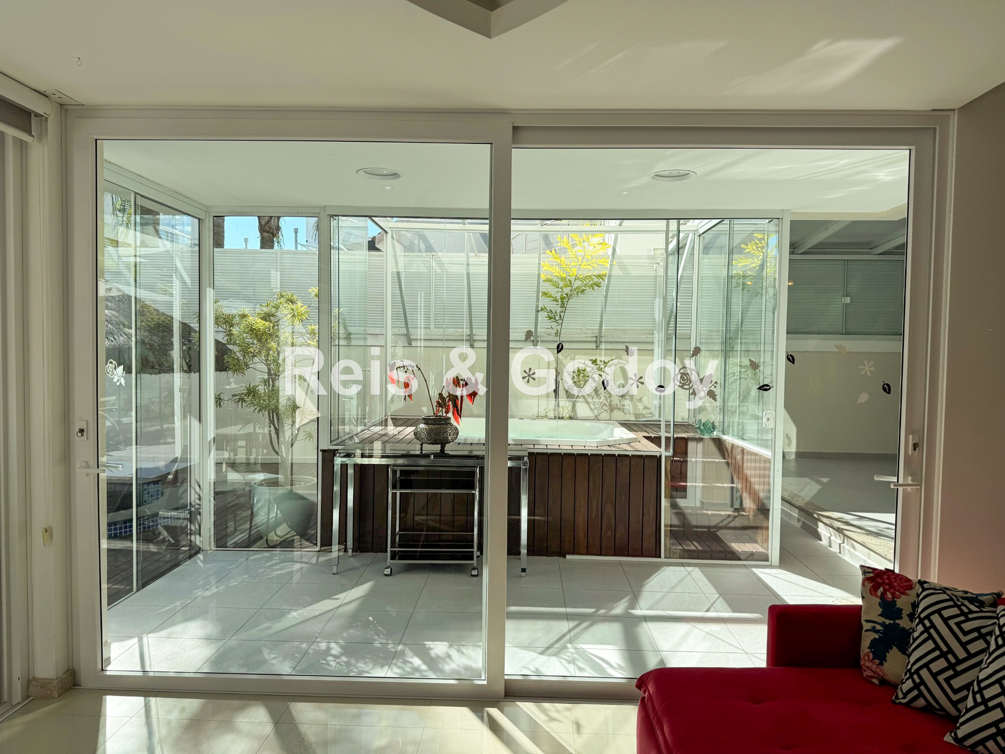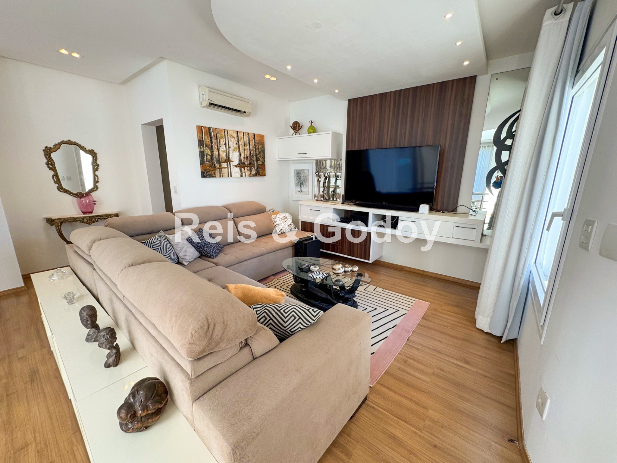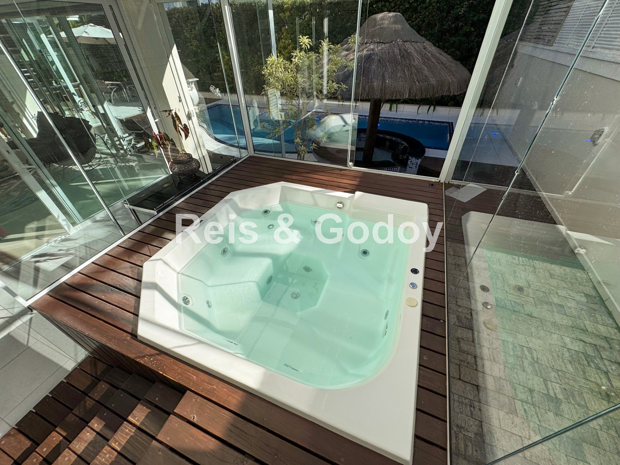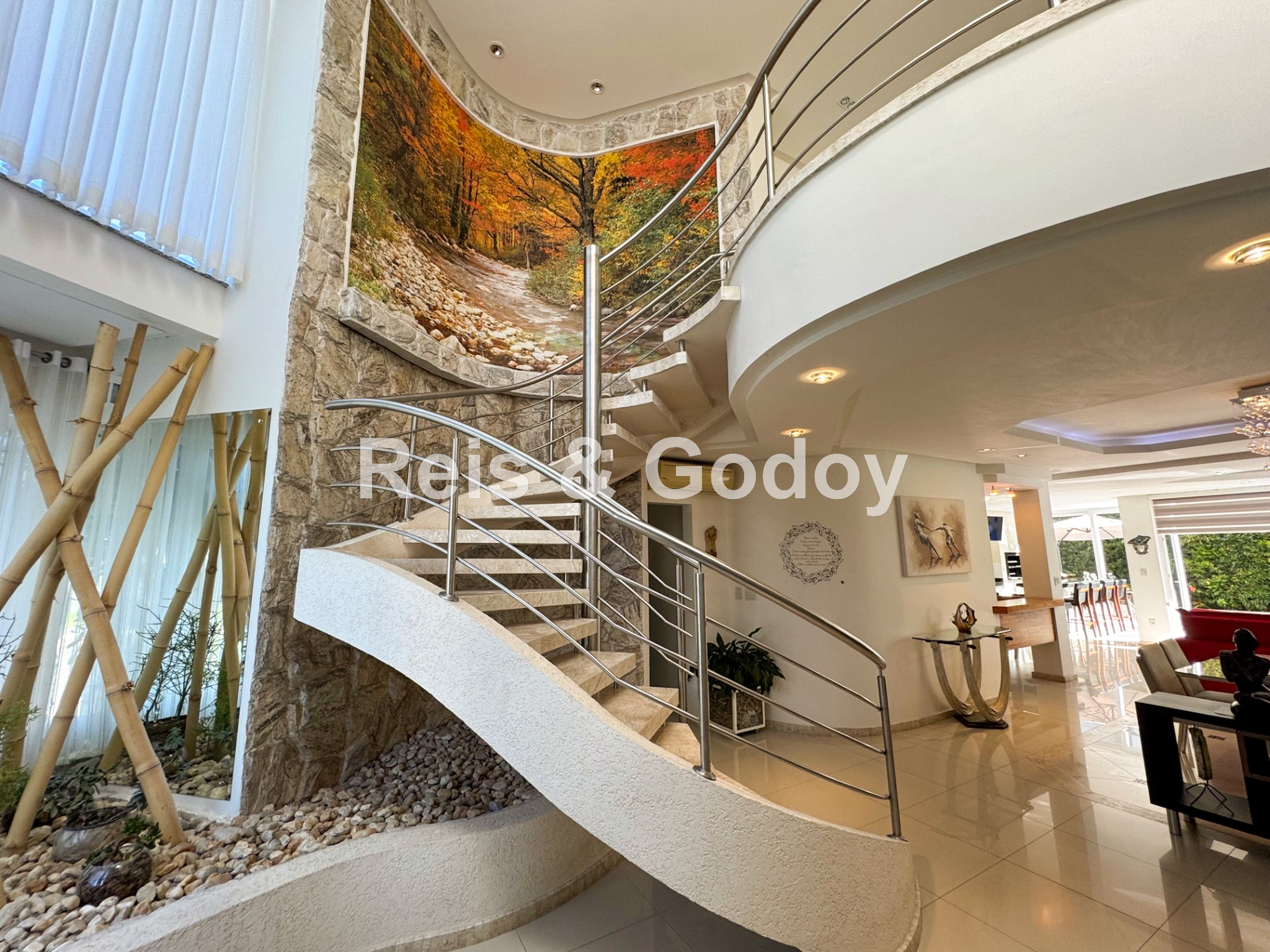 Melhor área de lazer de Jurere Internacional. Linda mansão com 4 suítes (sendo uma no térreo), ar condicionado split em todos os ambientes, área de lazer com piscina, bar molhado, cascata, hidromassagem aquecida e churrasqueira, sala de jogos com mesa de snooker, Internet WIFI, Smart TV, cozinha completa, máquina de lavar roupa, máquina de secar roupa, 2 vagas de garagem e excelente localização em rua tranquila de Jurere Internacional.