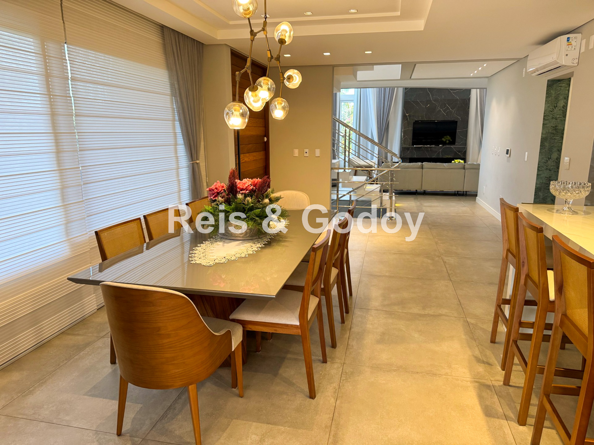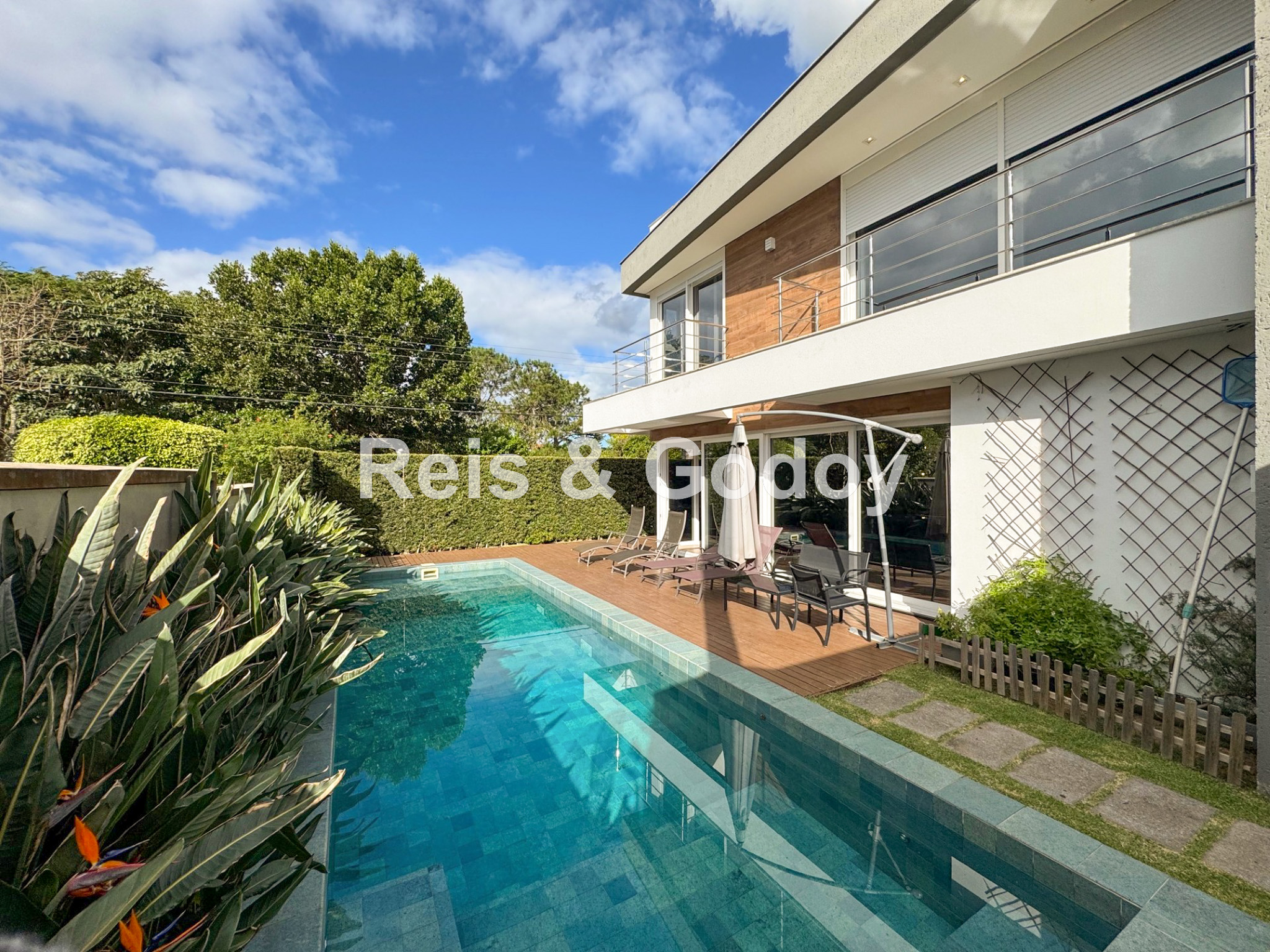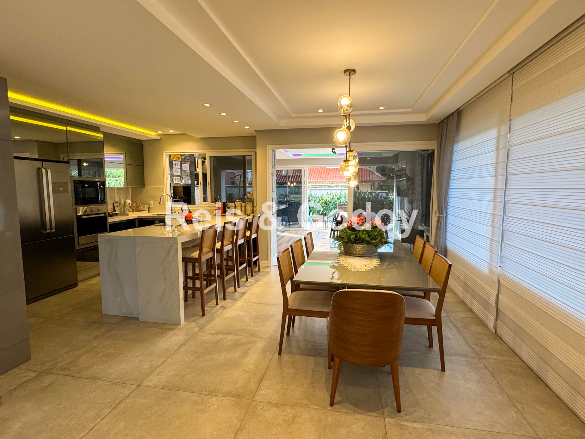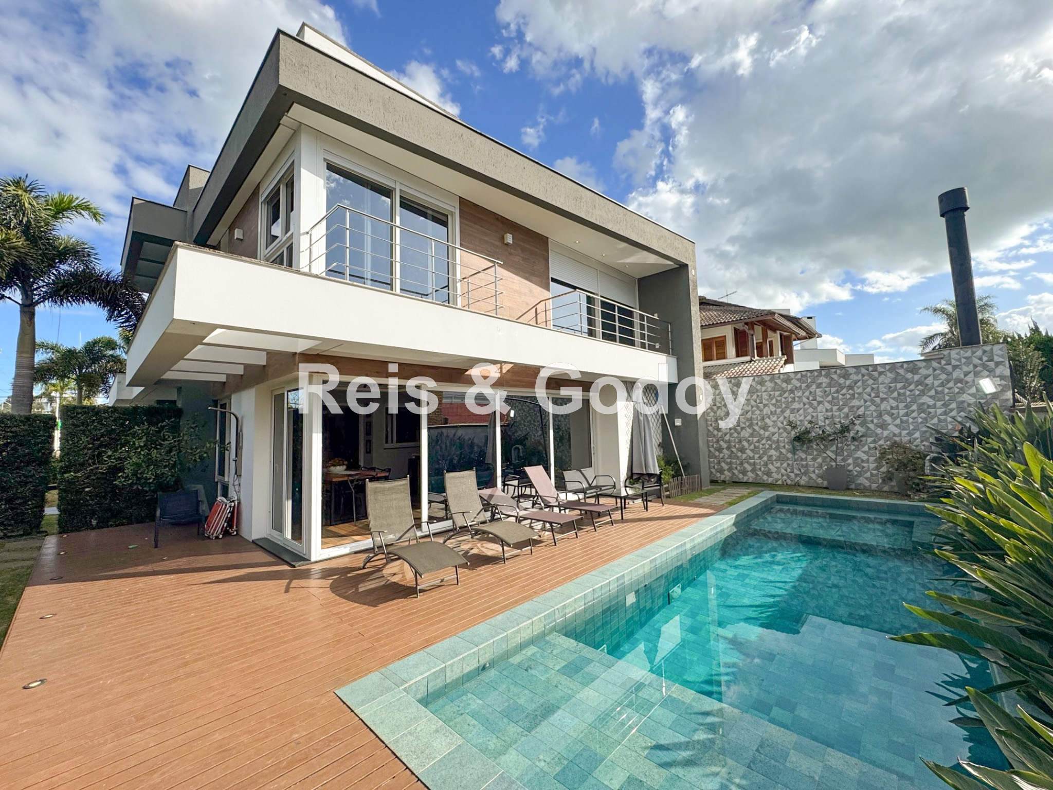 Nova, moderna, elegante e com área de lazer de incrível. Linda mansão com 5 dormitórios sendo 4 suítes (sendo uma no térreo), ar condicionado split em todos os ambientes, área de lazer com piscina, cascata, churrasqueira, Internet WIFI de alta velocidade, Smart TV, cozinha completa, máquina de lavar roupa, máquina de secar roupa, 4 vagas de garagem e excelente localização em Jurere Internacional a 400m da praia e em frente a linda área verde.
