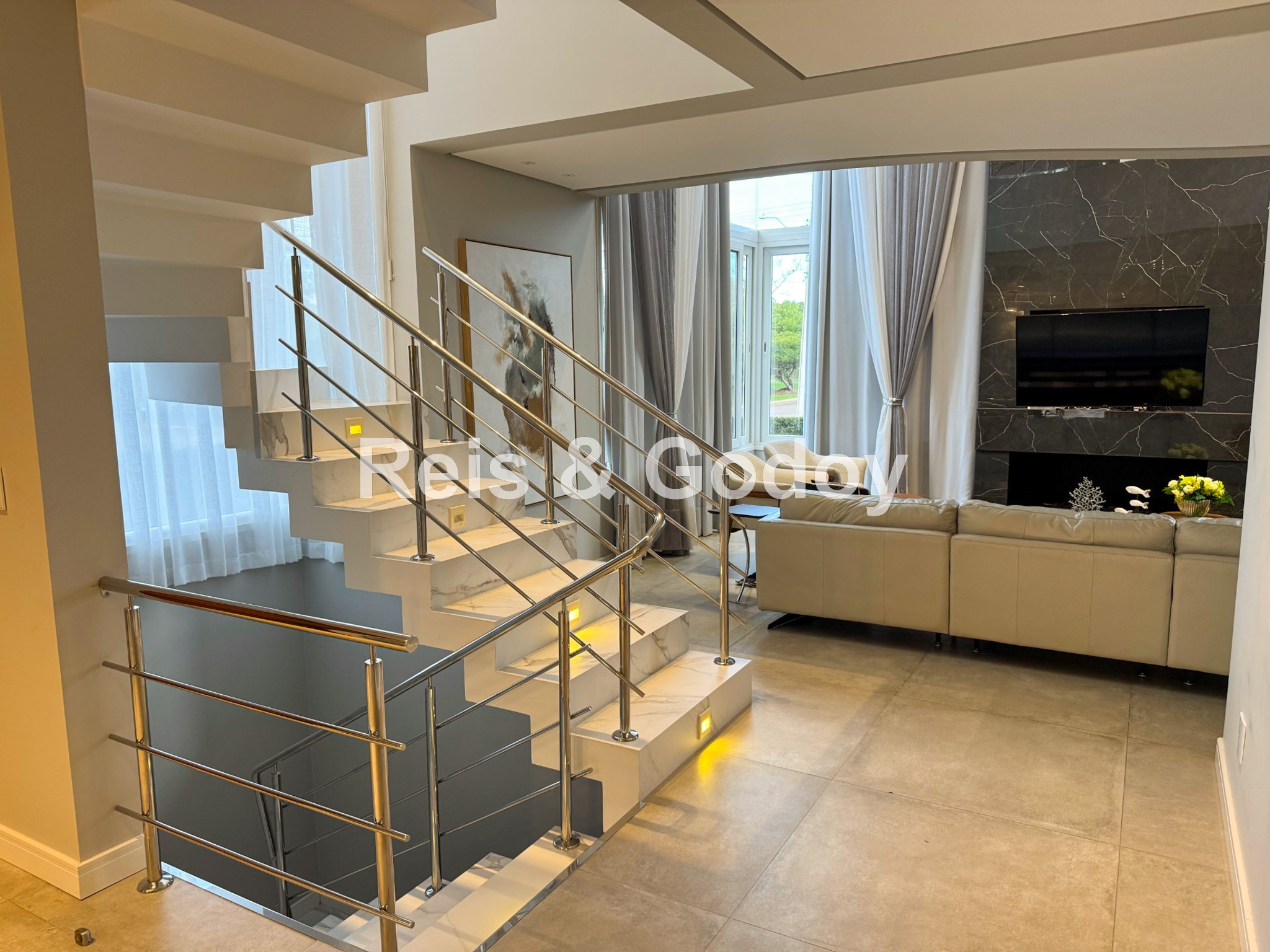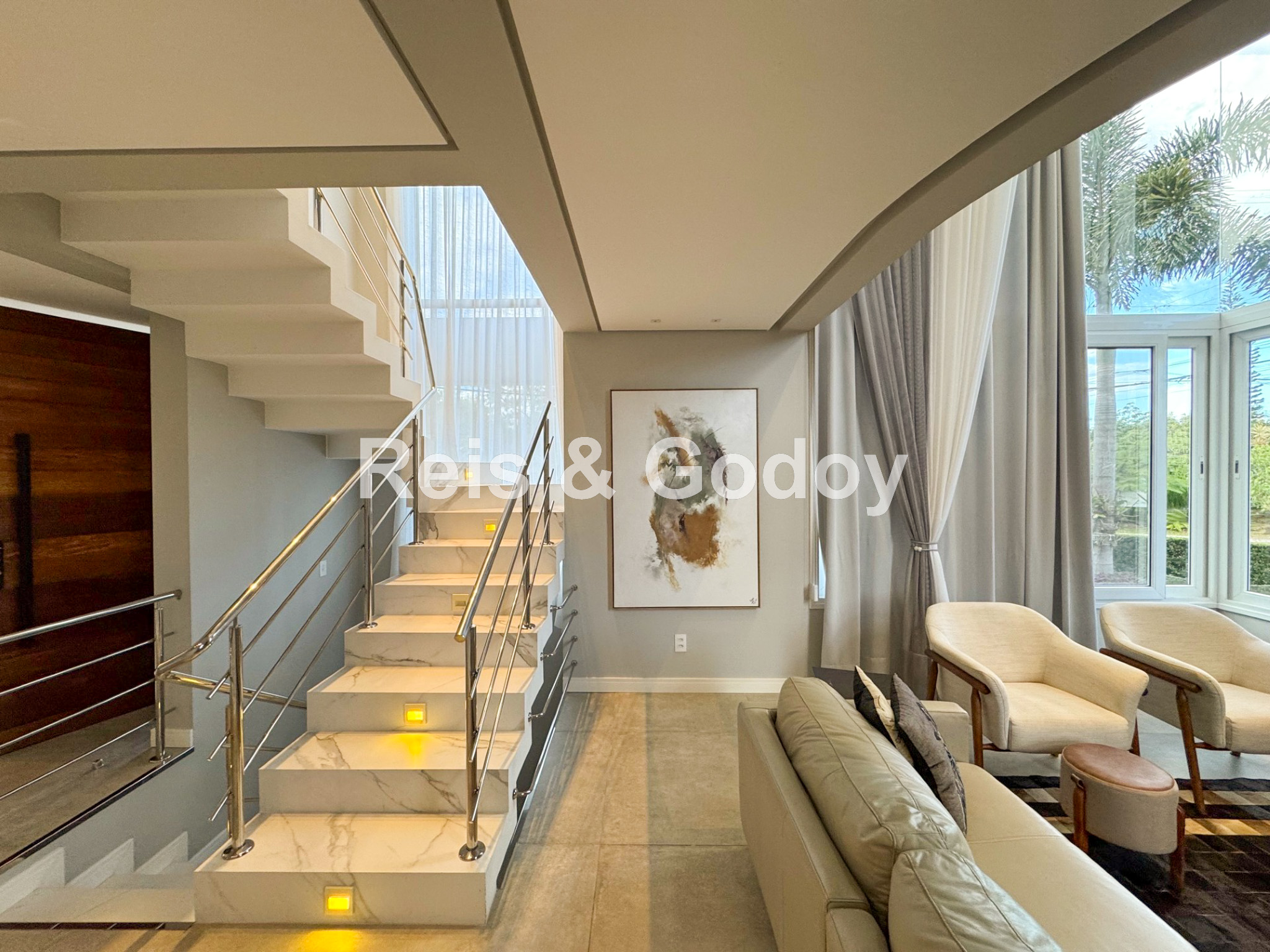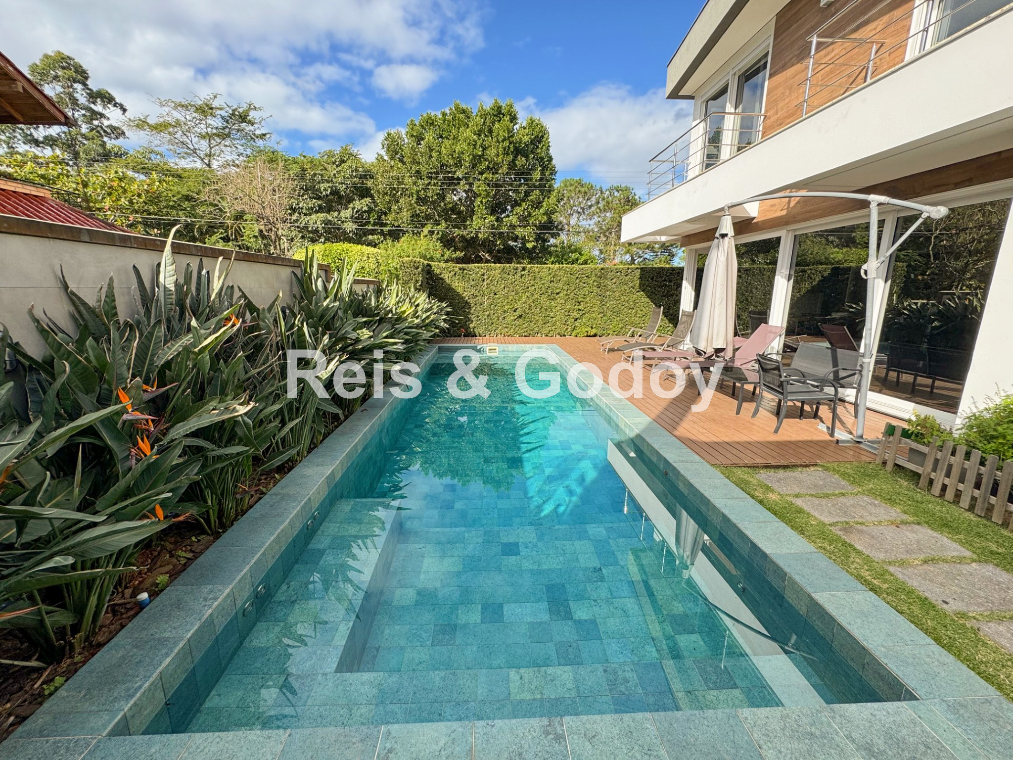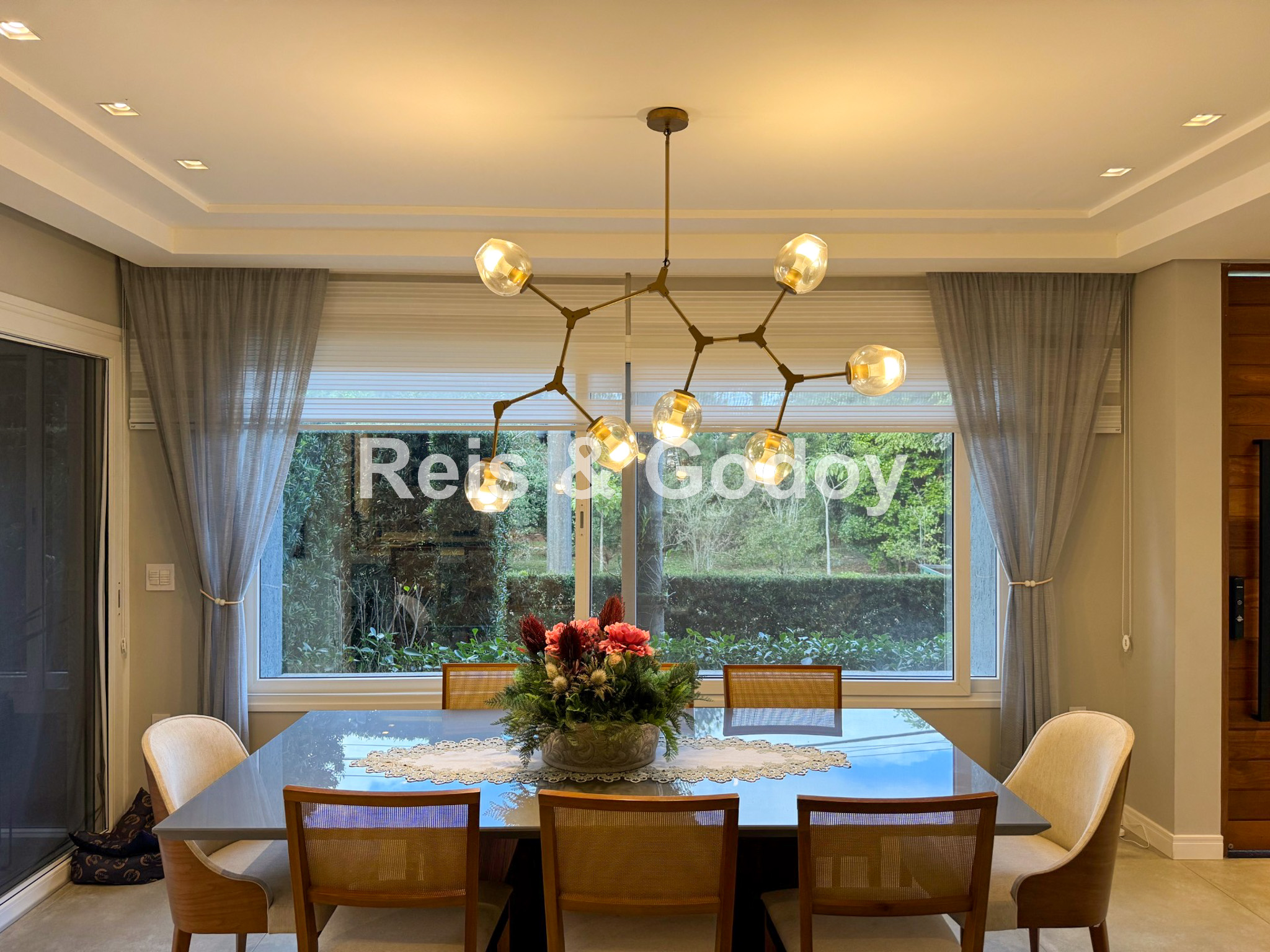 Nova, moderna, elegante e com área de lazer de incrível. Linda mansão com 5 dormitórios sendo 4 suítes (sendo uma no térreo), ar condicionado split em todos os ambientes, área de lazer com piscina, cascata, churrasqueira, Internet WIFI de alta velocidade, Smart TV, cozinha completa, máquina de lavar roupa, máquina de secar roupa, 4 vagas de garagem e excelente localização em Jurere Internacional a 400m da praia e em frente a linda área verde.