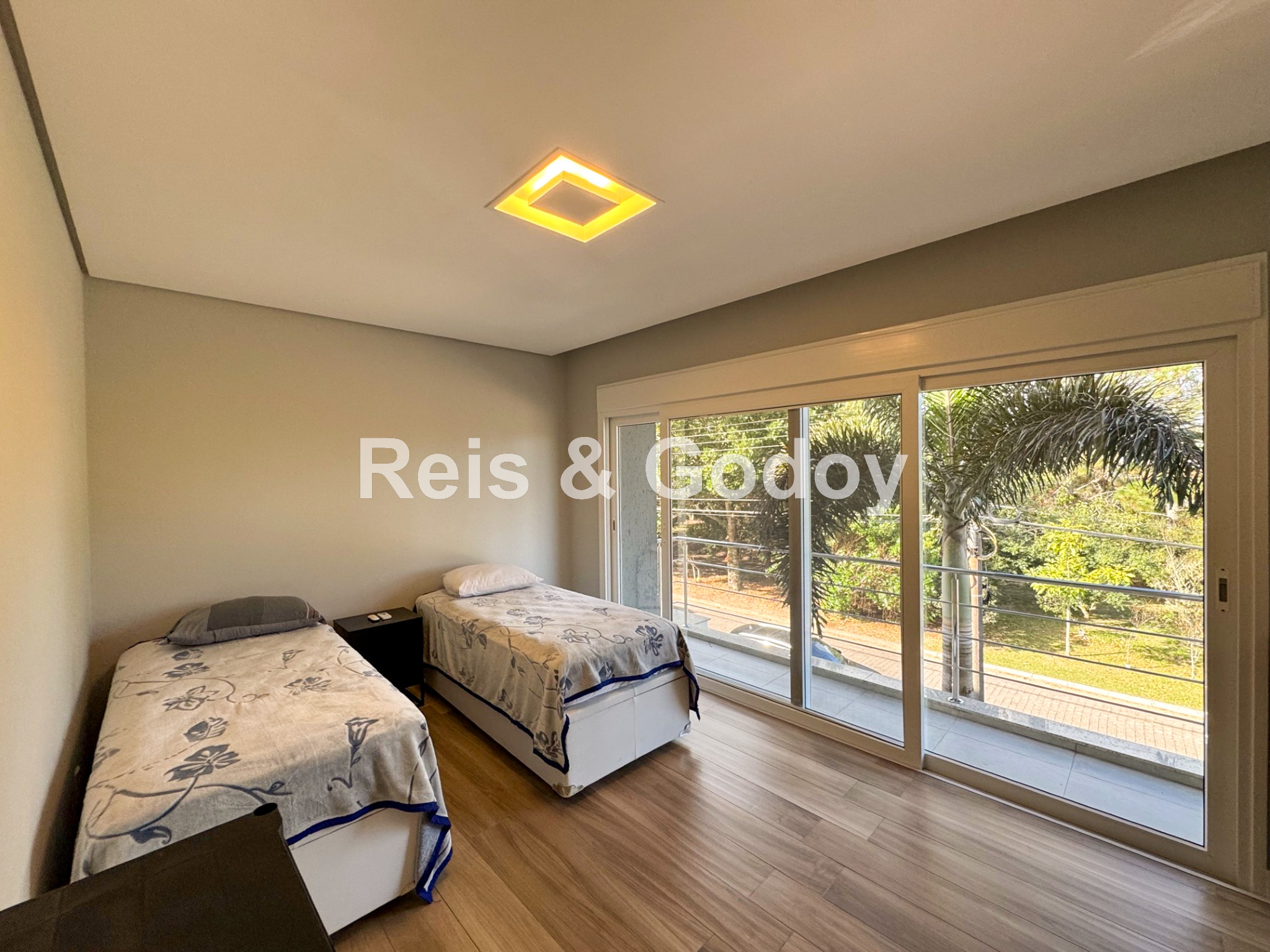 Disposição das camas: 4 camas de casal e 2 camas de solteiro
