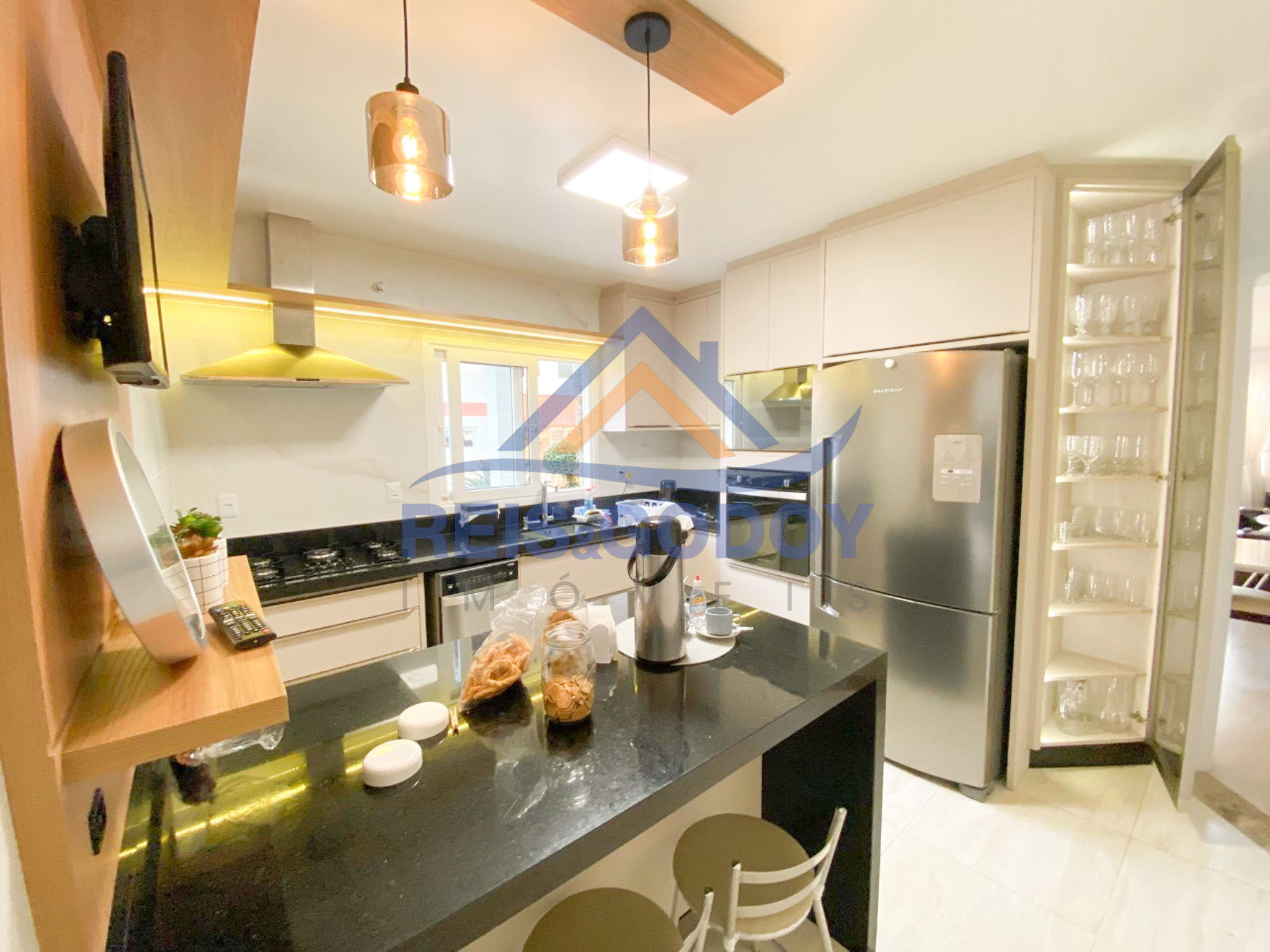 Ar Condicionado, TV a cabo, Internet WIFI, Churrasqueira, Microondas, Geladeira, Fogão, Forno Elétrico, Máquina de Lavar Roupa, Máquina de Lavar Louça, Cadeiras de Praia, Guarda Sol