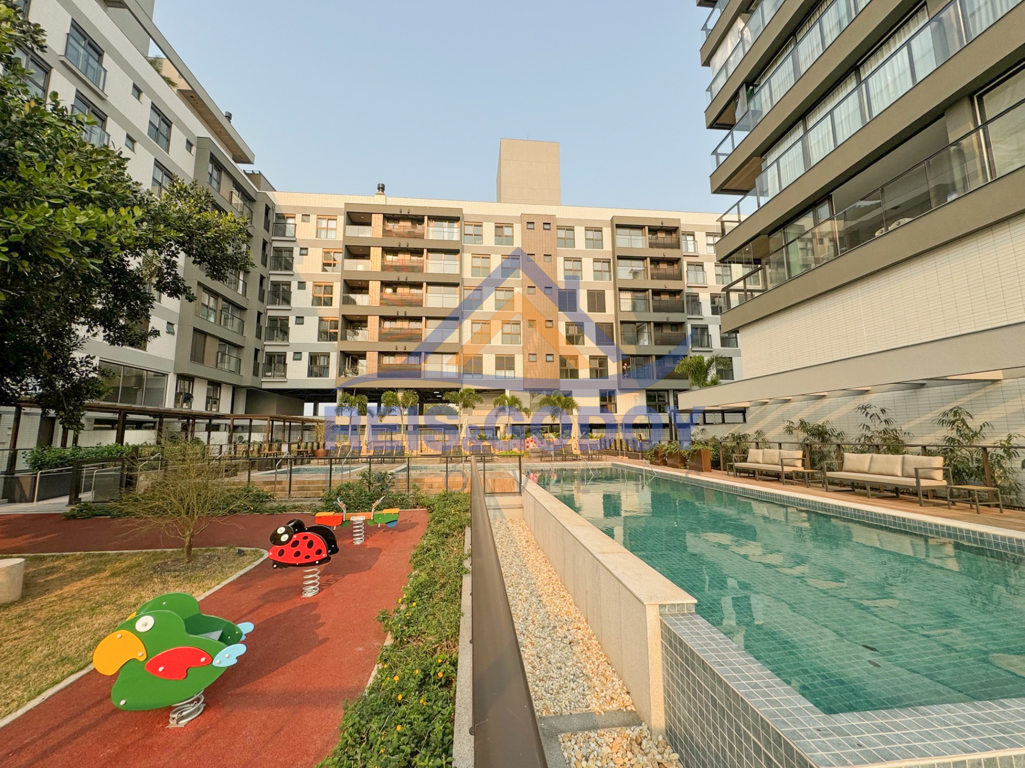 Férias no residencial mais novo de Jurerê Internacional com infraestrutura de lazer incrível. Lindo apartamento, moderno, super decorado e espaçoso, com 120m² de área útil, 3 suítes, lavabo, 4 ar condicionados SPLIT (suítes e sala), persianas elétricas, cozinha planejada completa, internet WIFI de alta velocidade, SMART TV, máquina de lavar roupa, máquina de secar roupa, 2 vagas de garagem e área de lazer com piscina e playground.
