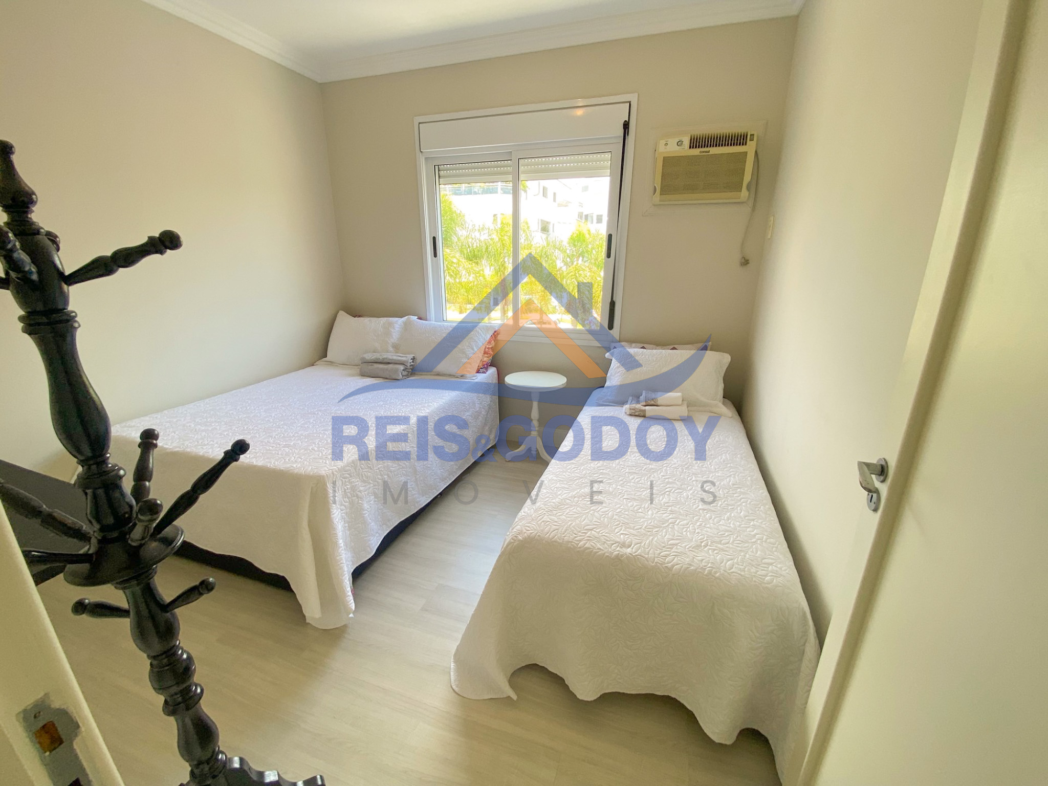 Disposição das camas: 1 cama de casal e 2 camas de solteiro.